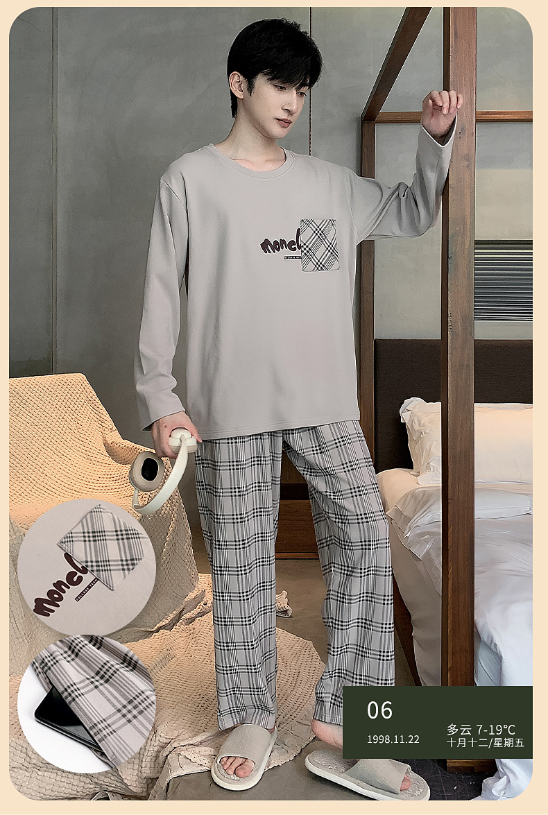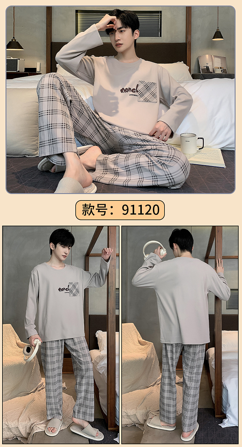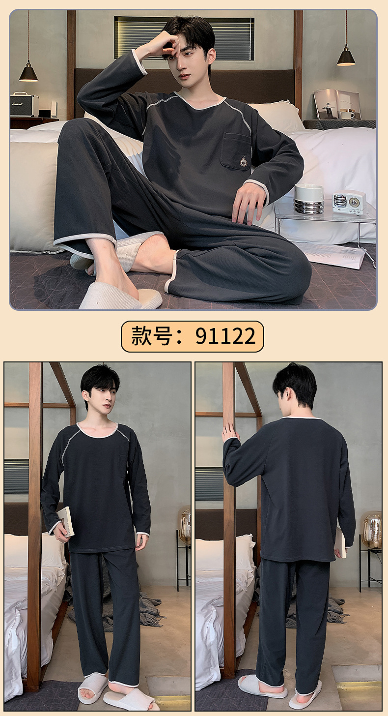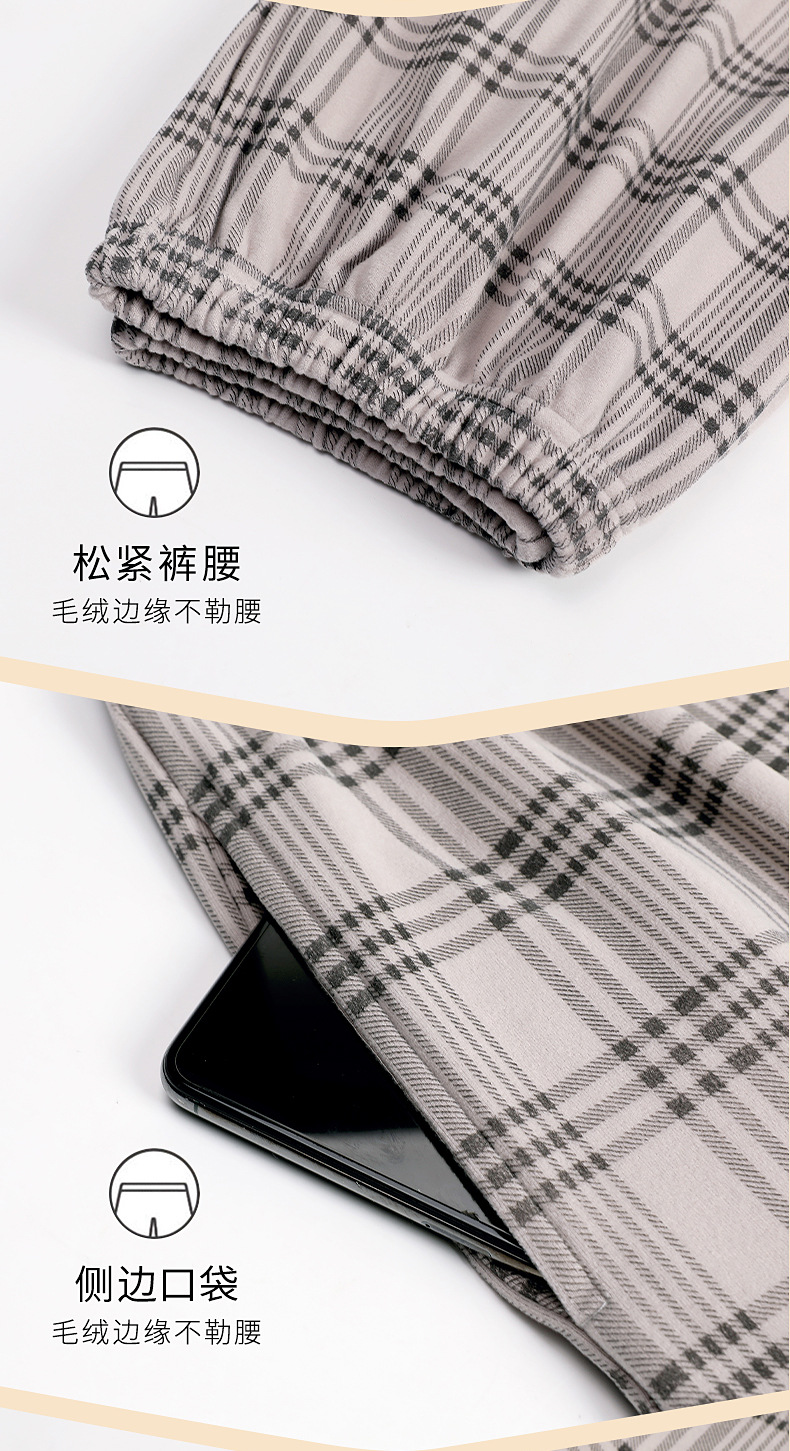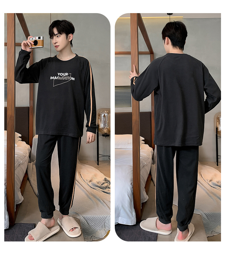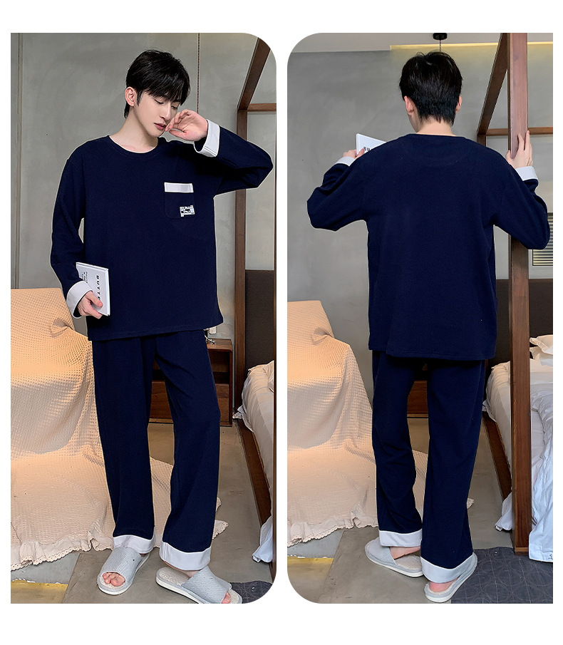 Yingzitong 가을 겨울 기모 두꺼운 벨벳 남성 잠옷 세트 한국 스타일 캐주얼 따뜻한 집 옷스토어 가기