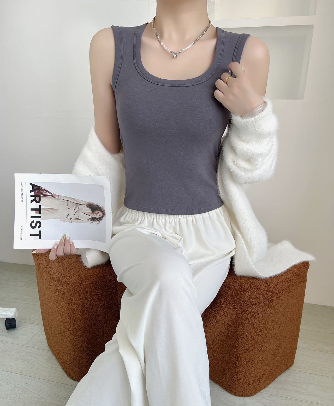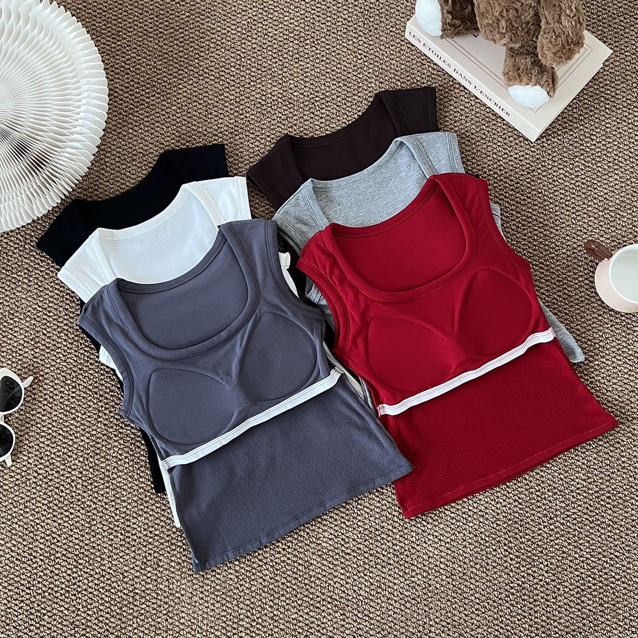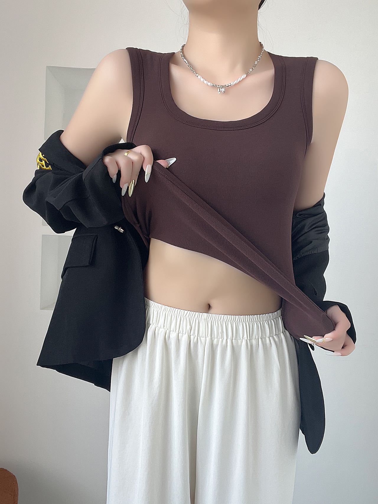 새로운 와이드 어깨 조끼 여자 여름 슬림 핏 올매치 솔리드 컬러베이스 셔츠 탑 가슴 패드스토어 가기