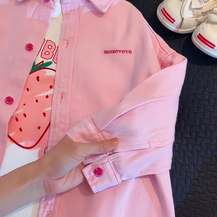 소녀 아기 한국 스타일 대형 어린이를위한 세련된 올 매치 재킷 봄과 가을 새로운 스타일 캐주얼 편지 옷깃 재킷스토어 가기