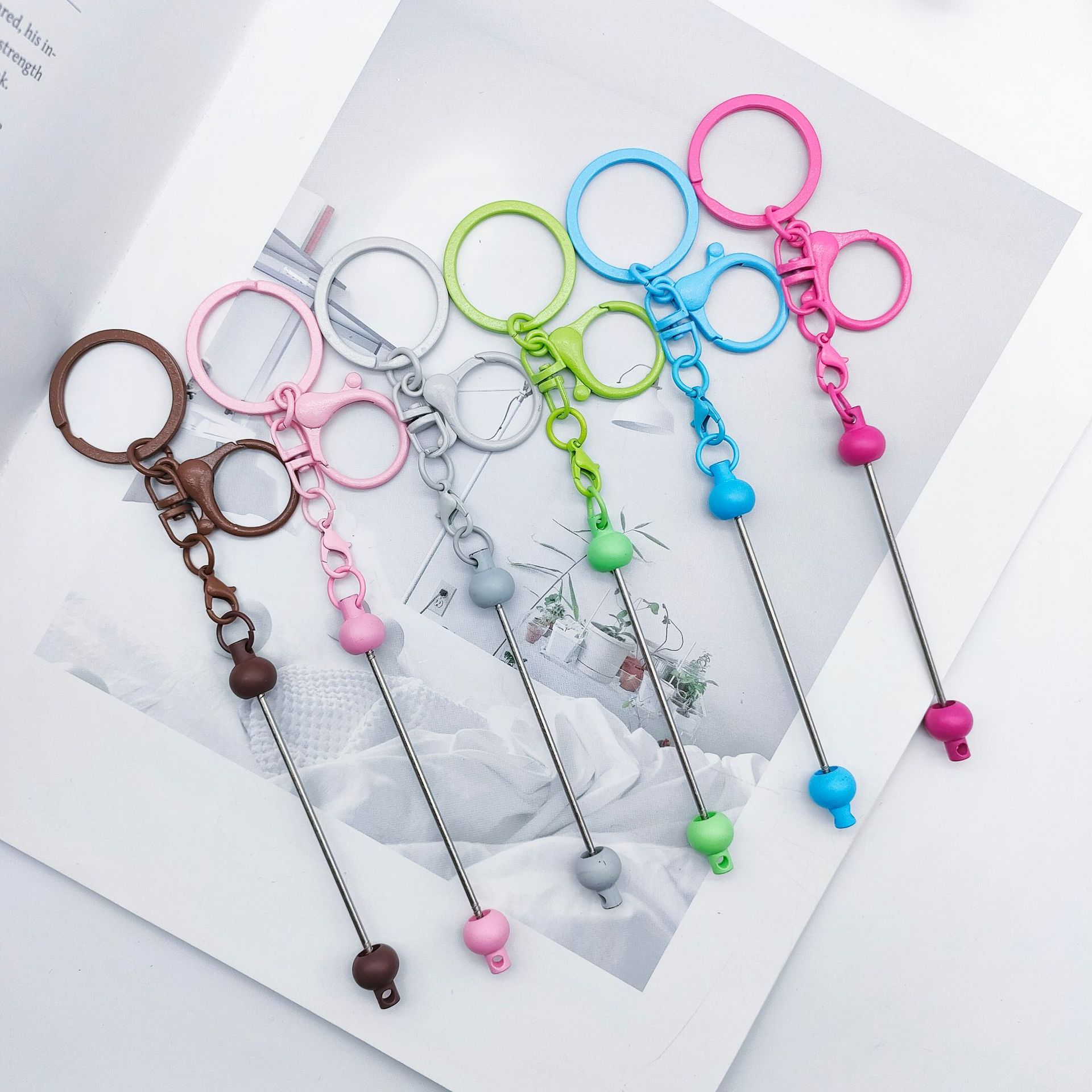 새로운 스타일 구슬 랍스터 걸쇠 컬러 키 체인 성격 DIY 수제 구슬 금속 펜던트 보석 액세서리 선물스토어 가기