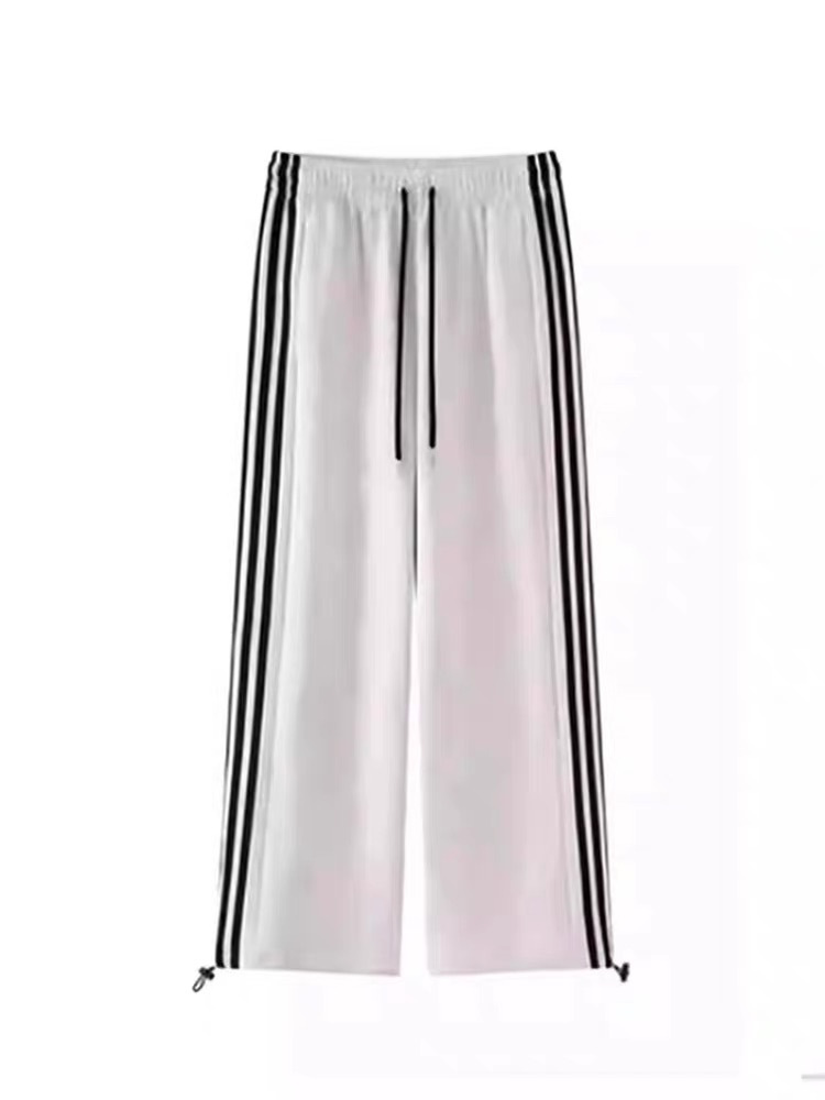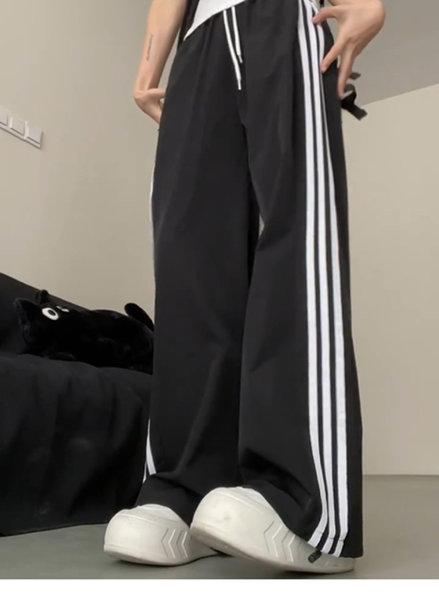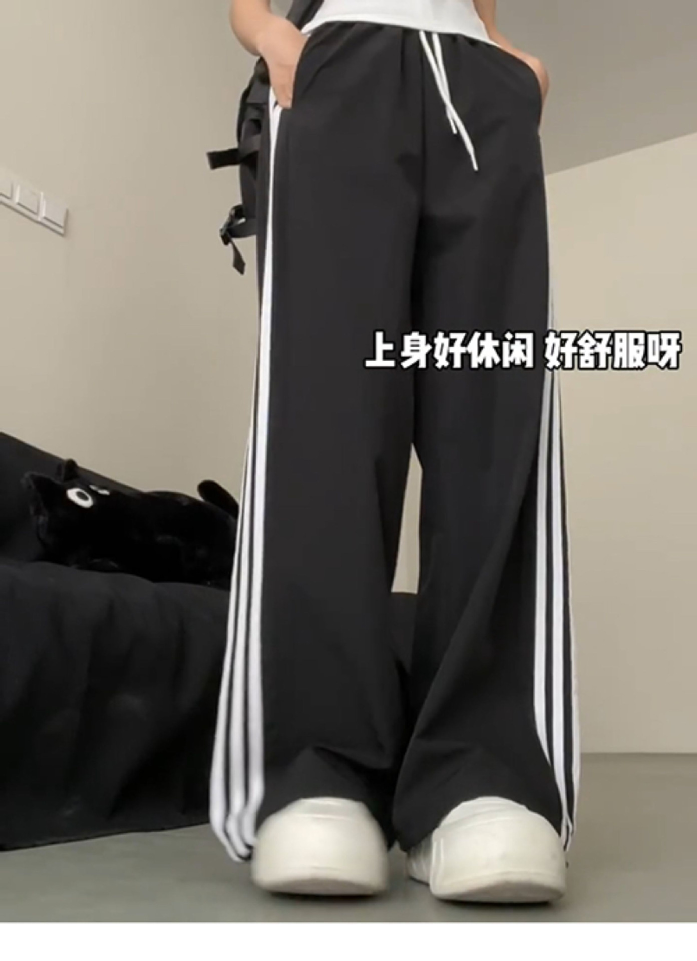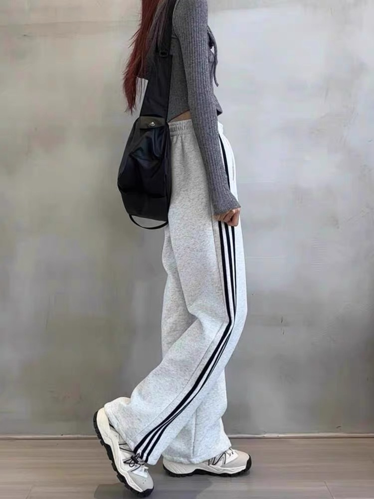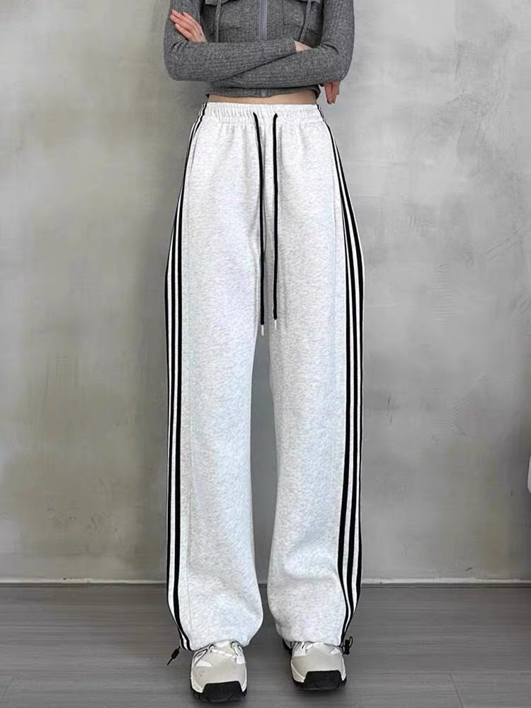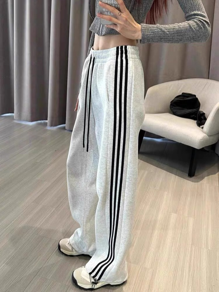 회색 3 바 스포츠 바지 여성의 봄과 가을 2024 새로운 캐주얼 스트라이프 스웨트 팬츠 느슨한 스트레이트 와이드 다리 바지스토어 가기