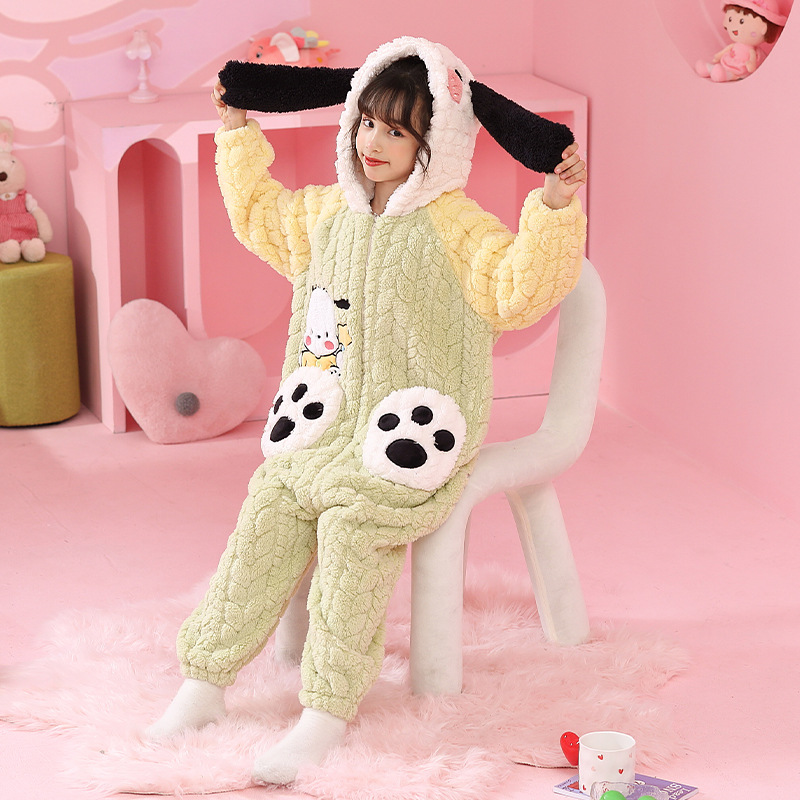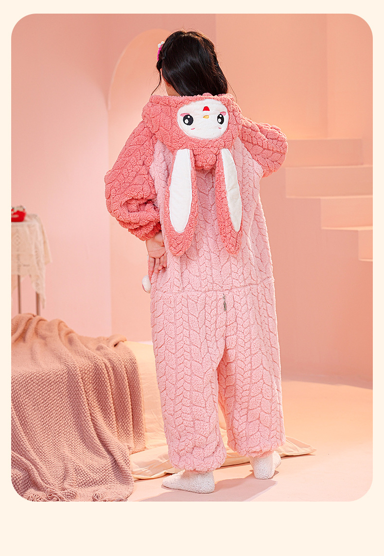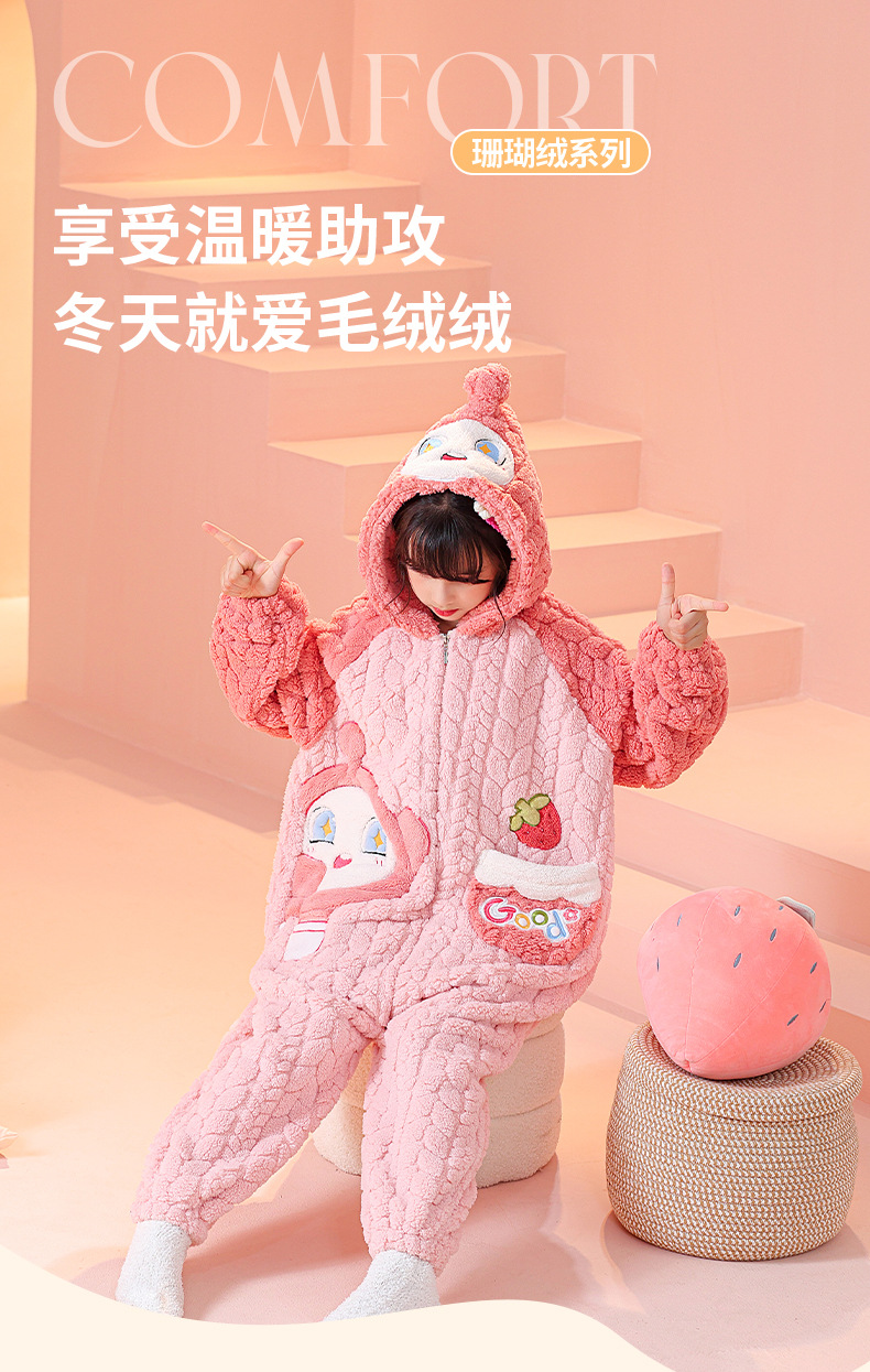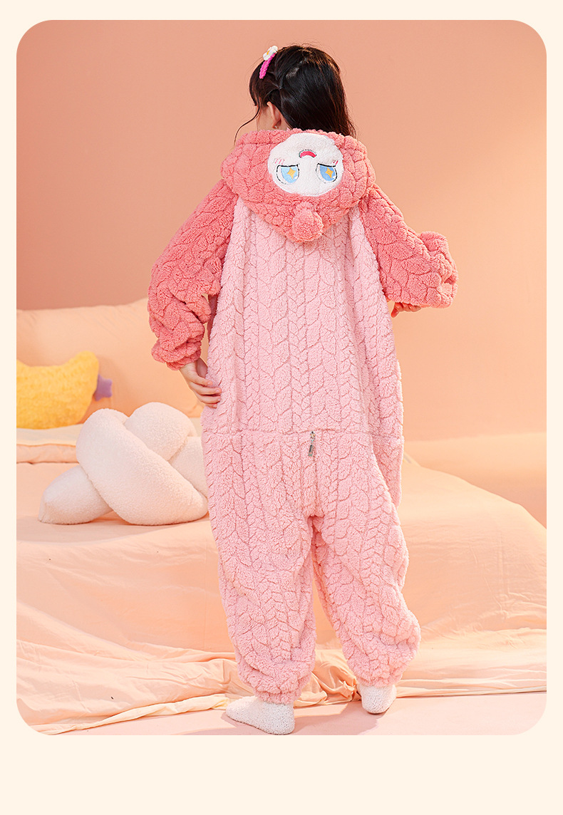 소녀 한 몸 잠옷 가을과 겨울 산호 양털 어린이 플란넬 소녀의 침낭 중형 및 대형 어린이 걷어차는 차가운 침낭
