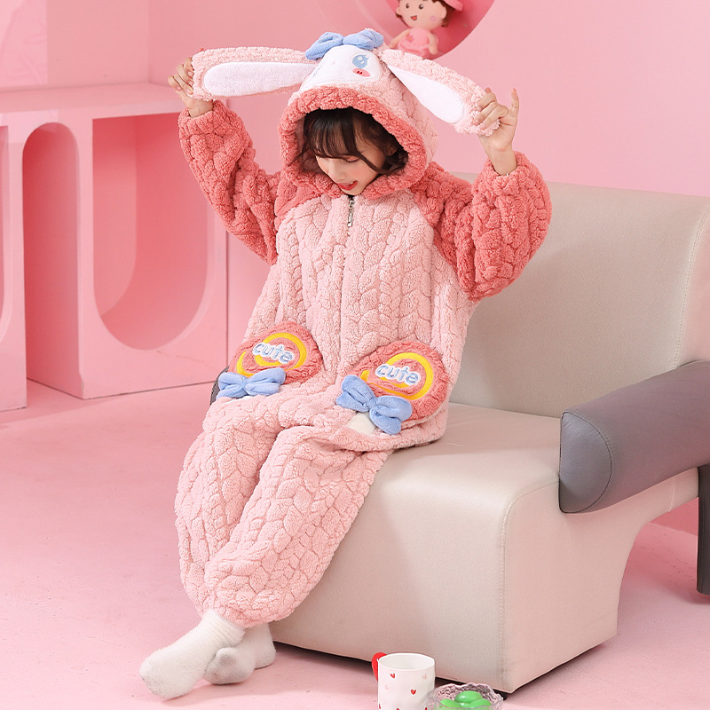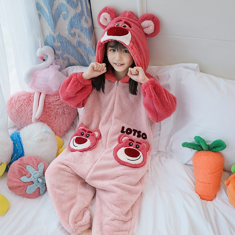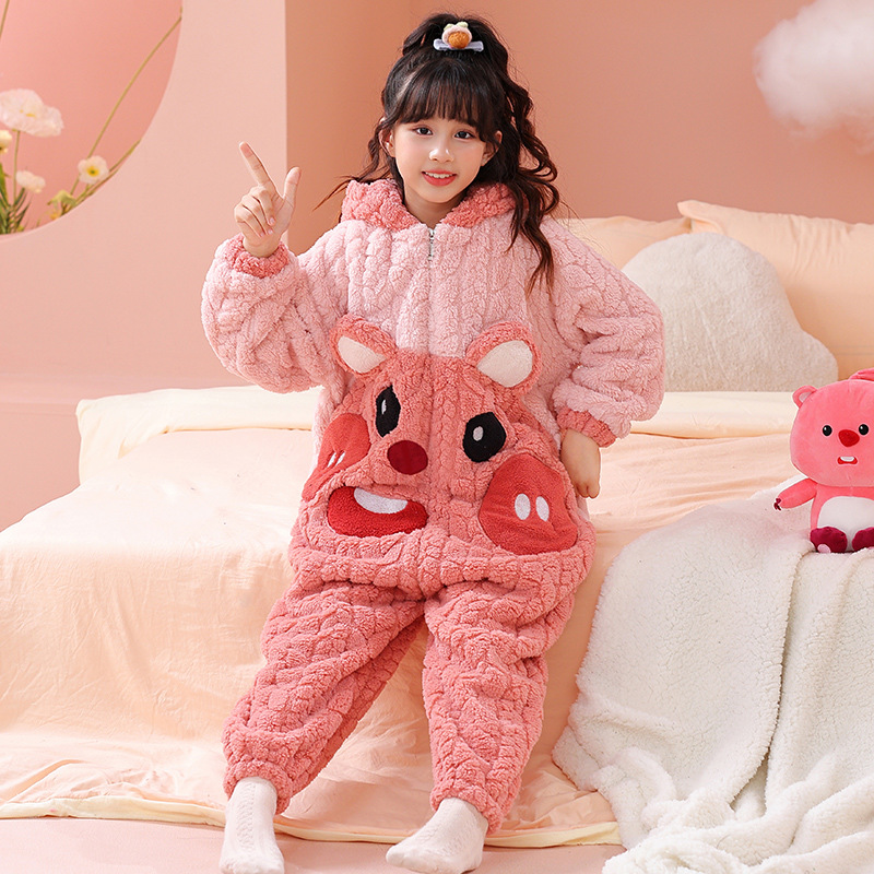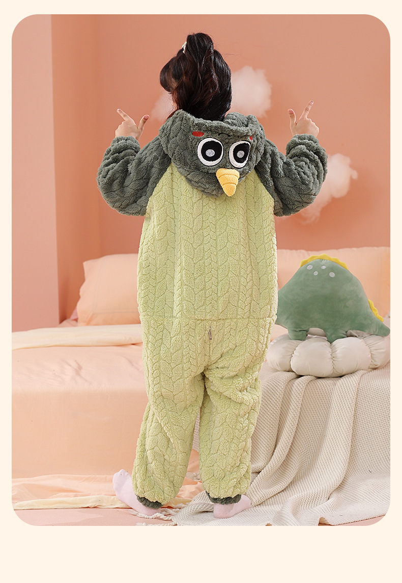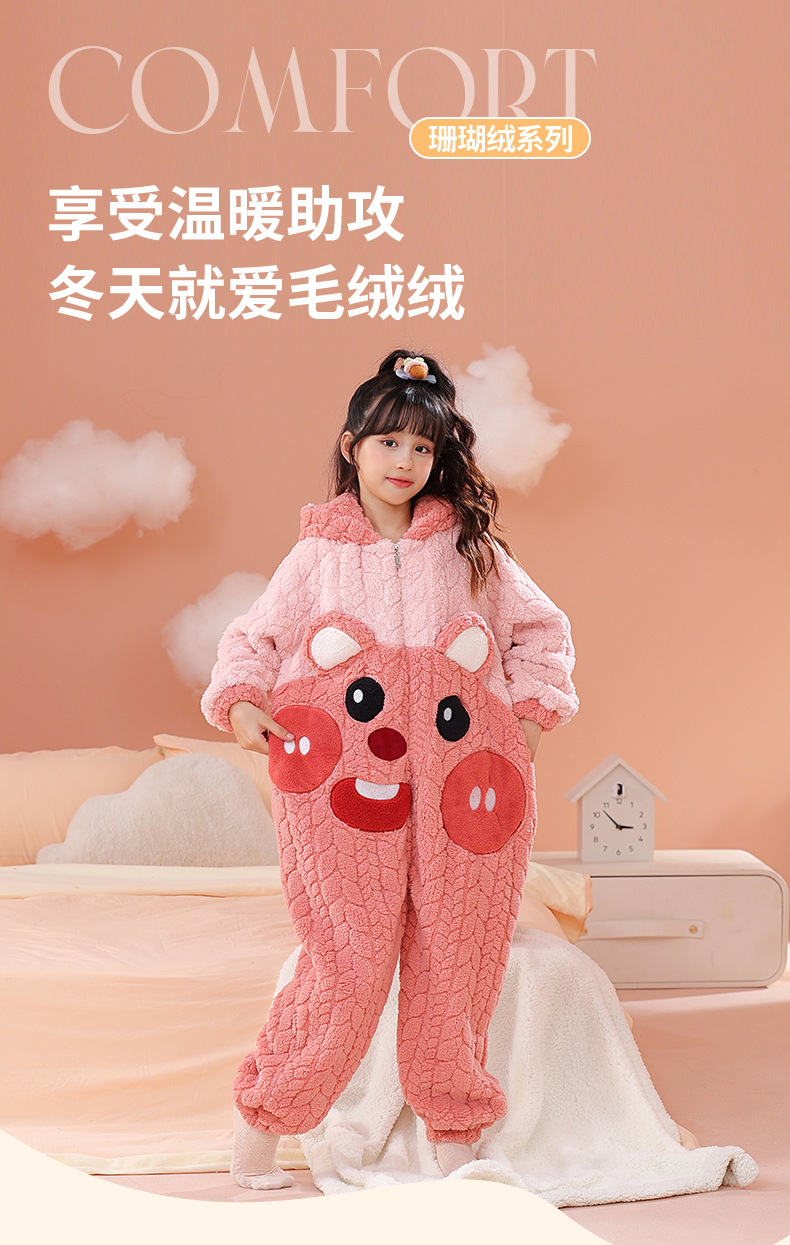 소녀 한 몸 잠옷 가을과 겨울 산호 양털 어린이 플란넬 소녀의 침낭 중형 및 대형 어린이 걷어차는 차가운 침낭스토어 가기