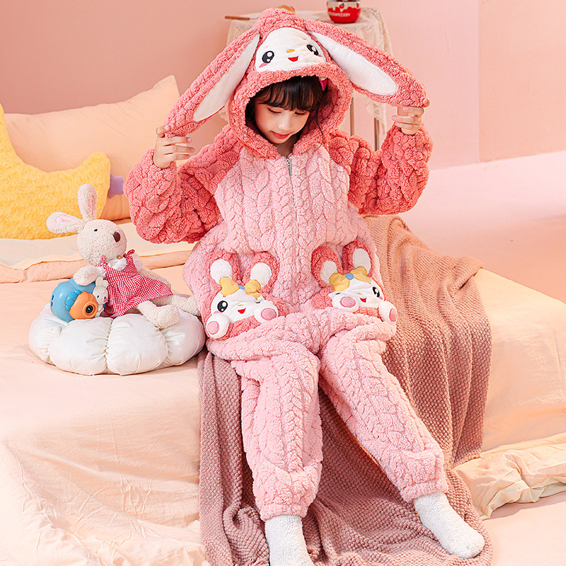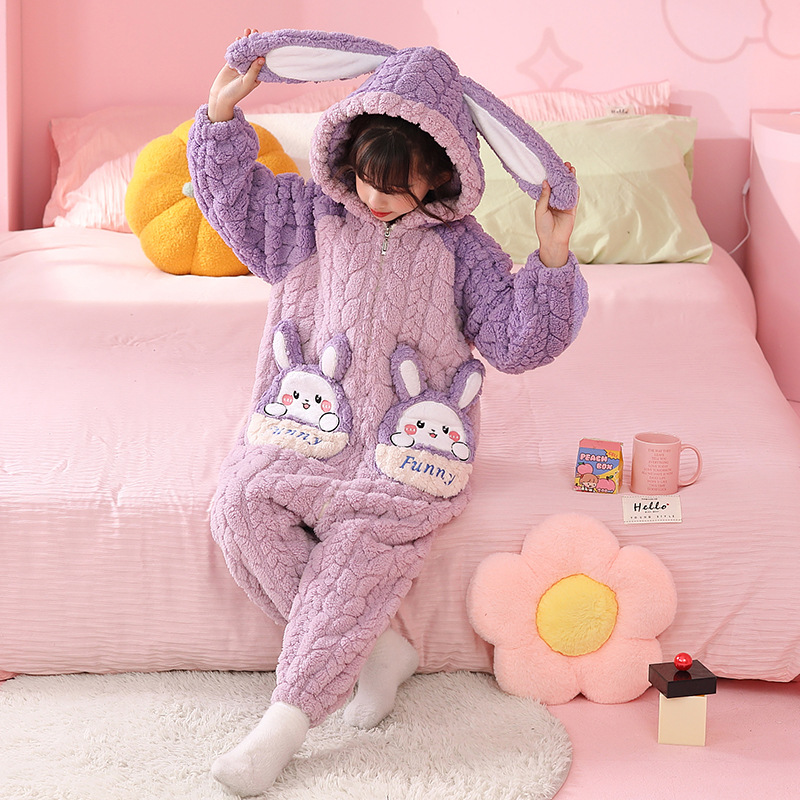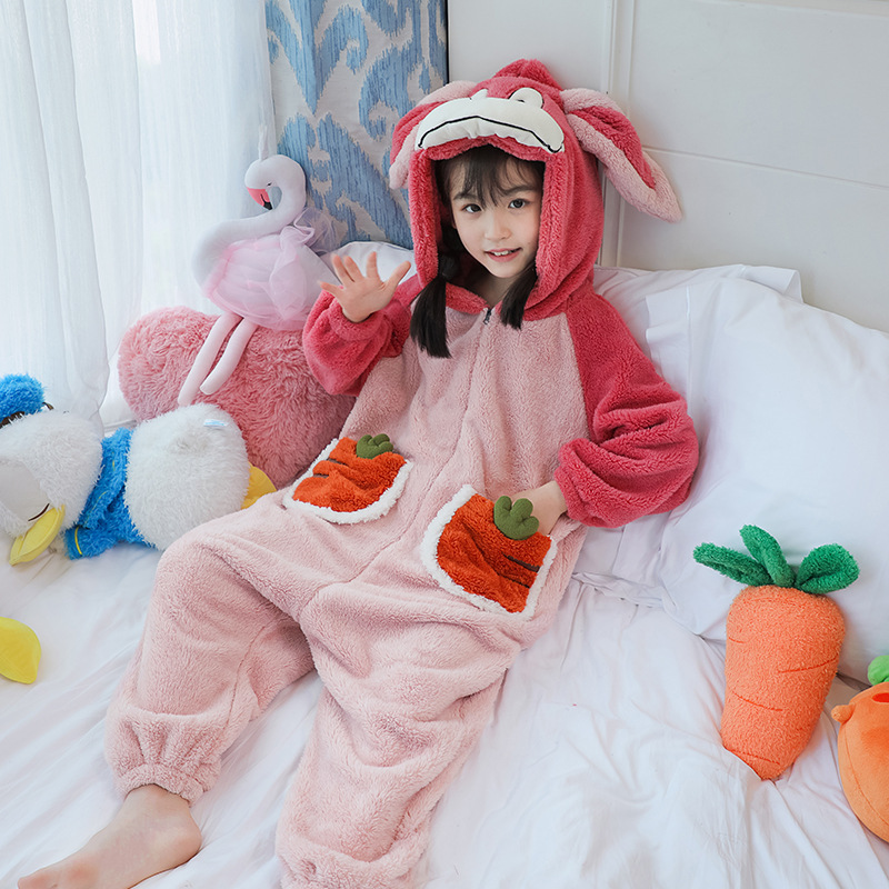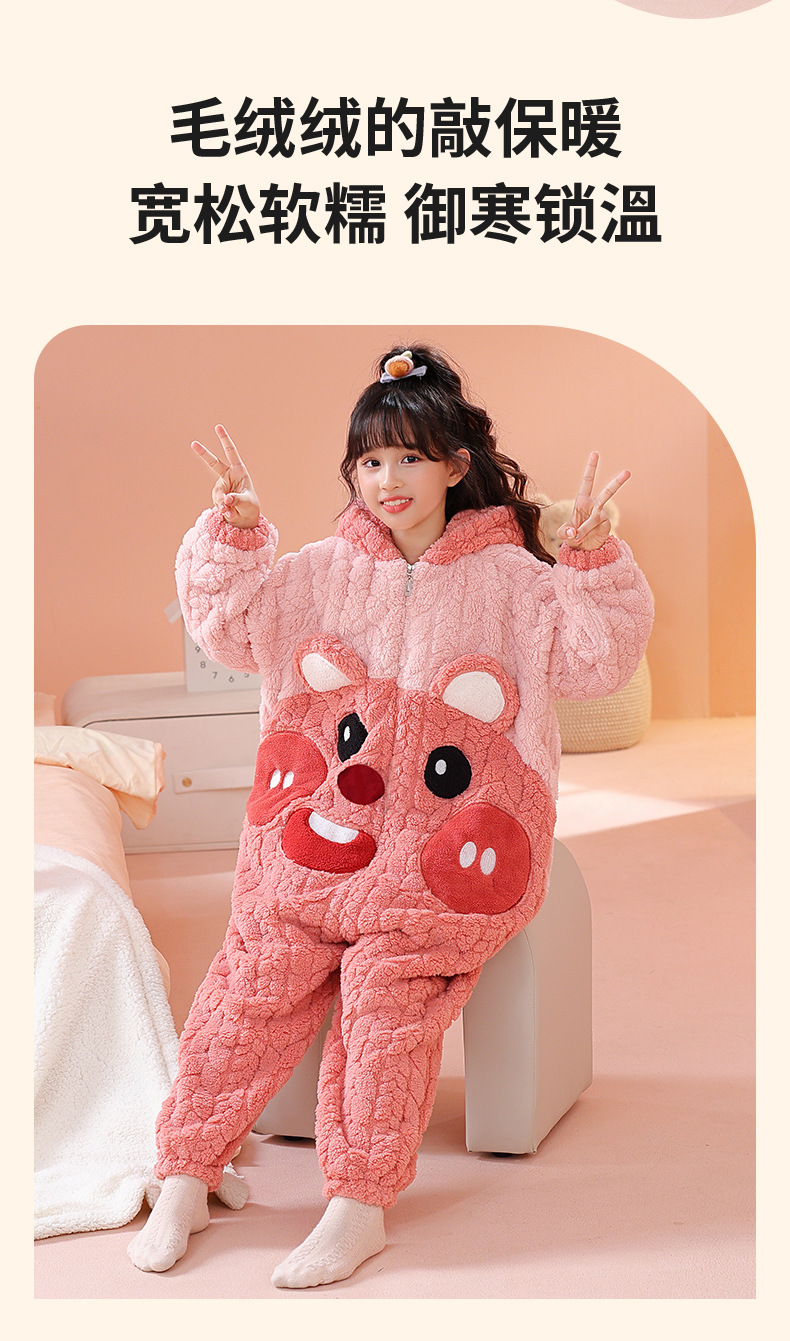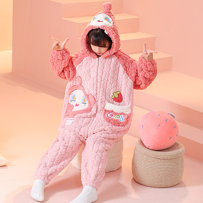 소녀 한 몸 잠옷 가을과 겨울 산호 양털 어린이 플란넬 소녀의 침낭 중형 및 대형 어린이 걷어차는 차가운 침낭스토어 가기