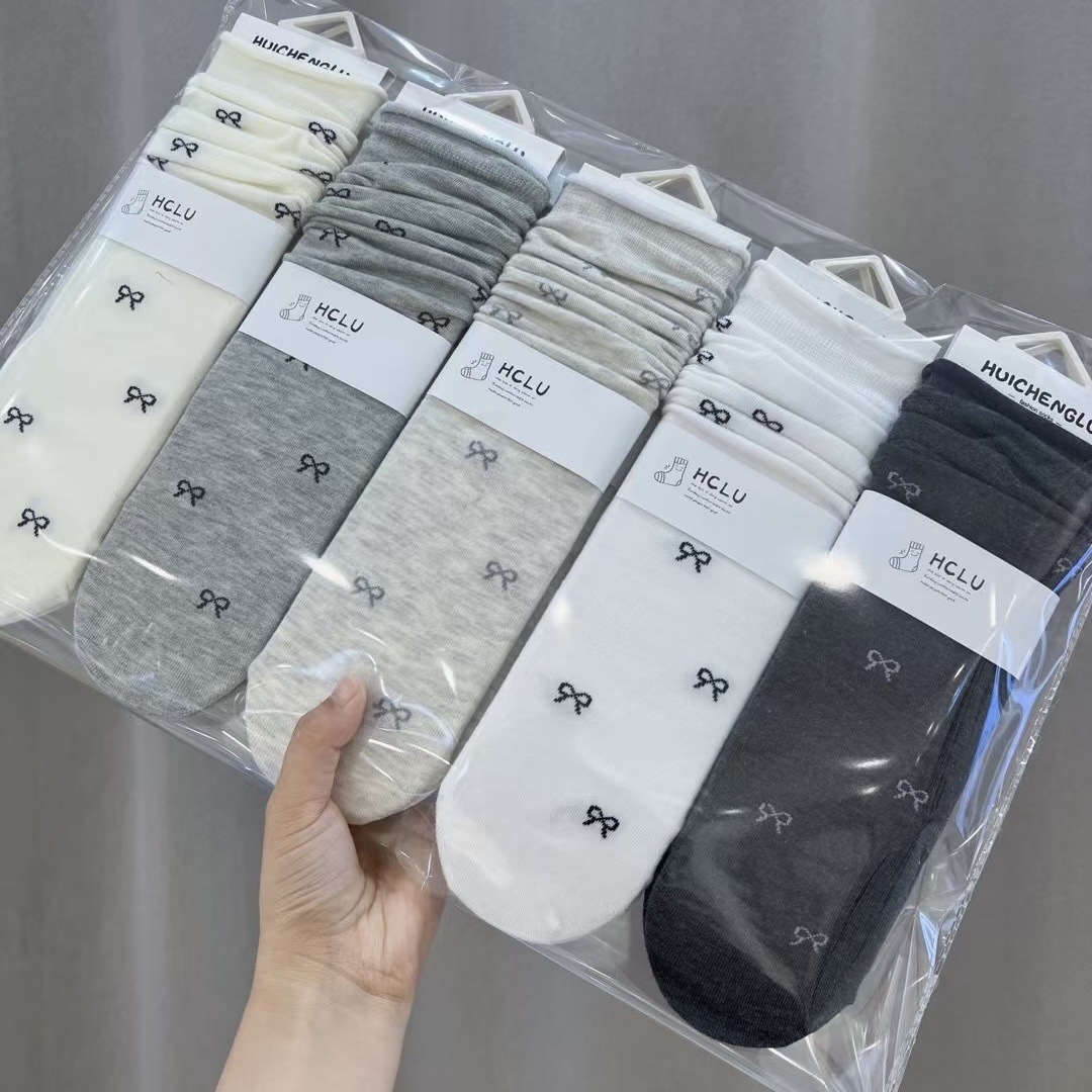 가을 겨울 신상 여성용 스트레이트 도트 무늬 롱 양말, 일본 및 한국 스타일 힐리스 리본 양말