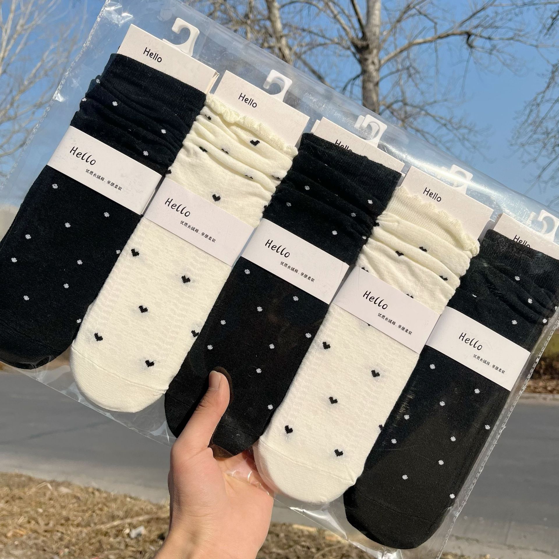 가을 겨울 신상 여성용 스트레이트 도트 무늬 롱 양말, 일본 및 한국 스타일 힐리스 리본 양말스토어 가기