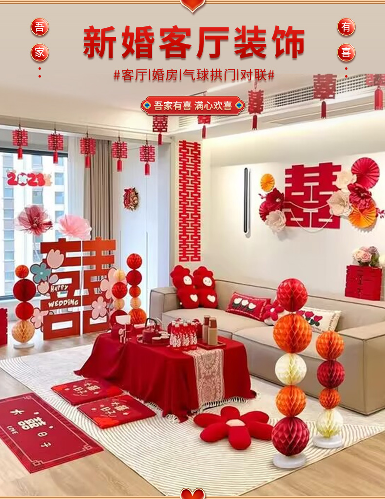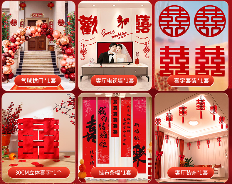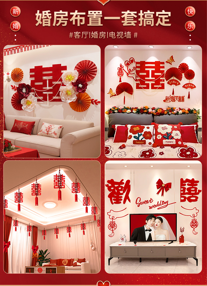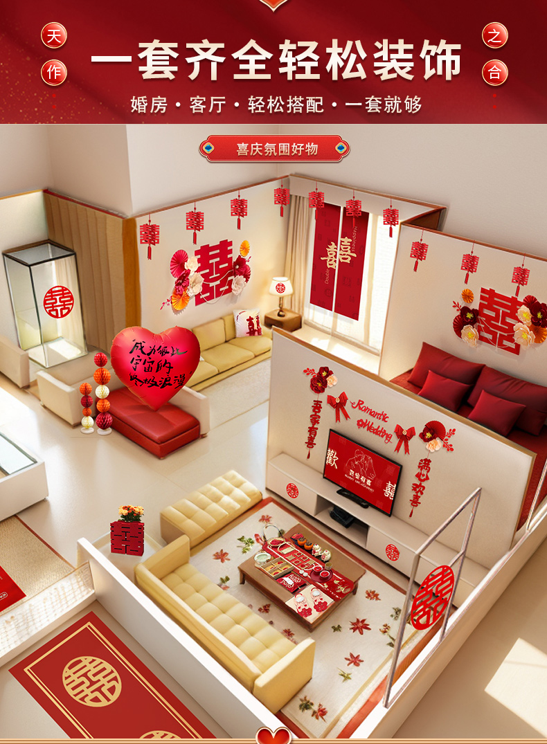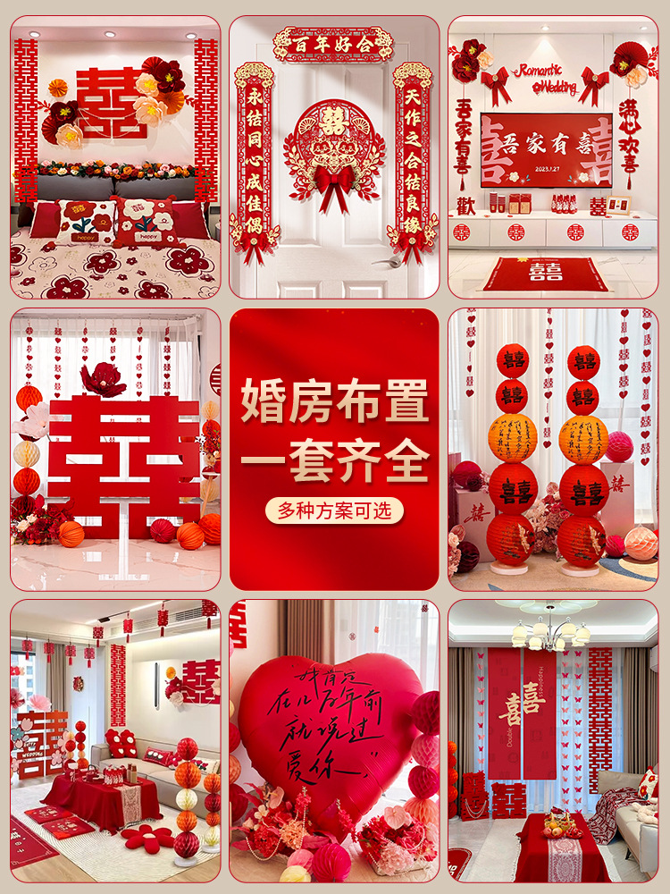 뉴 하우스 웨딩 룸 레이아웃 세트 남자의 거실 풀 하우스 장식 전체 세트 웨딩 여자의 침실 웨딩 용품 Heng Ming