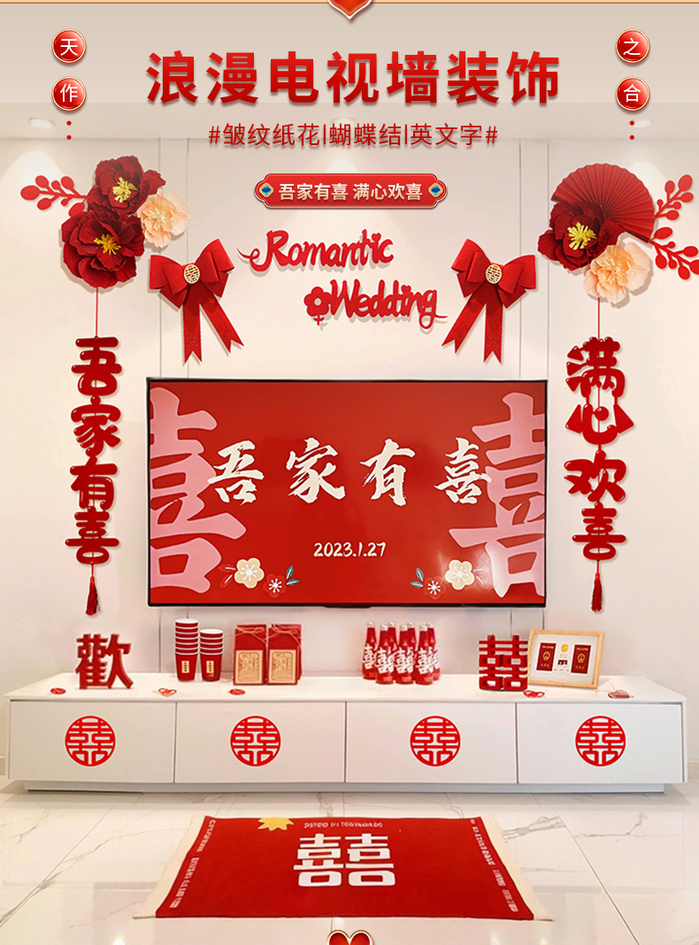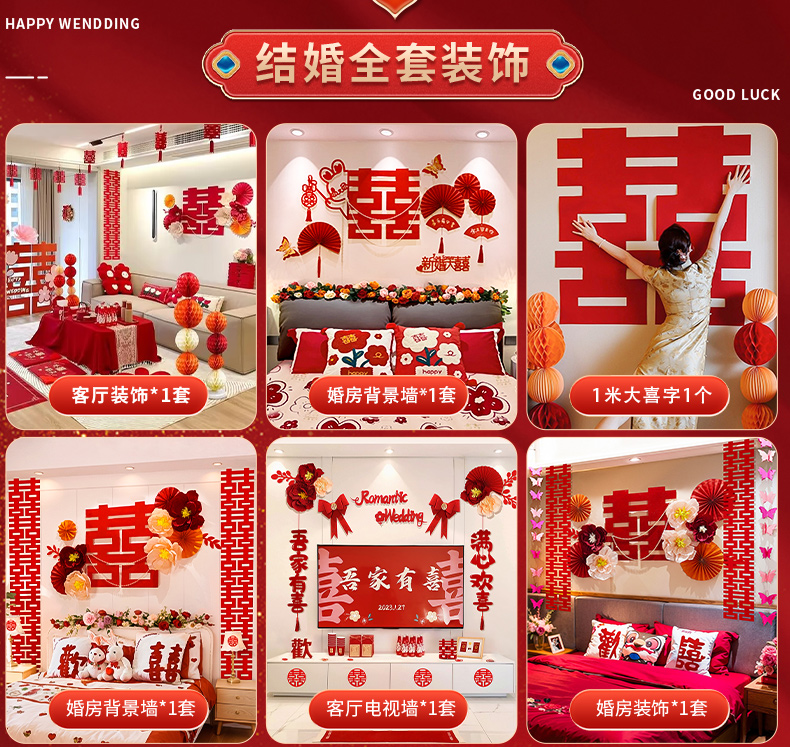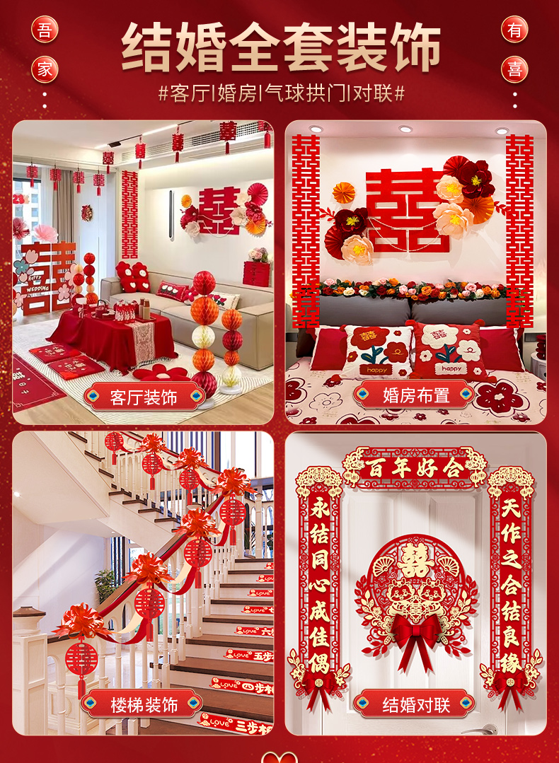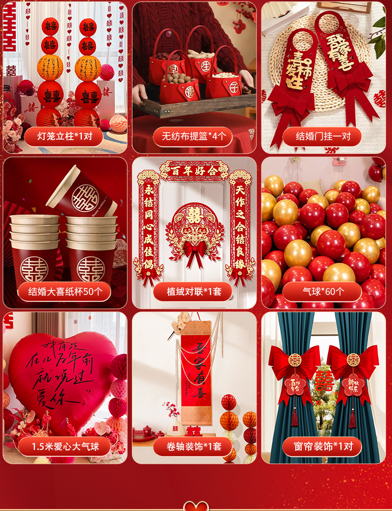 뉴 하우스 웨딩 룸 레이아웃 세트 남자의 거실 풀 하우스 장식 전체 세트 웨딩 여자의 침실 웨딩 용품 Heng Ming