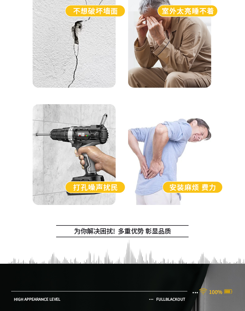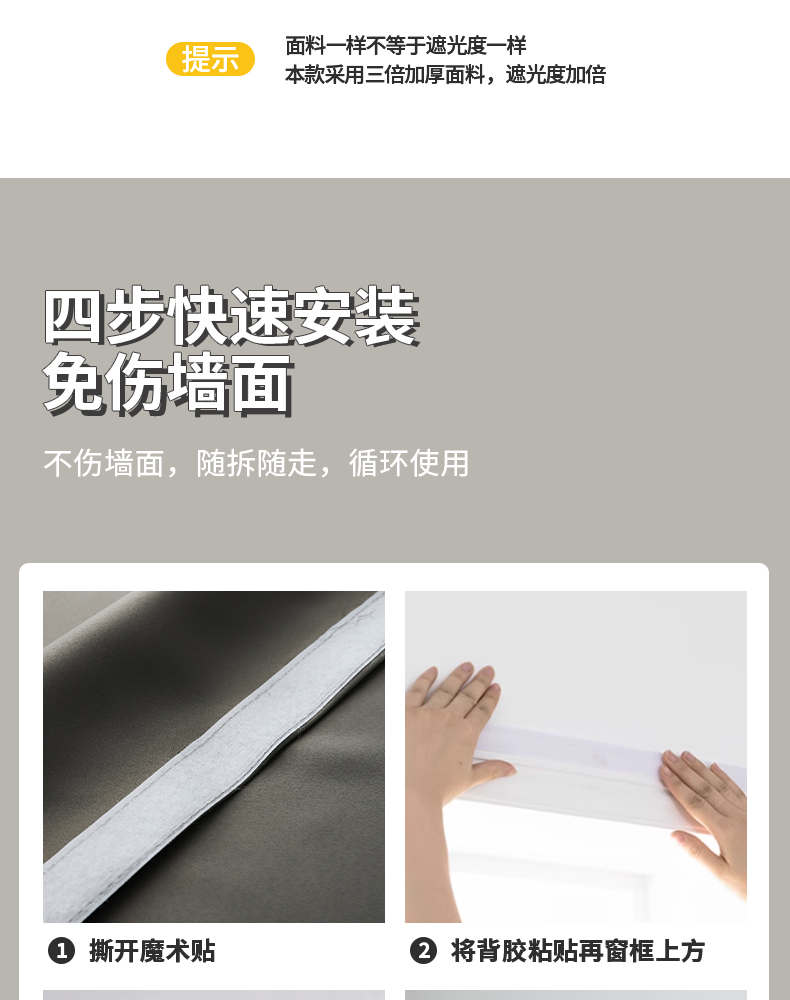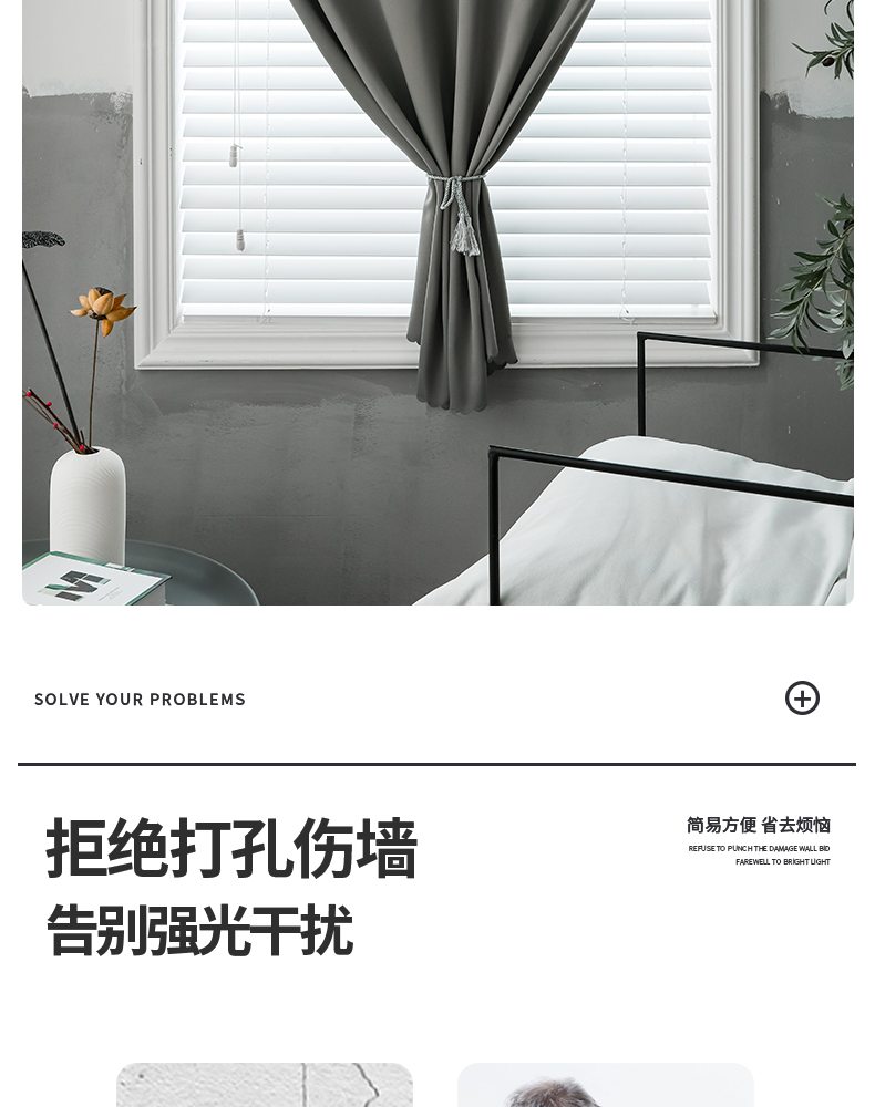 풀 쉐이딩 벨크로 커튼 천 2023 새로운 차양 펀치 무료 설치 간단한 접착 렌탈 룸 교수형 비문