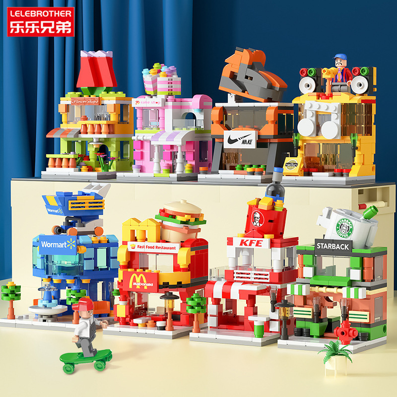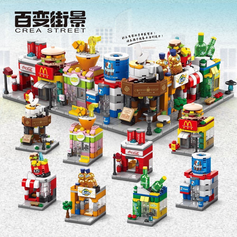 레고 빌딩 블록 스트리트 뷰 시티 미니 패스트 푸드 음료 상업 거리 교육 조립 남성 장난감 선물 스톨 호환스토어 가기