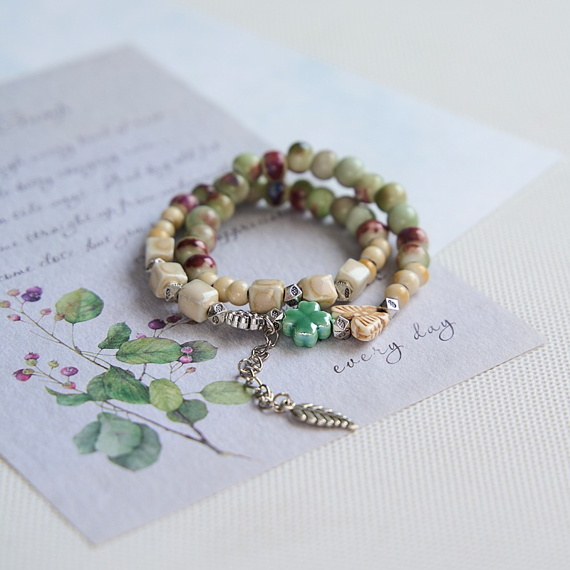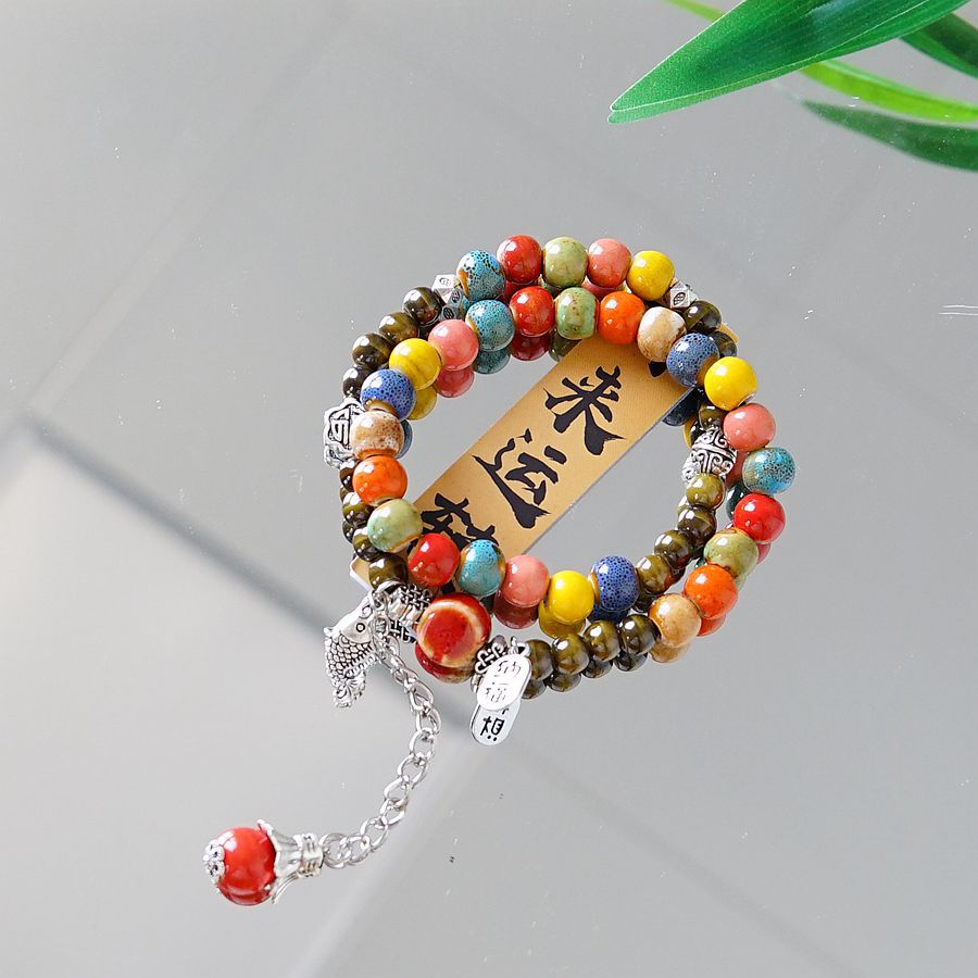 Jingdezhen 세라믹 더블 서클 팔찌 디자인 고급 감각 도매 문학 축복 보석 선물 골동품 팔찌스토어 가기