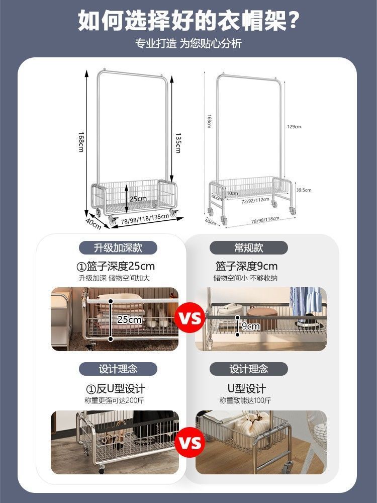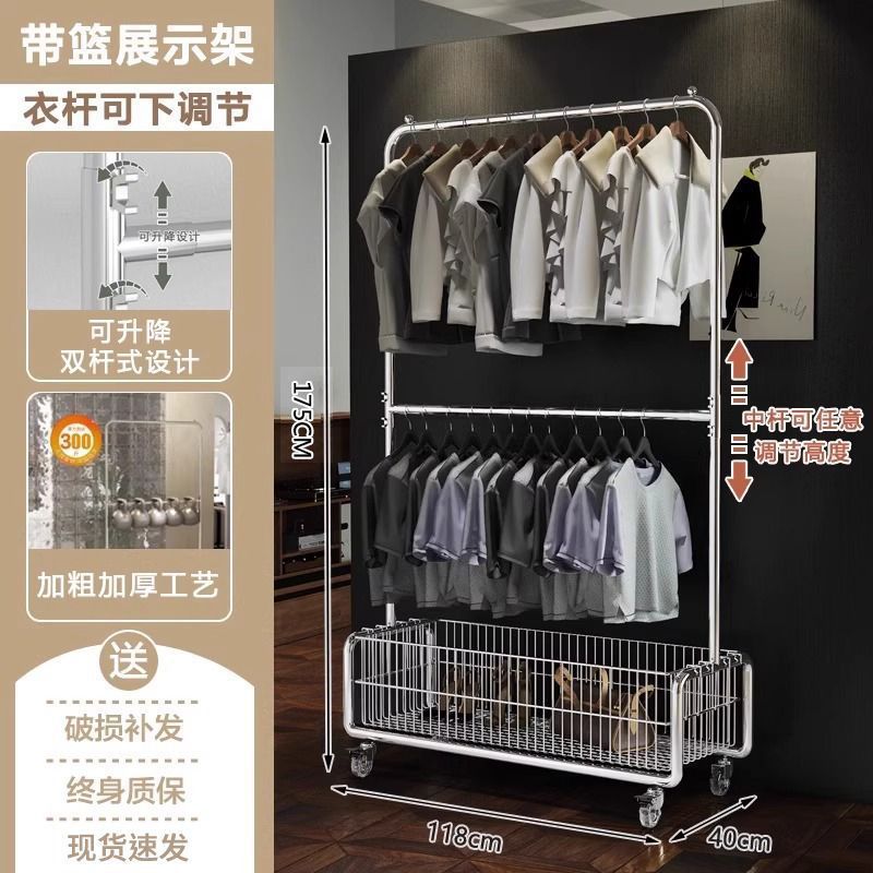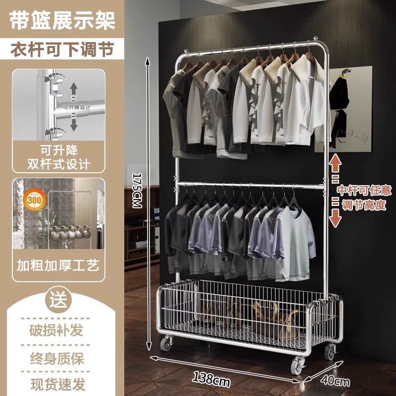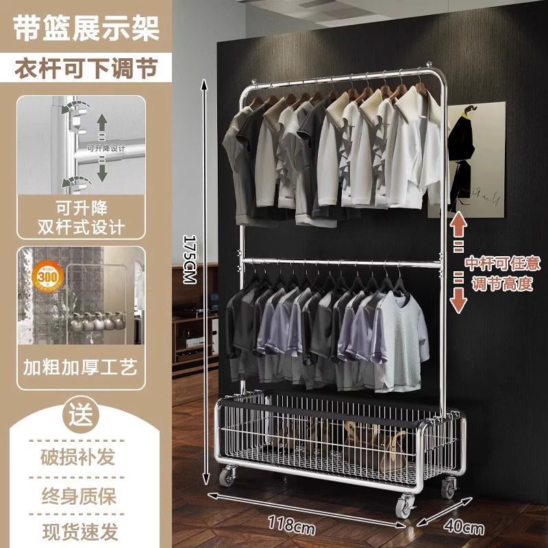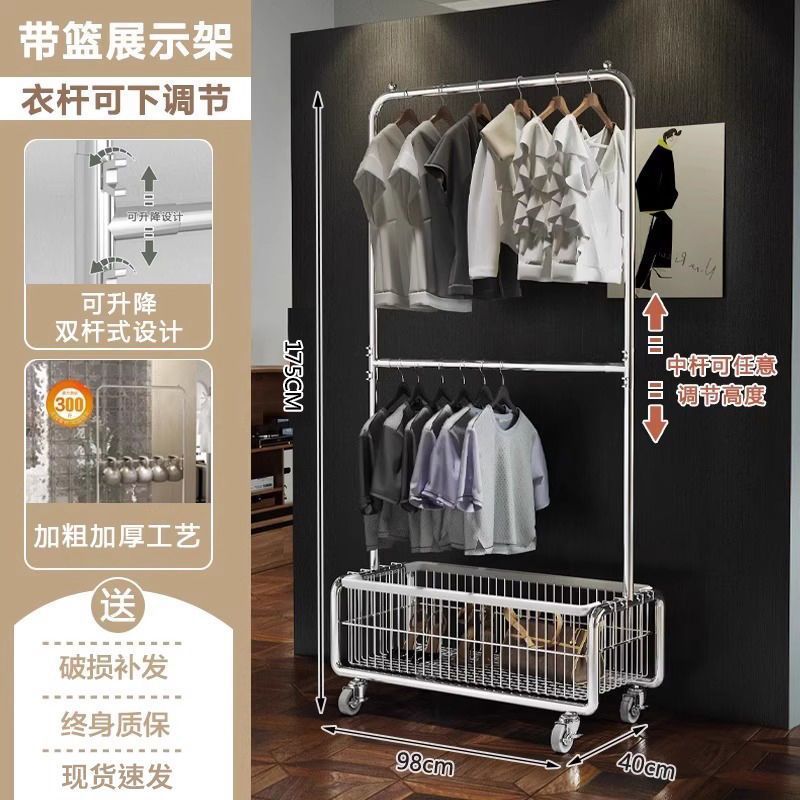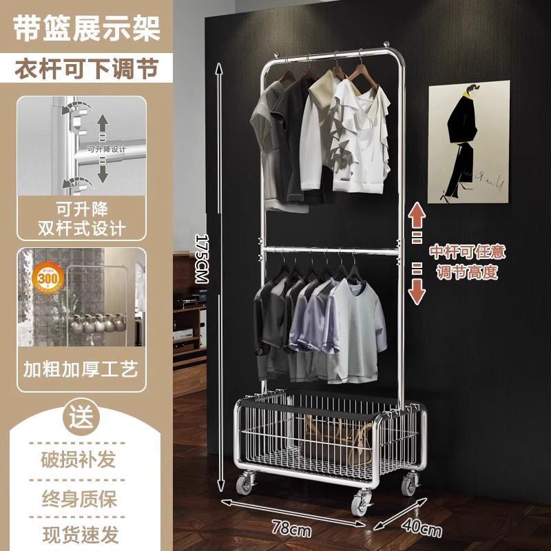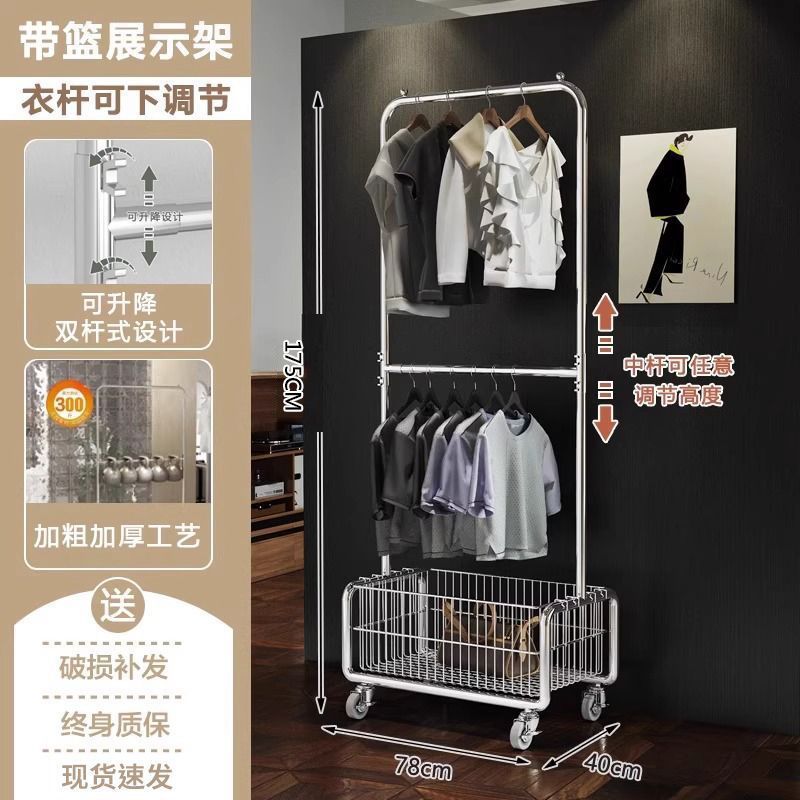 모바일 옷 걸이 바닥에 서있는 랙 침실 옷 보관함 라이트 럭셔리 코트 랙 간단한 옷 건조 랙 가정용 옷 걸이 막대스토어 가기