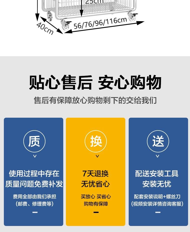 • 바구니-고무 바퀴-78CM이 있는 이중 극