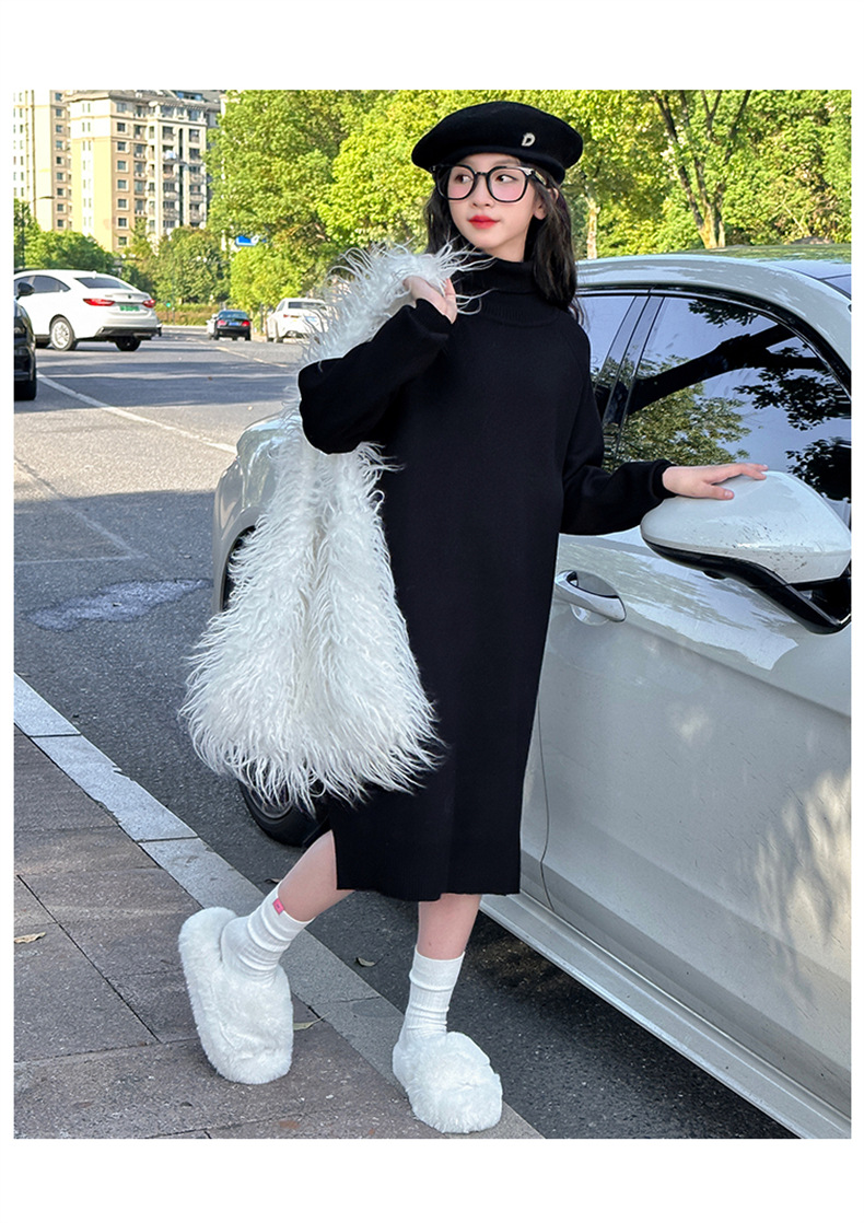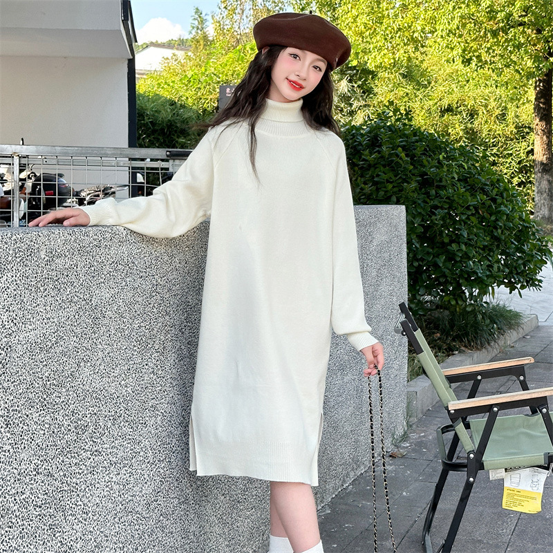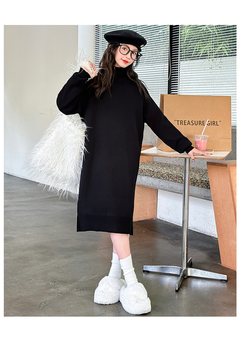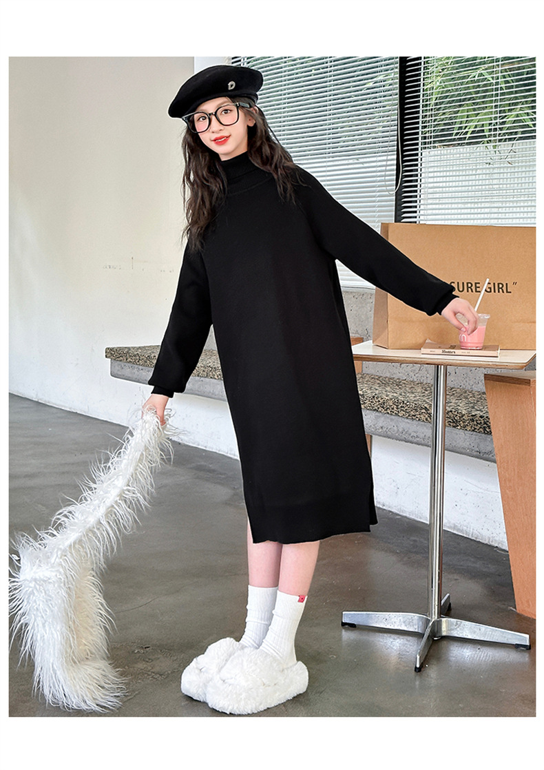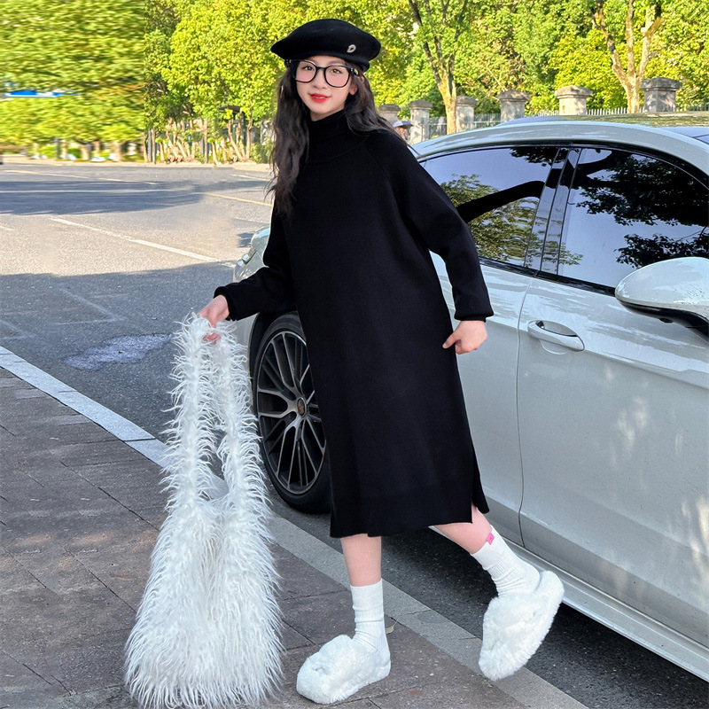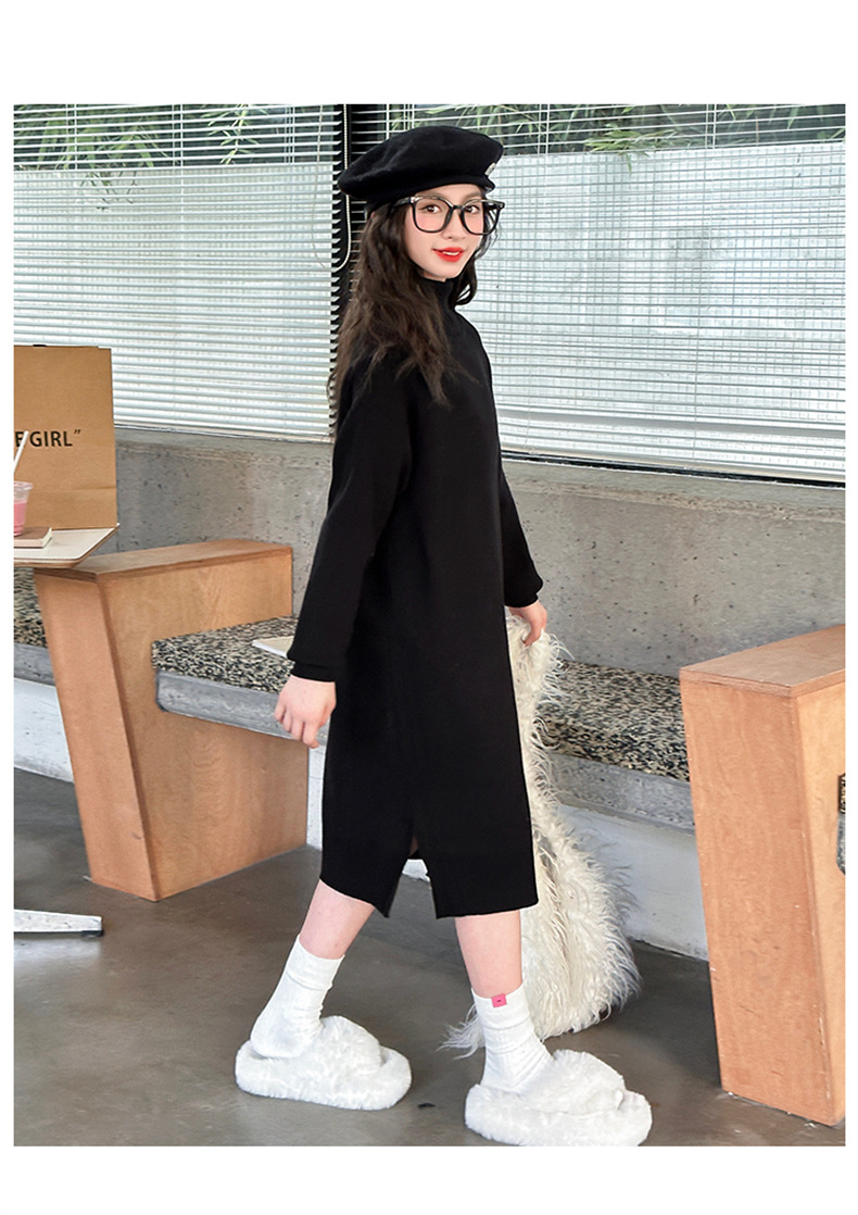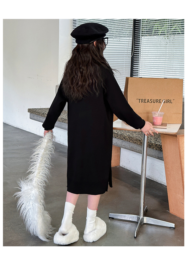 소녀의 가을과 겨울 스웨터 2024 새로운 스타일 중대형 어린이 서양식 니트 셔츠 어린이 중간 길이의 루즈베이스 셔츠 내부 리본스토어 가기