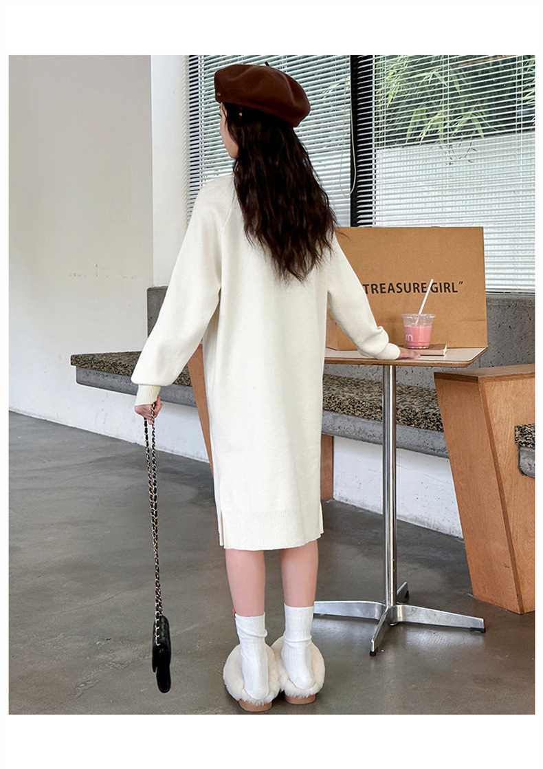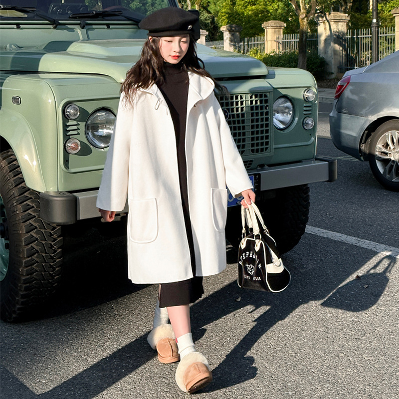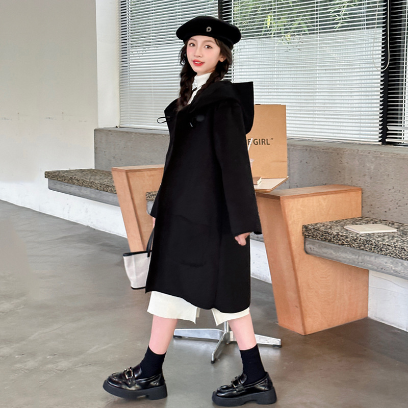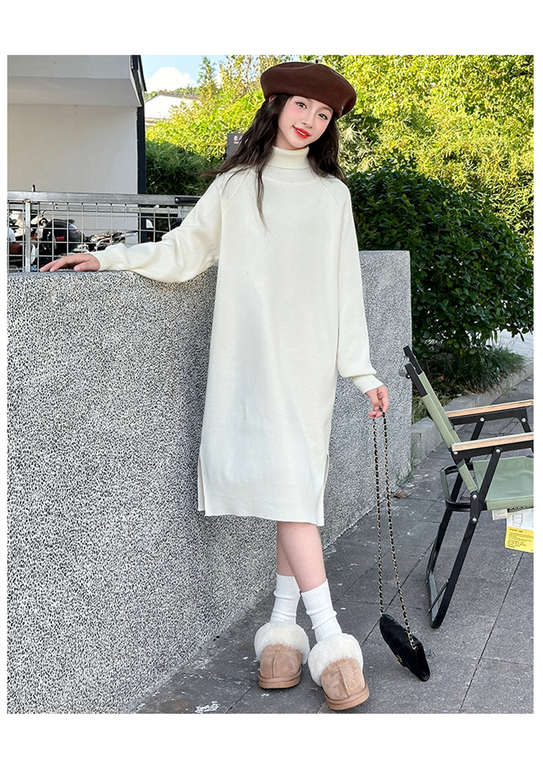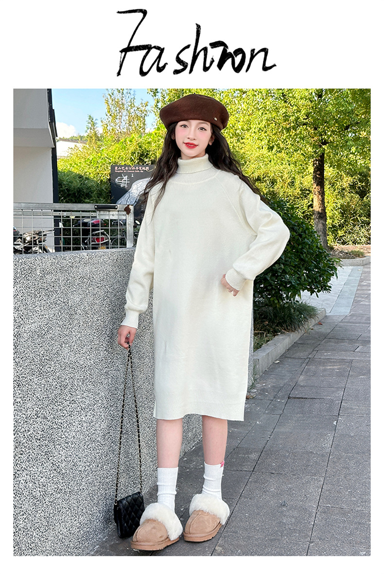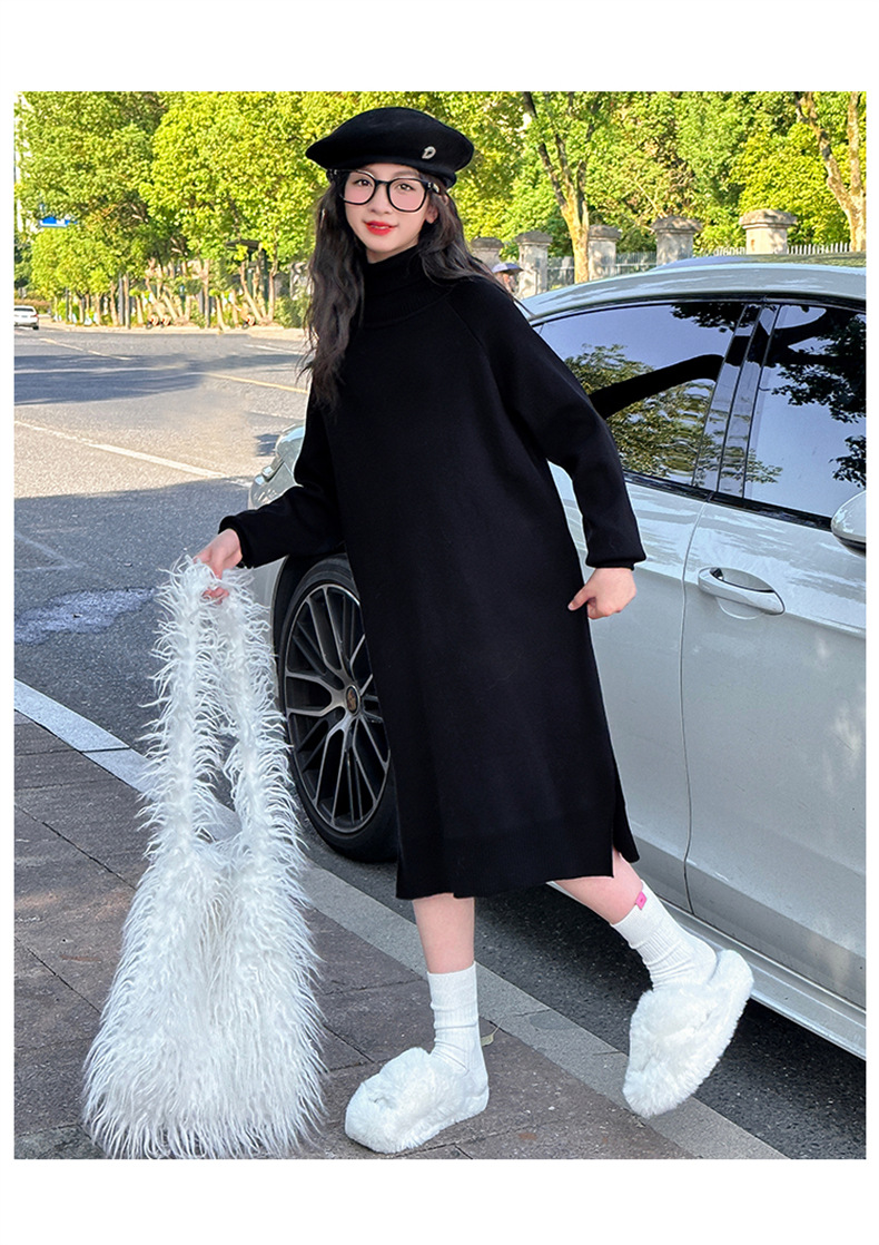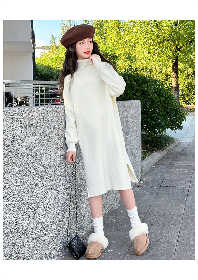 소녀의 가을과 겨울 스웨터 2024 새로운 스타일 중대형 어린이 서양식 니트 셔츠 어린이 중간 길이의 루즈베이스 셔츠 내부 리본스토어 가기