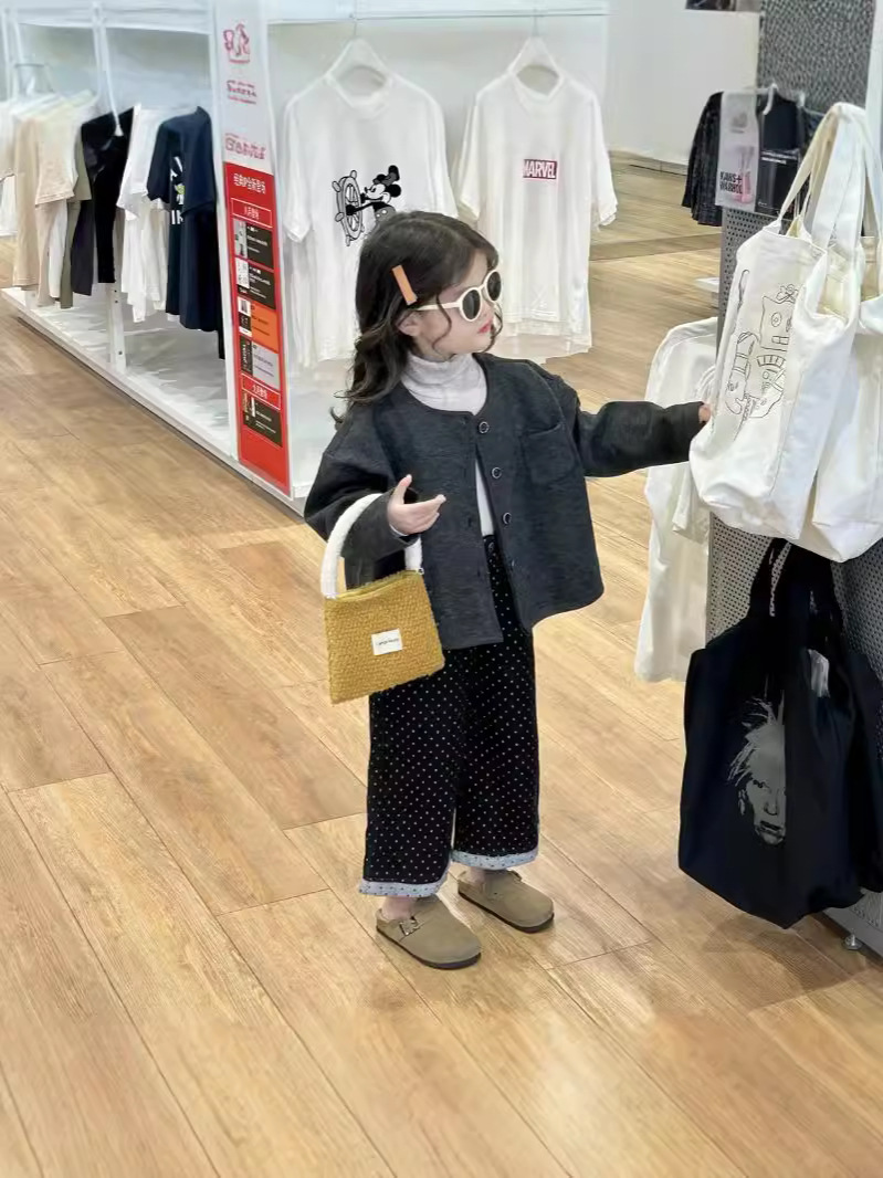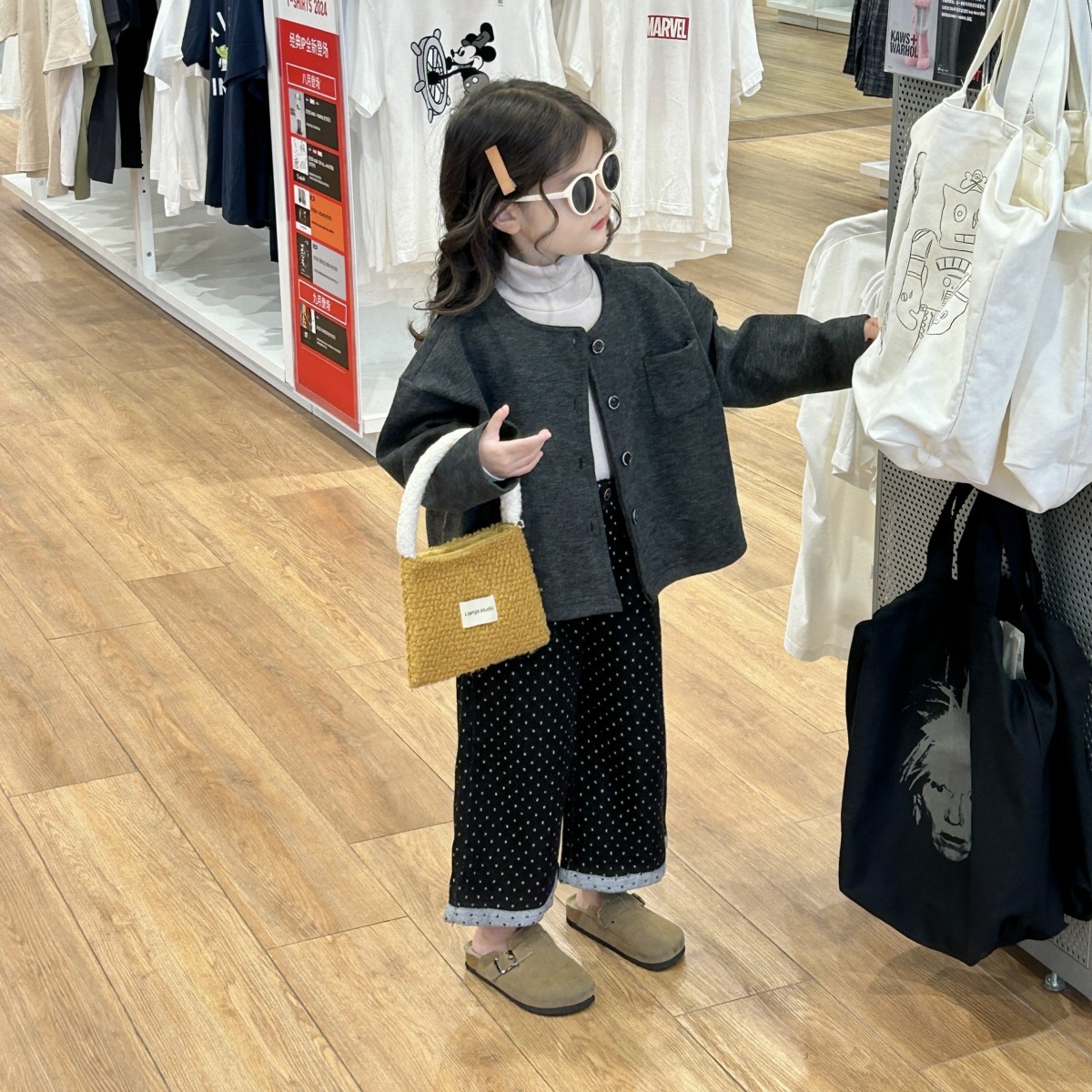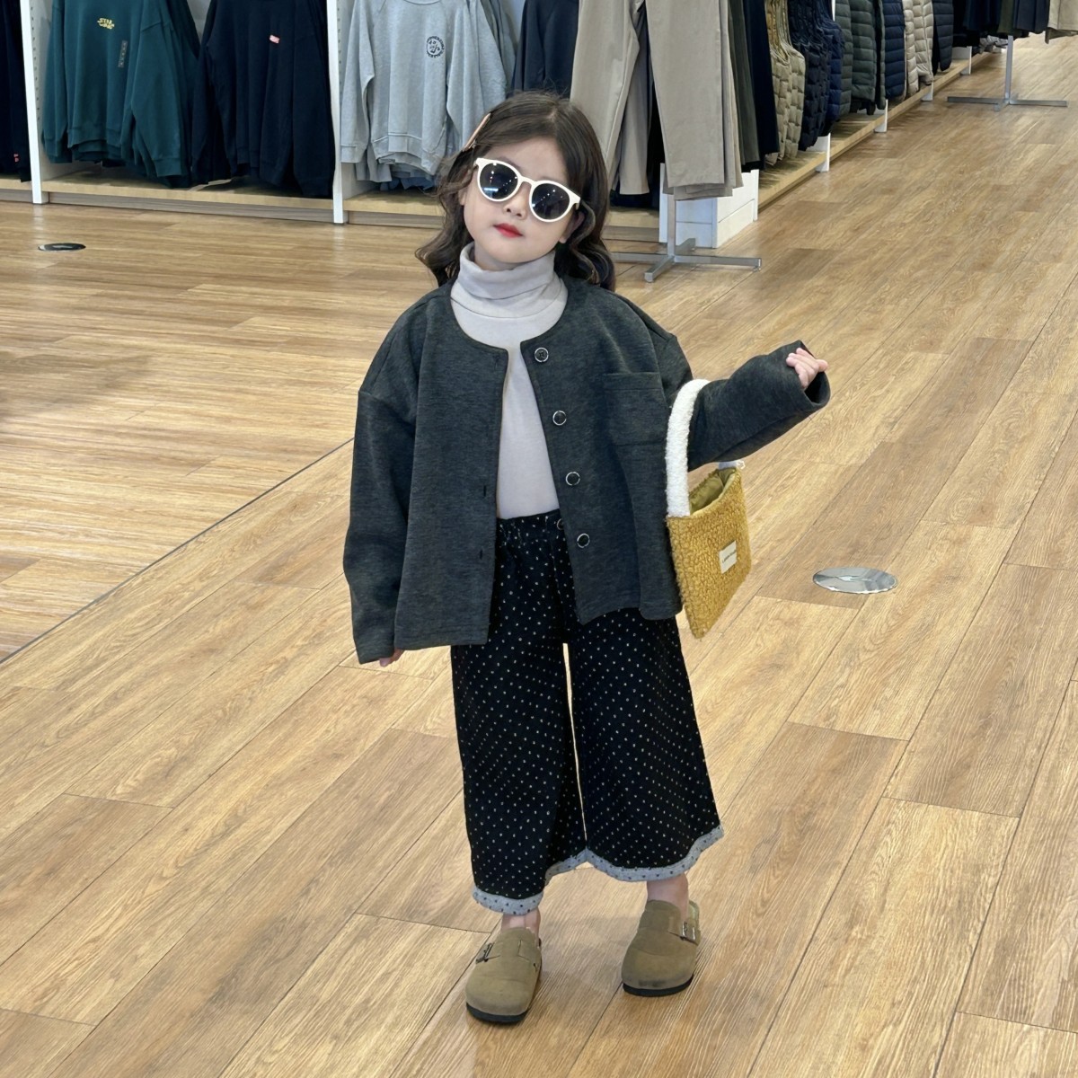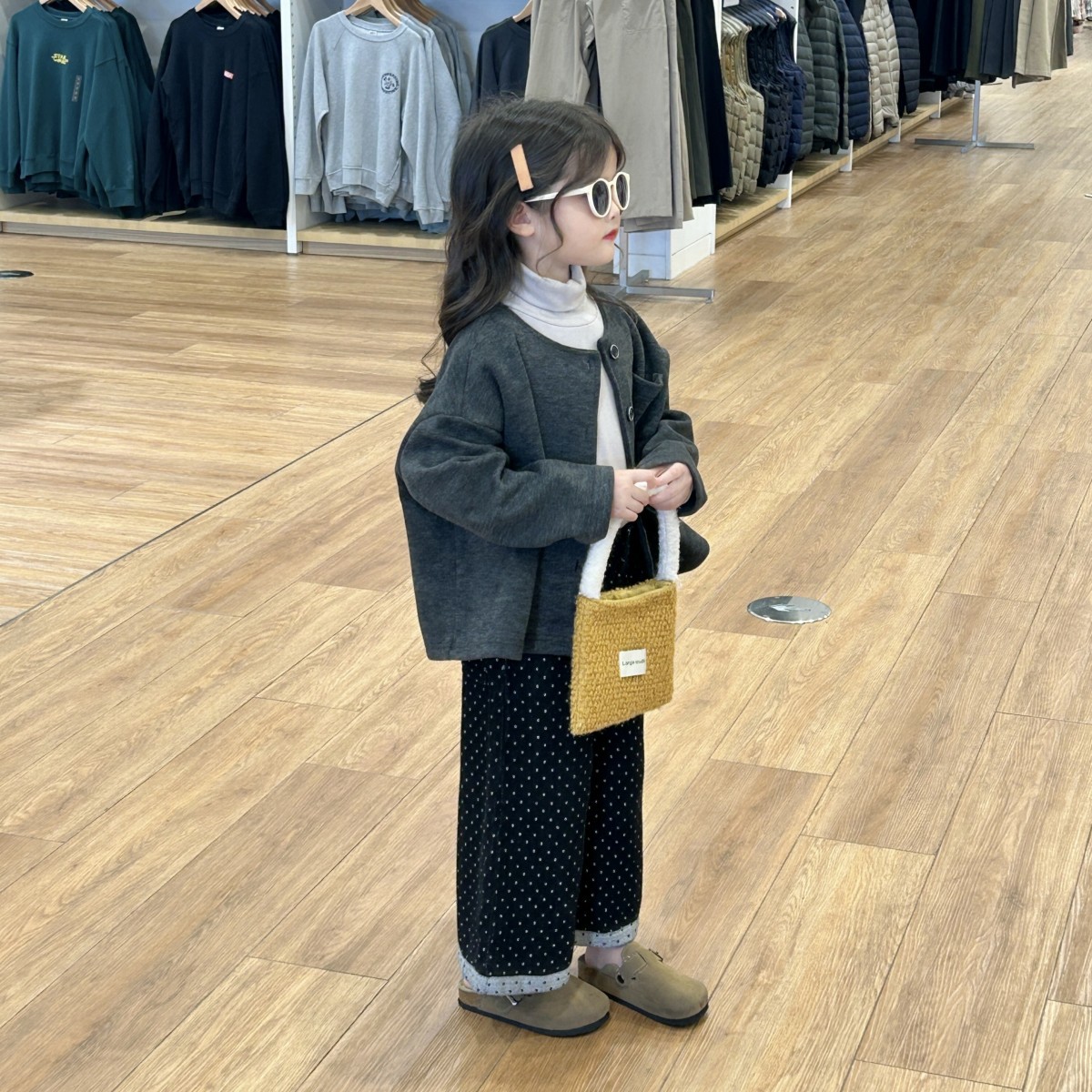 2024 가을과 겨울 새로운 한국 아동복 소녀 외국 스타일 코트 어린이 두꺼운 코트 아기 모직 외국 스타일 카디건 유행스토어 가기