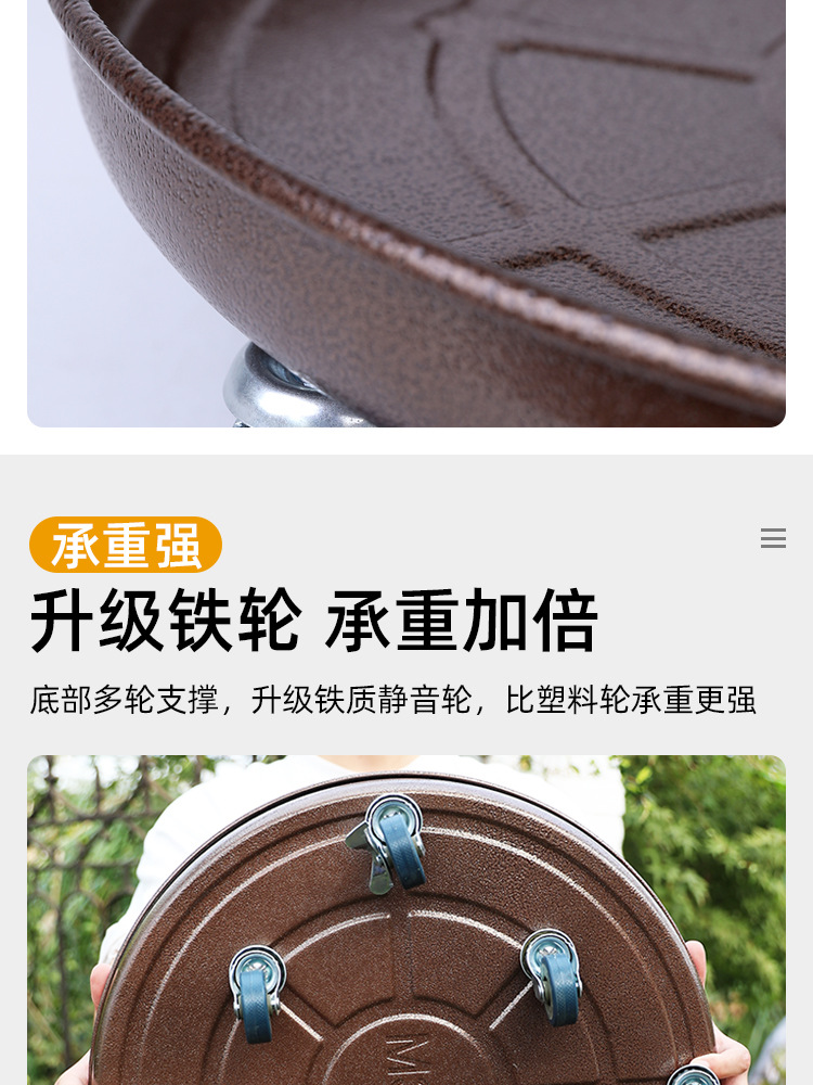 휠 롤러 트레이가있는 금속 연철 이동식 화분 트레이 릴 유니버설 휠 하중 베어링 도르래 꽃 냄비 기초