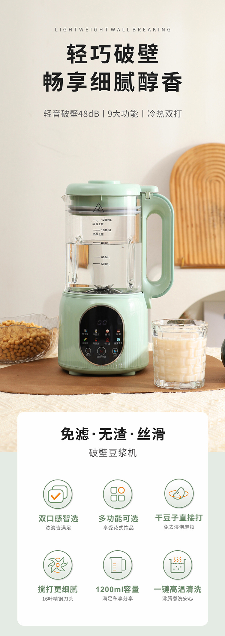 광 새로운 콩 우유 기계 벽 속보 기계 가정용 자동 다기능 비 끓는 비 담근 보조 식품 조리 기계