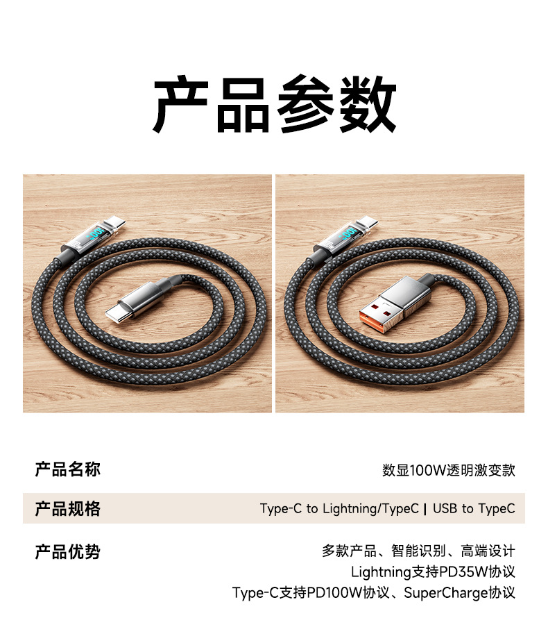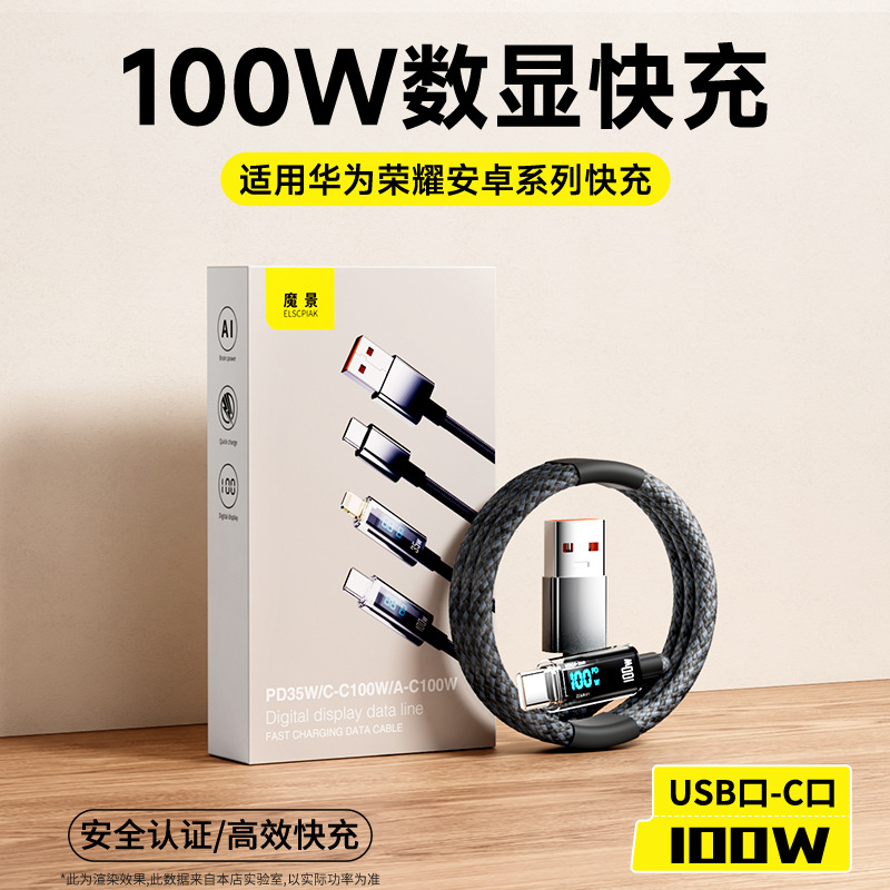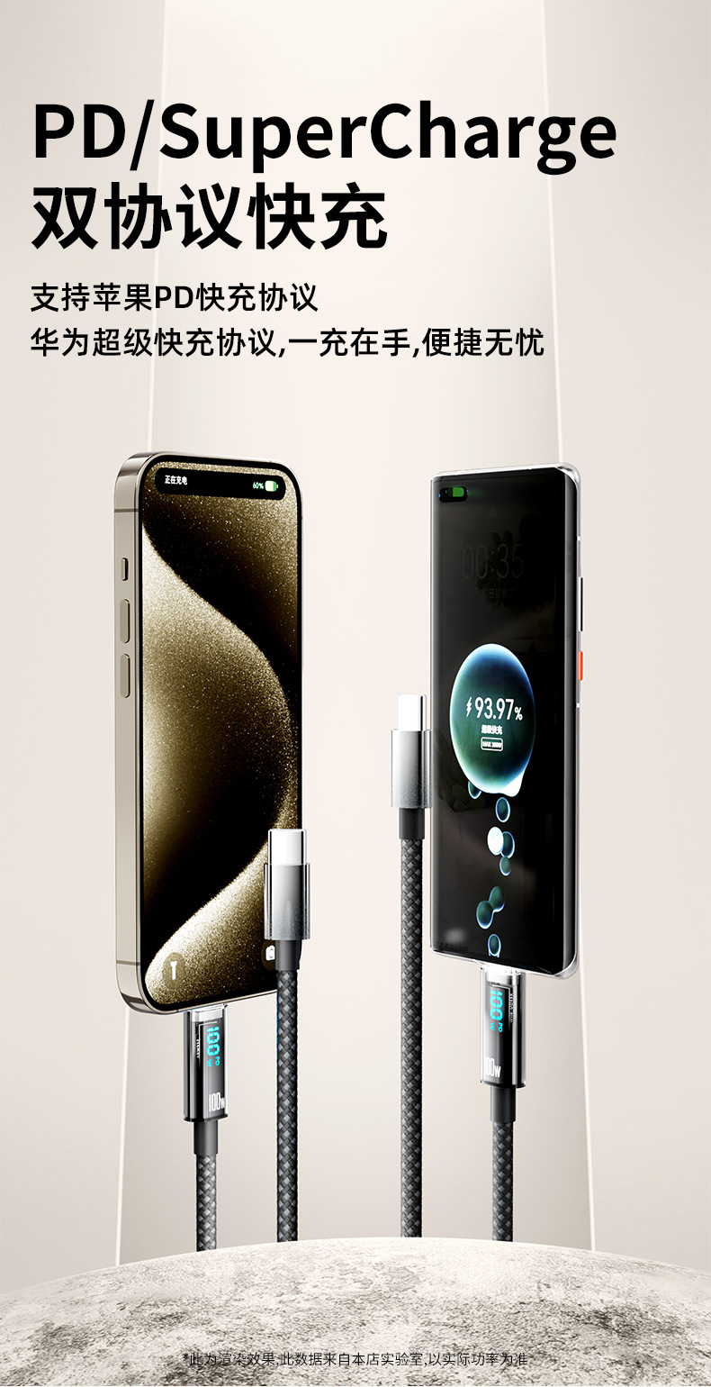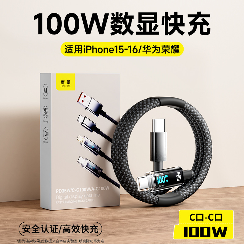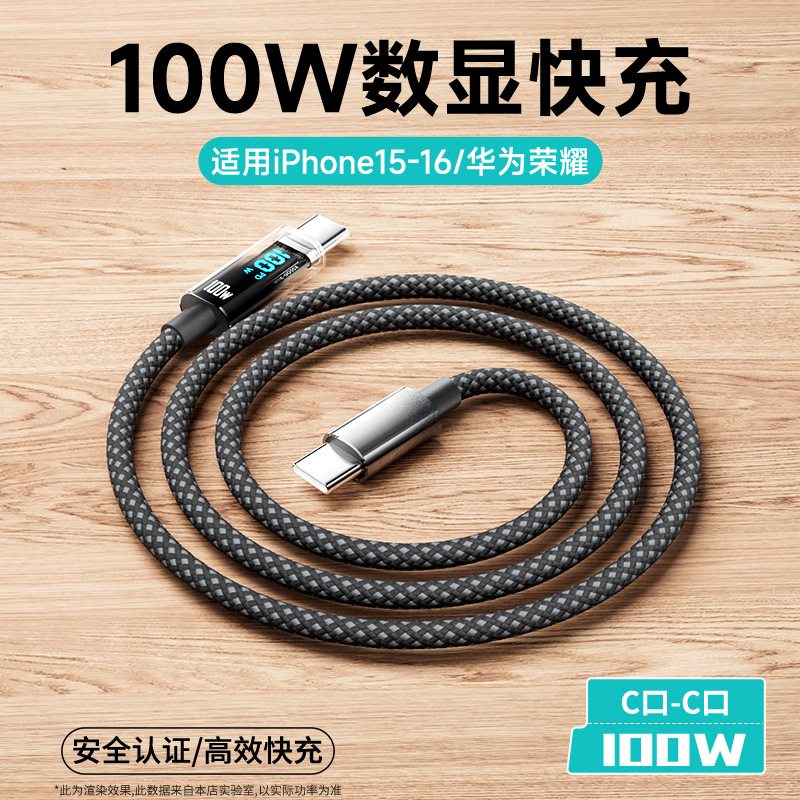 100W 지능형 디지털 디스플레이 데이터 라인 화웨이 애플 16 더블 타입-C 꼰 라인 휴대 전화 충전 라인 도매스토어 가기
