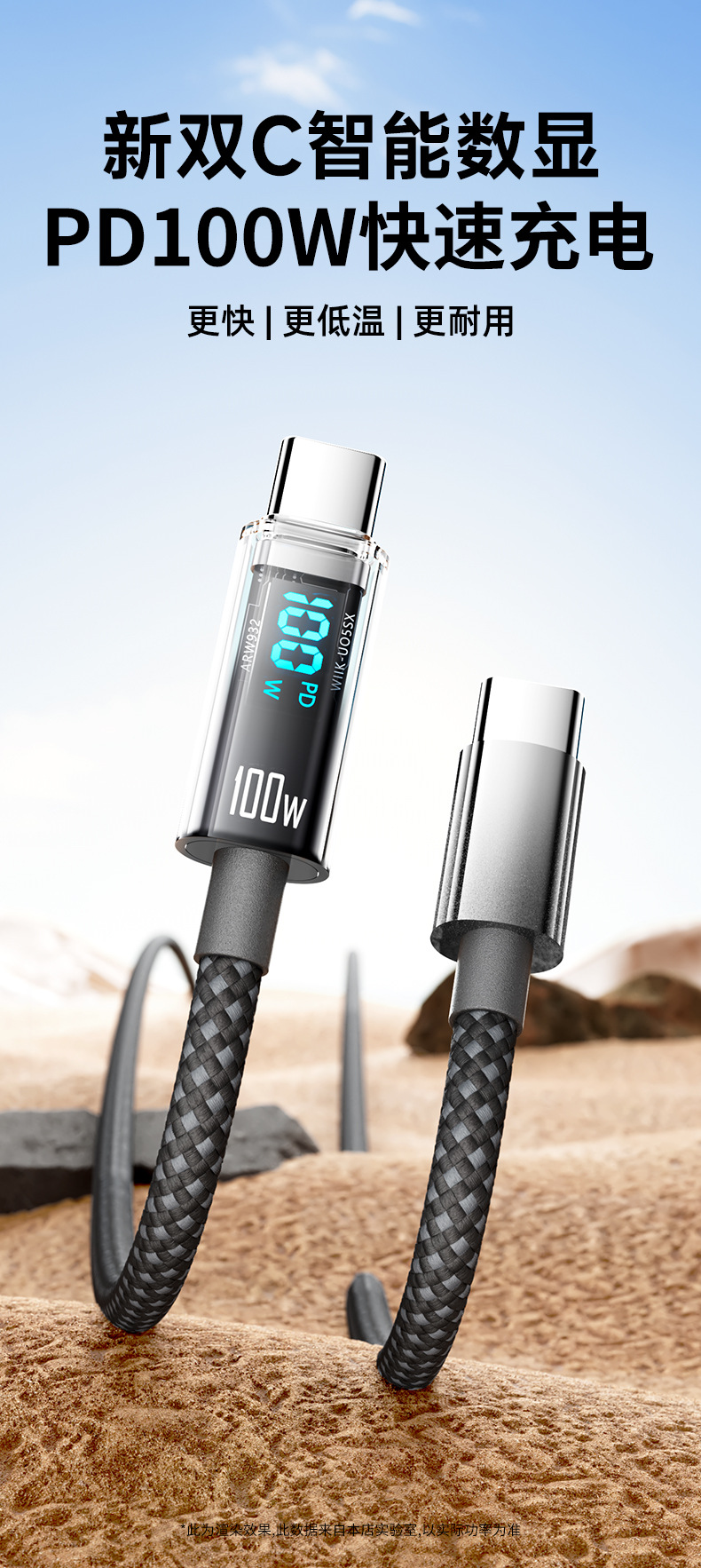• [C] 2m 진정한 100W 스마트 디지털 디스플레이 고속 충전 케이블 [E-마커 칩 포함] Huawei Honor Apple 15-16 네이키드