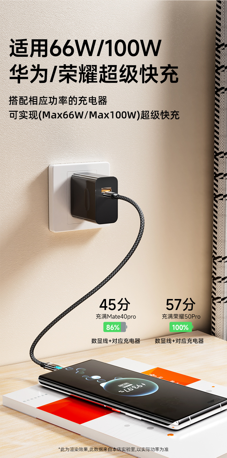• [A-C] 1.5m True 100W 스마트 디지털 디스플레이 고속 충전 케이블 [E-마커 칩 포함] Huawei Honor Naked