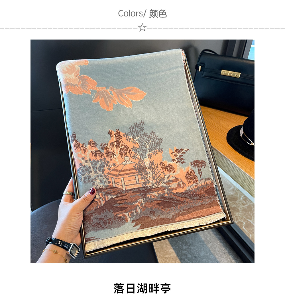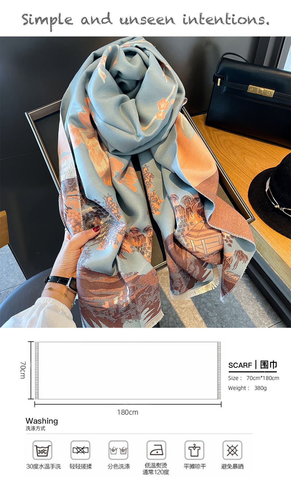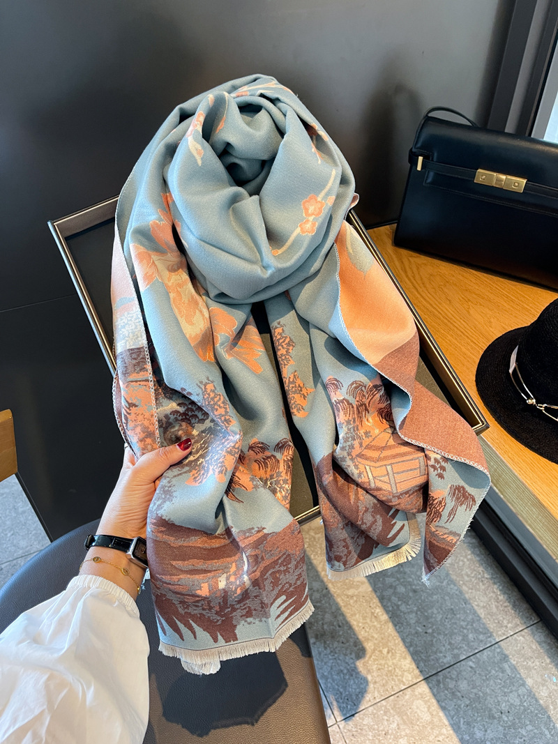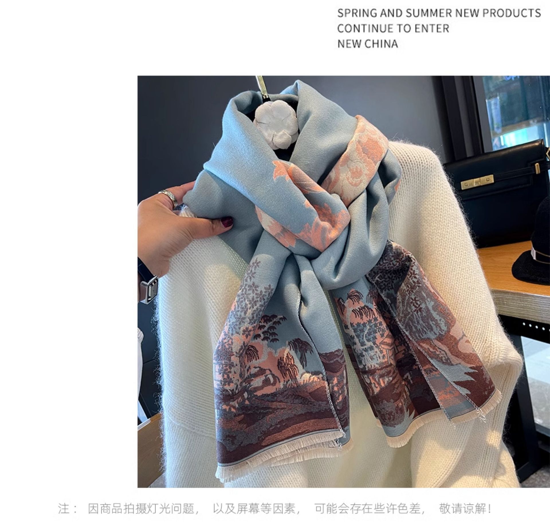 마운틴 파빌리온 가을 색상 | 야 윤 블루 양면 캐시미어 스카프 여성의 가을과 겨울 두꺼운 따뜻한 긴 목도리 이중 목적스토어 가기
