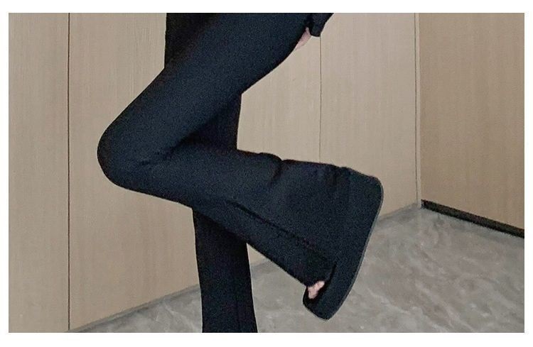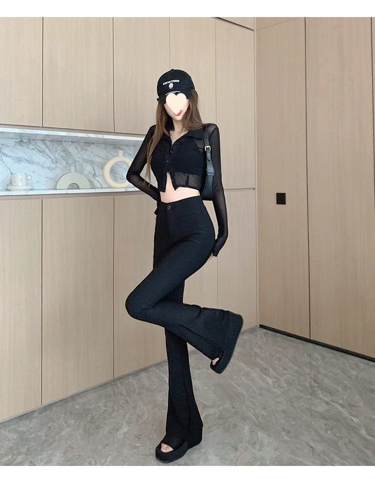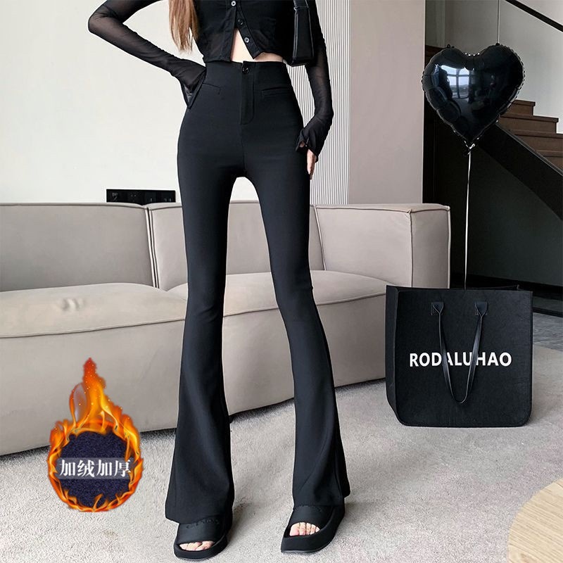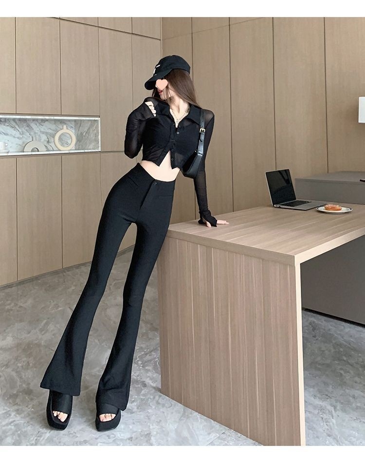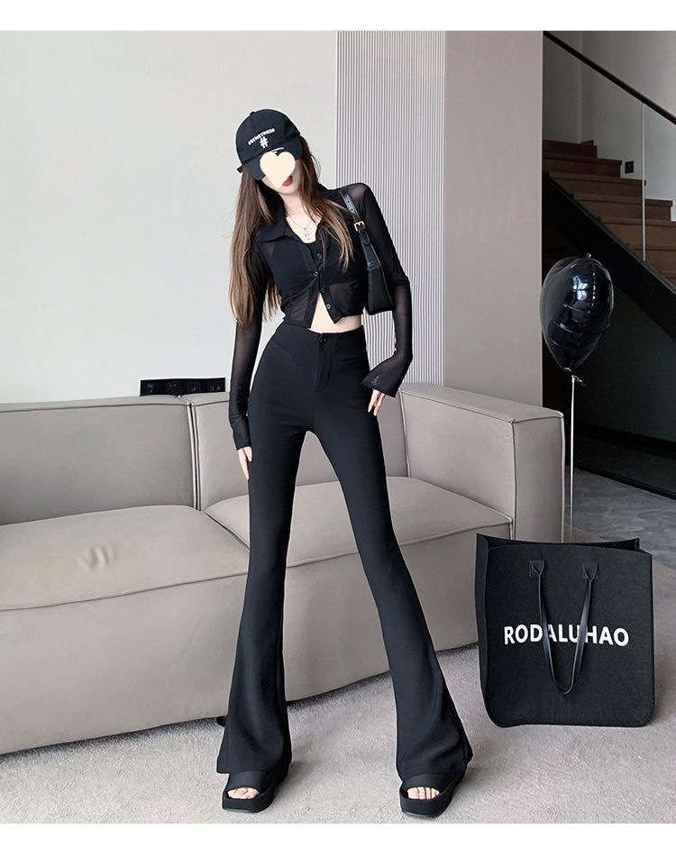 검은 세트 바지 여성의 높은 허리 스트레치 마이크로 플레어 팬츠 슬림 핏 슬리밍 플로어 걸레 말굽 바지 2024 가을 새스토어 가기