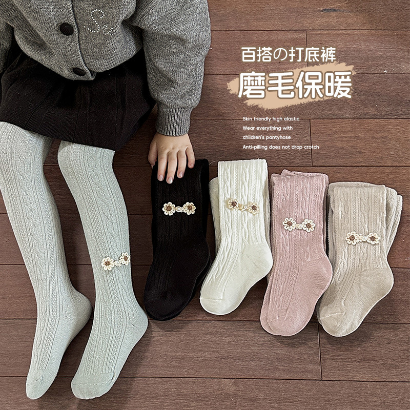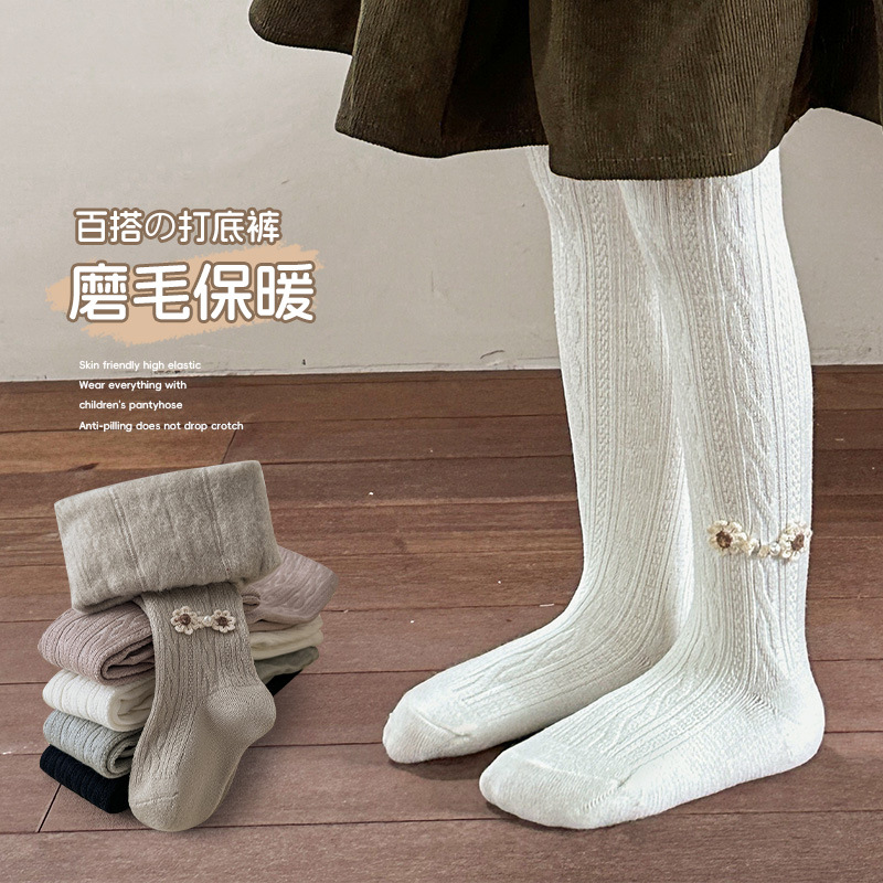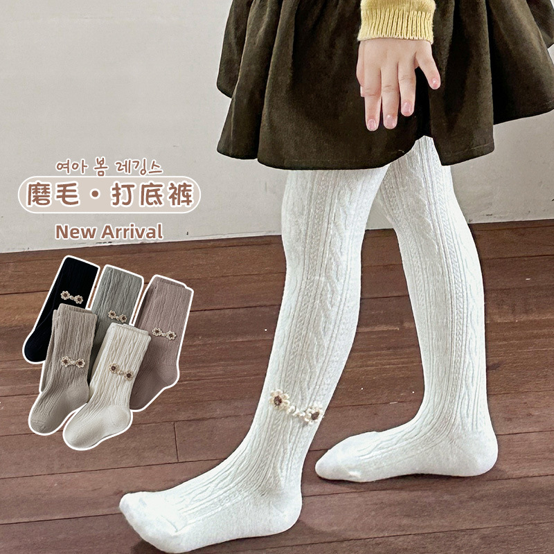어린이 봄과 가을 팬티 스타킹 매화 매듭 어린이 외부 착용 흰색 레깅스 가을과 겨울 기모 소녀 얇은 벨벳 댄스 양말