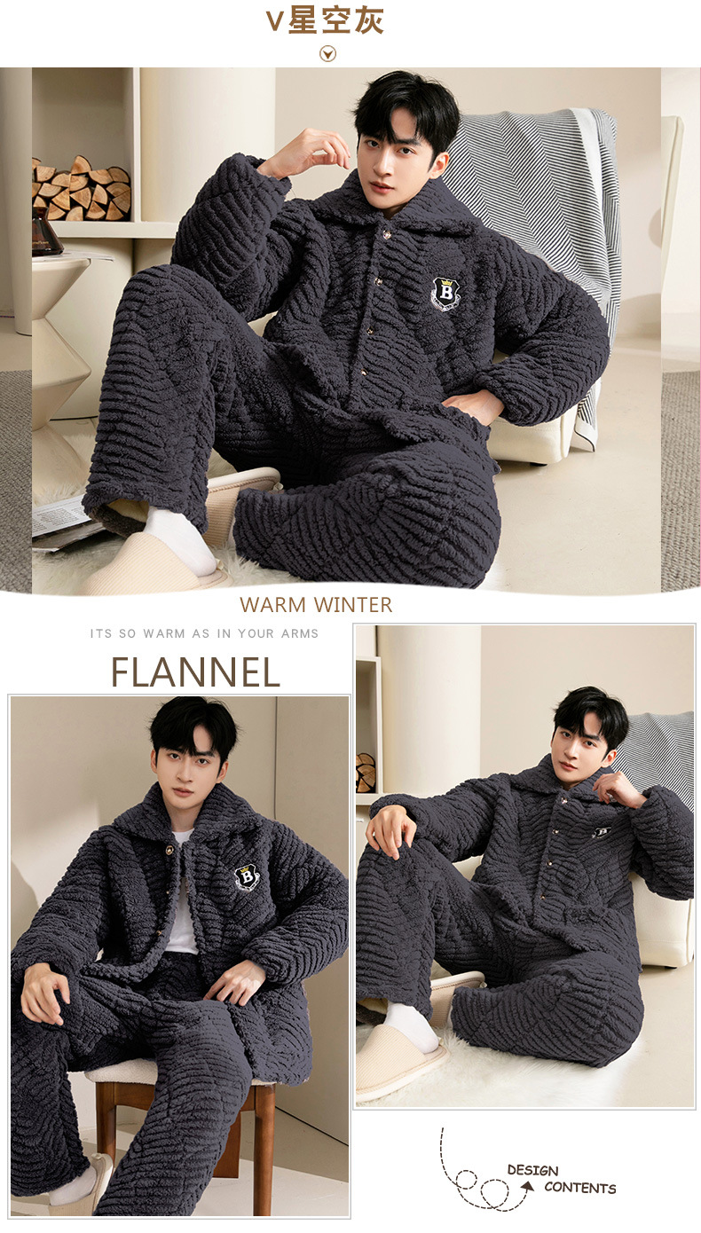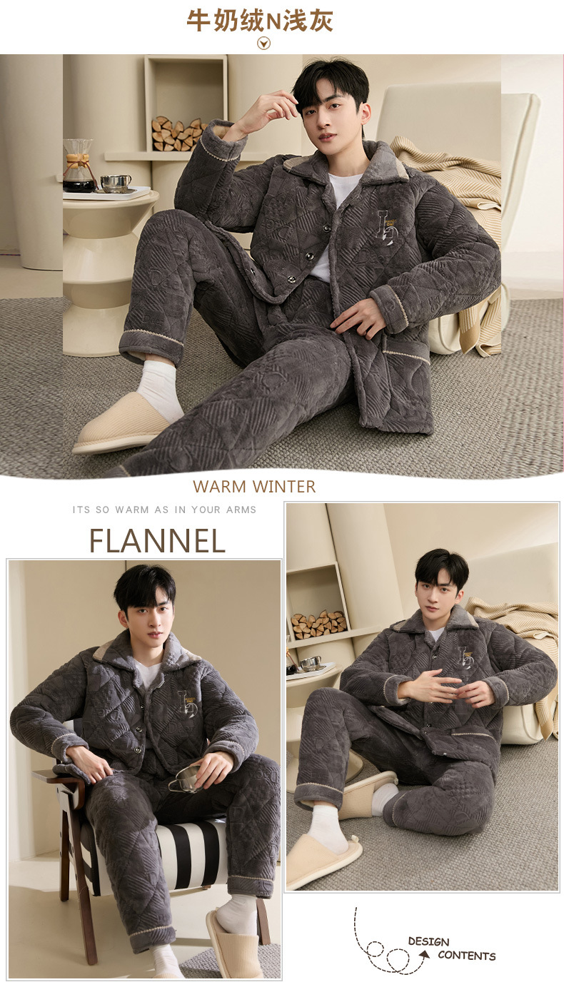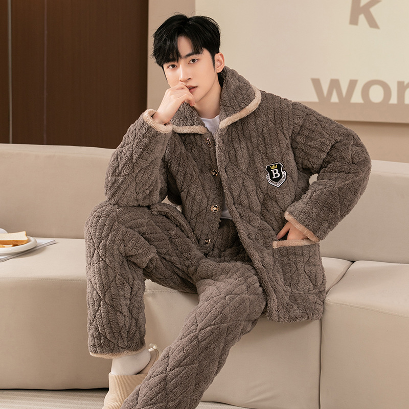 겨울 산호 양털 남성 잠옷 3 층면 패딩 기모 플란넬 가을과 겨울 홈 의류 따뜻한 세트스토어 가기