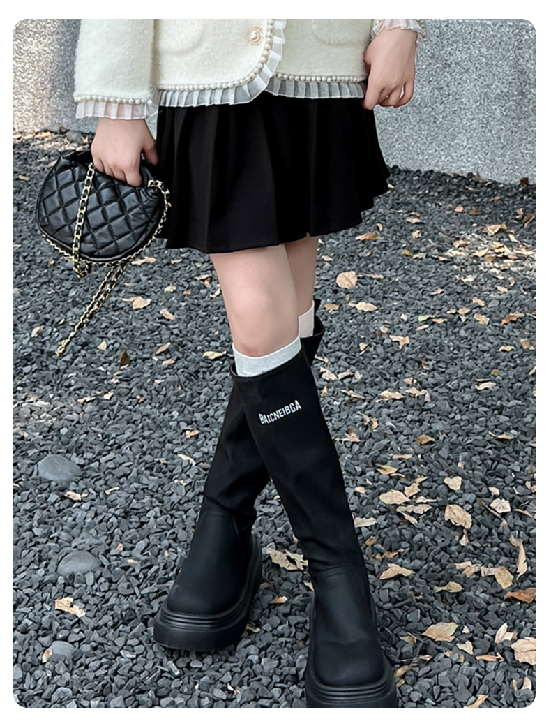 소녀 가을과 겨울 모직 주름 치마 2024 새로운 스타일 큰 어린이 치마 아이들의 두꺼운 서양식 치마