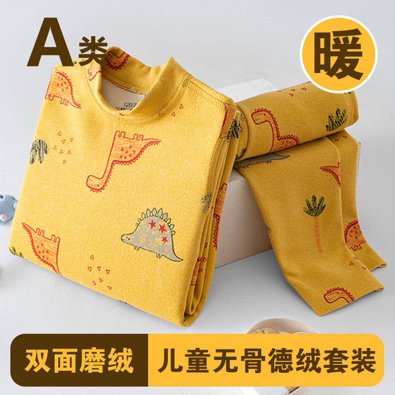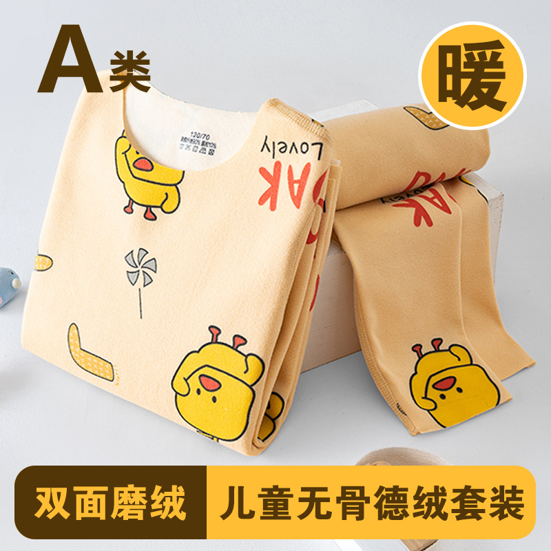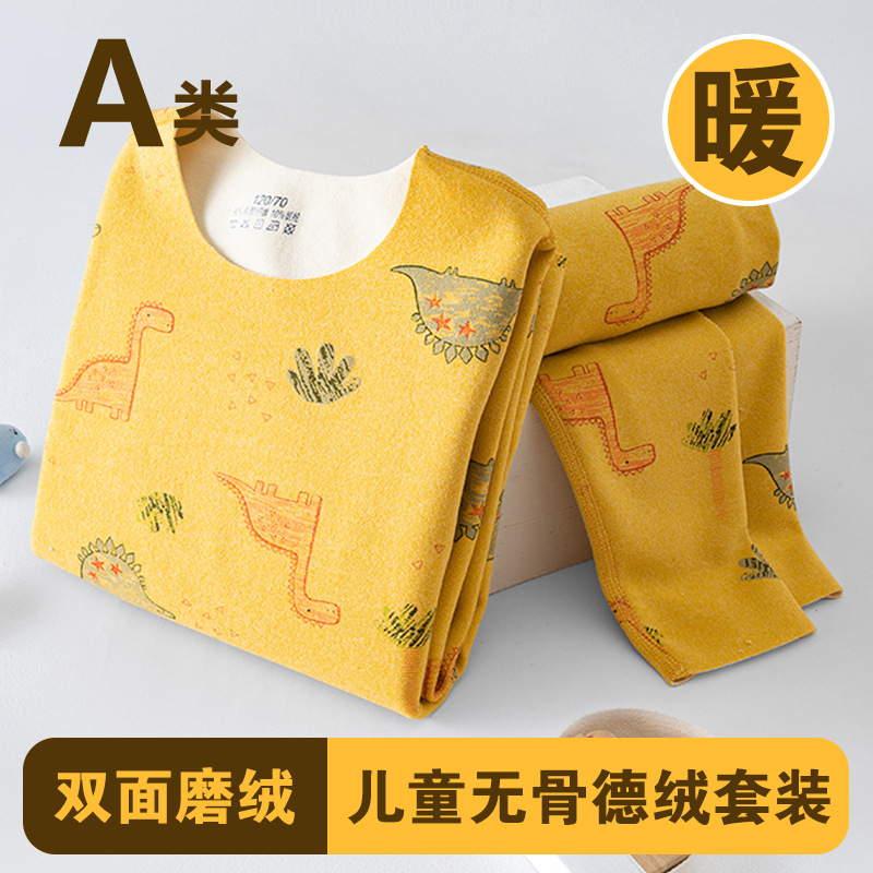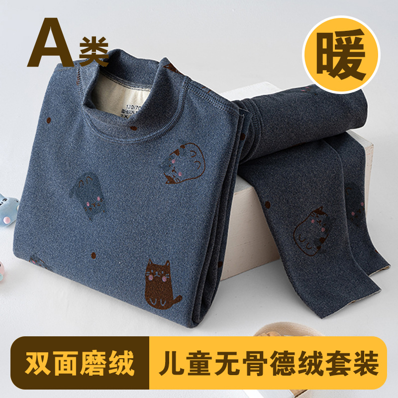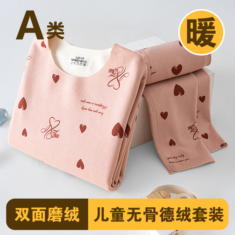 남학생과 여학생 AB 국수 벨벳 따뜻한 세트 뼈없는 기모 잠자는 속옷 어린이 가을 옷과 바지 큰 어린이와 소녀 클래스 A