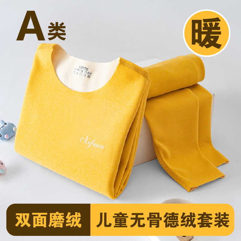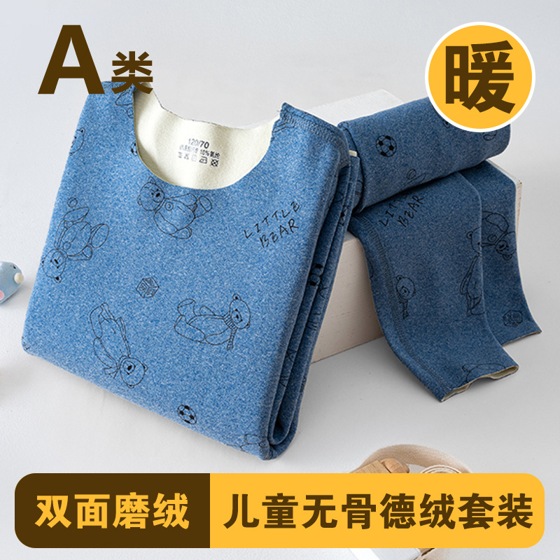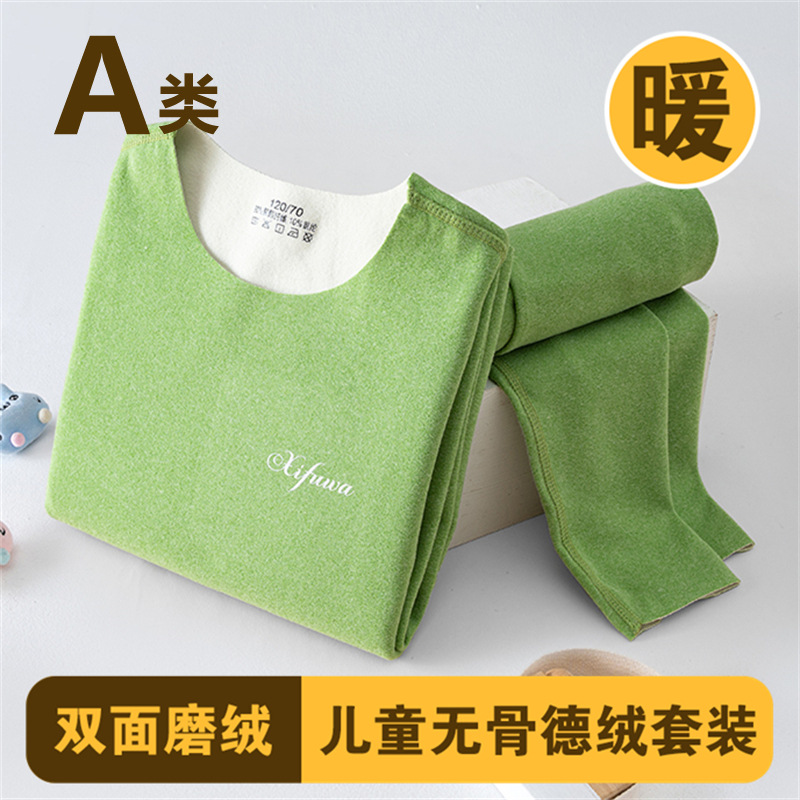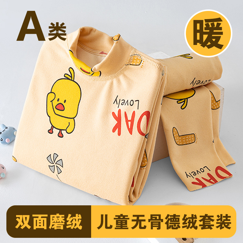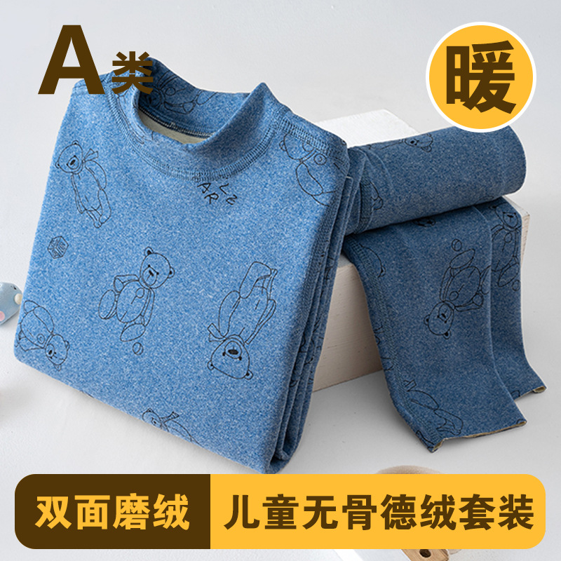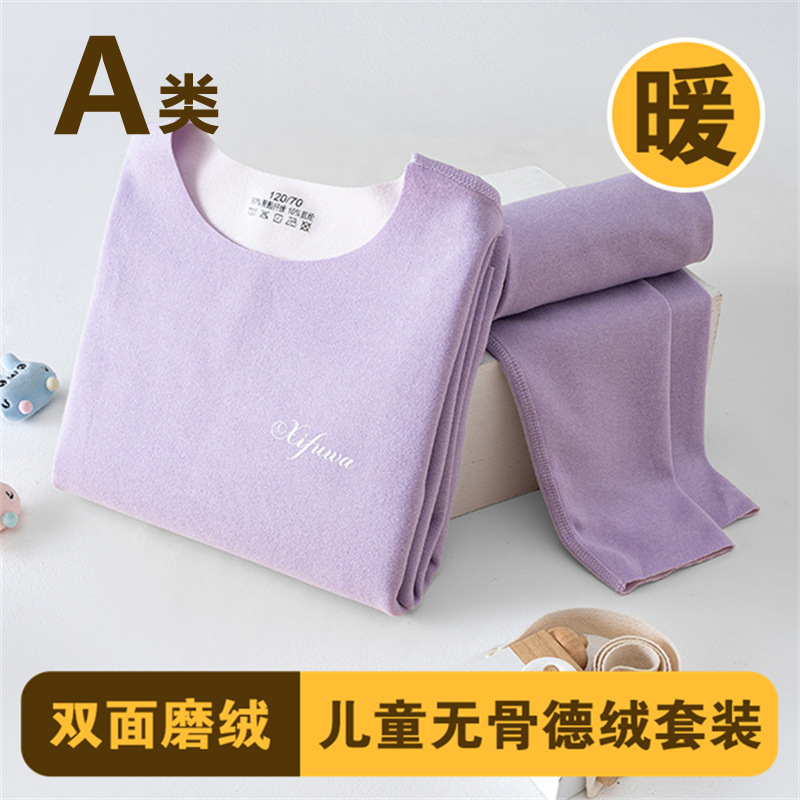 남학생과 여학생 AB 국수 벨벳 따뜻한 세트 뼈없는 기모 잠자는 속옷 어린이 가을 옷과 바지 큰 어린이와 소녀 클래스 A