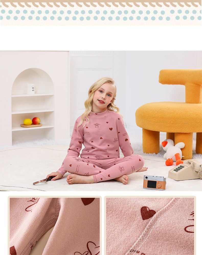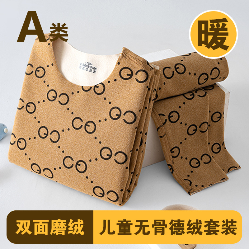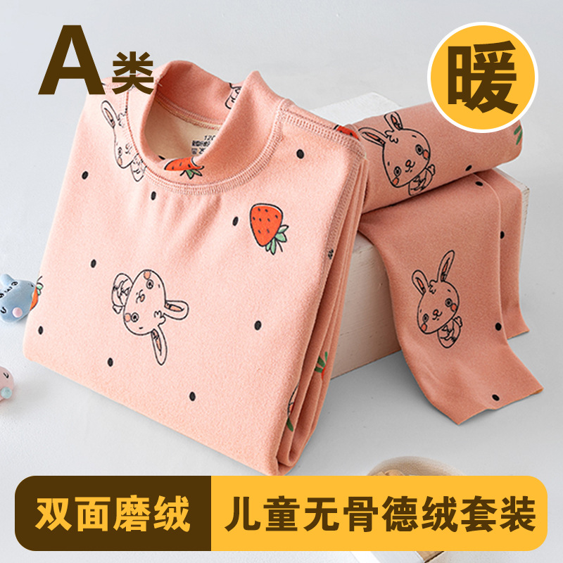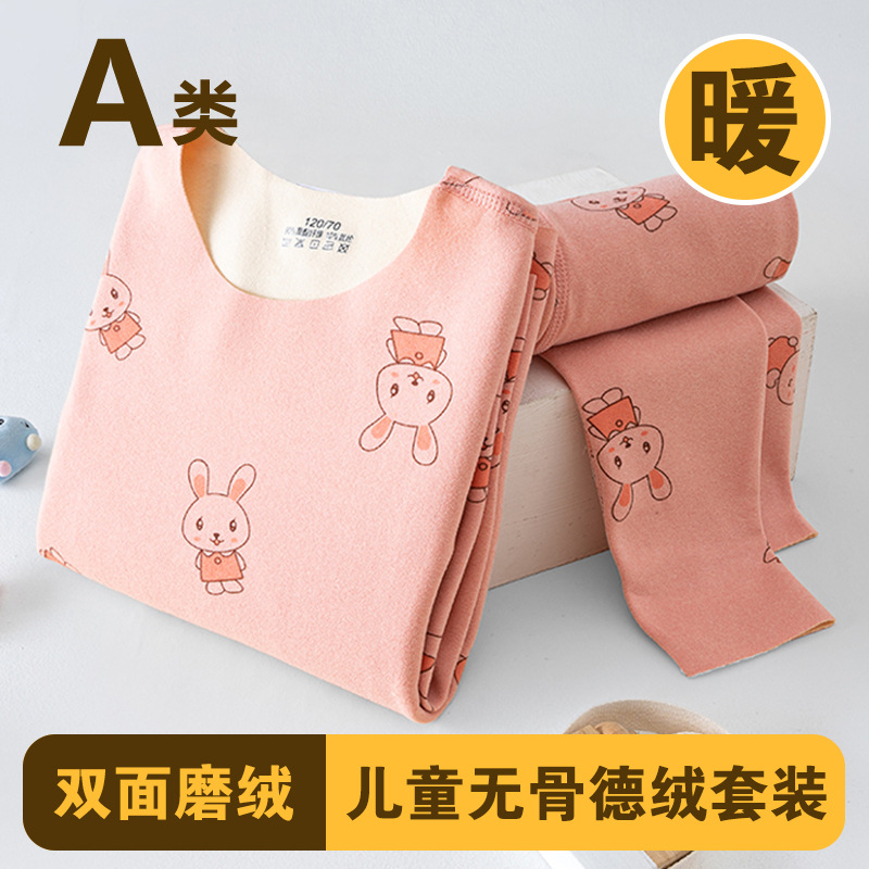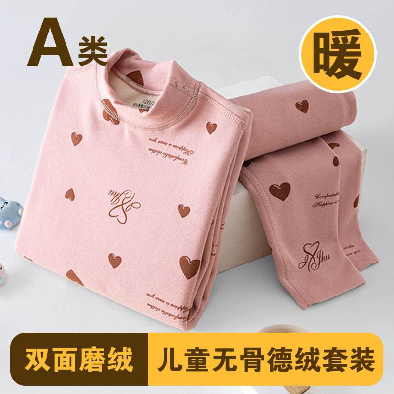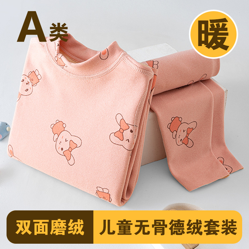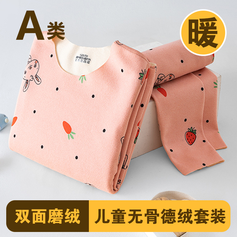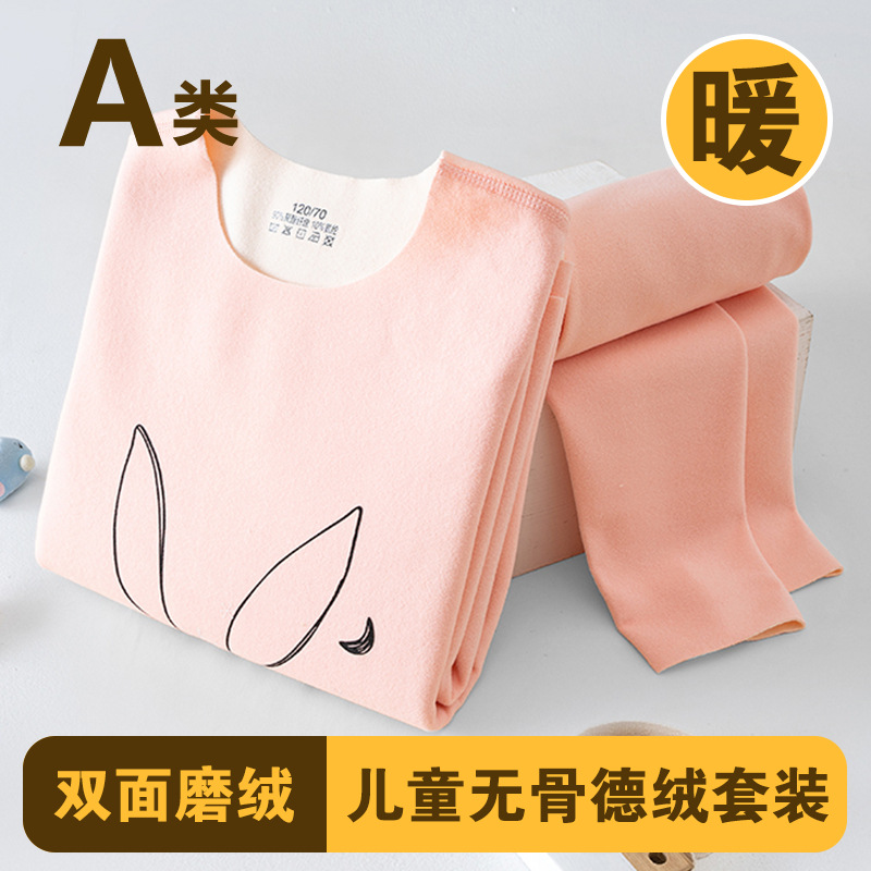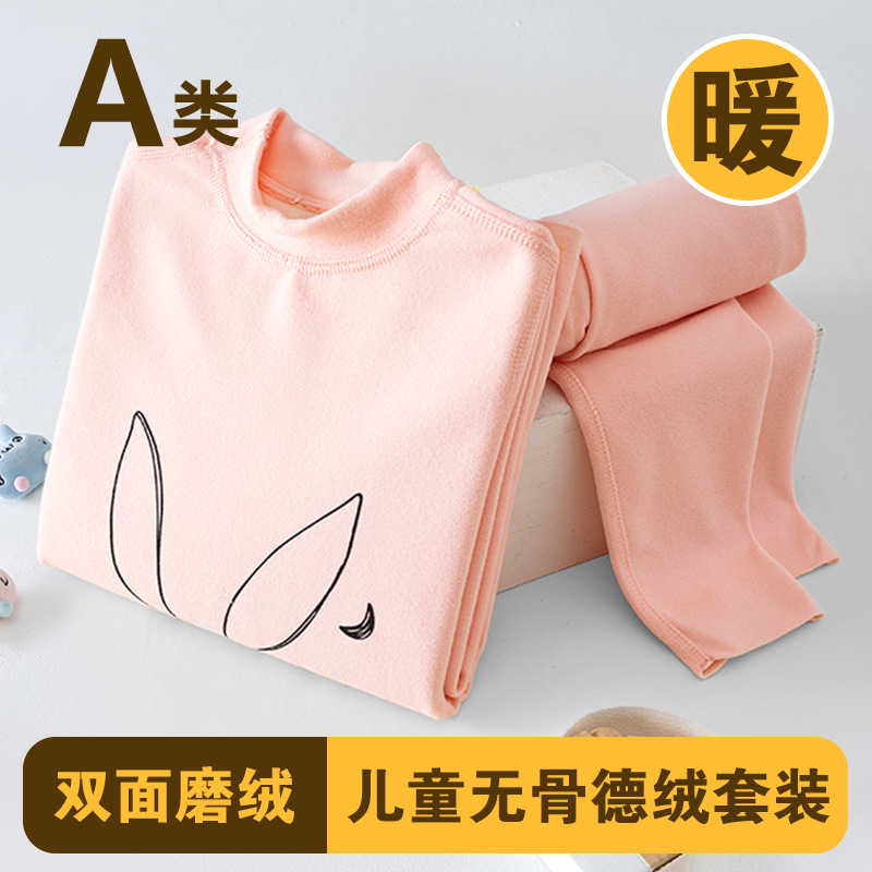 남학생과 여학생 AB 국수 벨벳 따뜻한 세트 뼈없는 기모 잠자는 속옷 어린이 가을 옷과 바지 큰 어린이와 소녀 클래스 A스토어 가기
