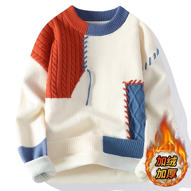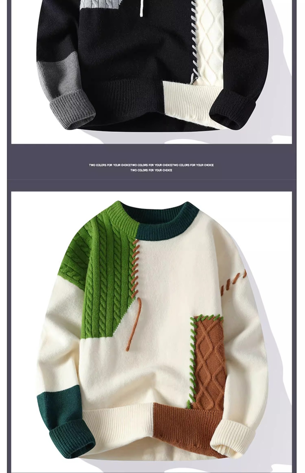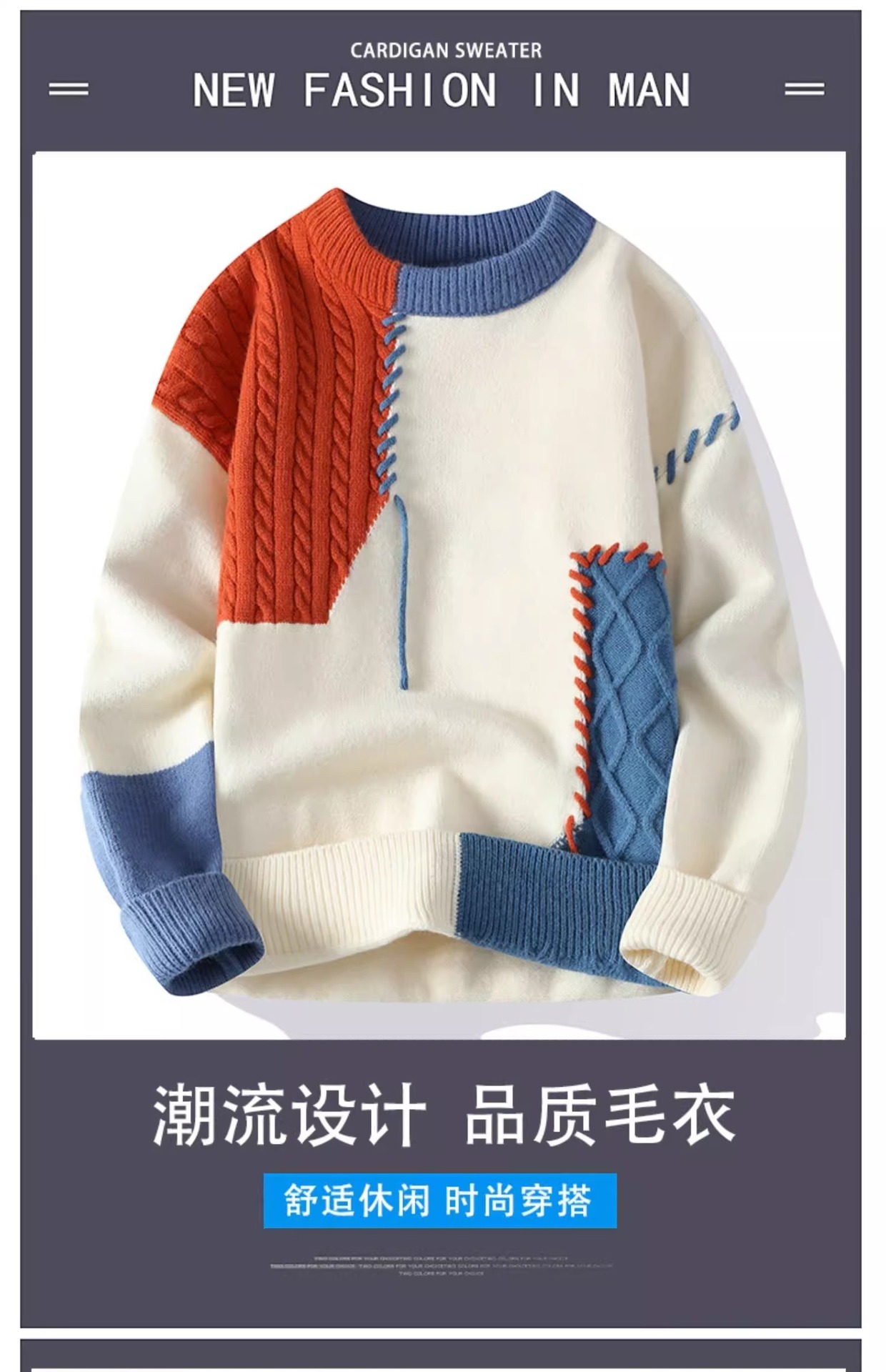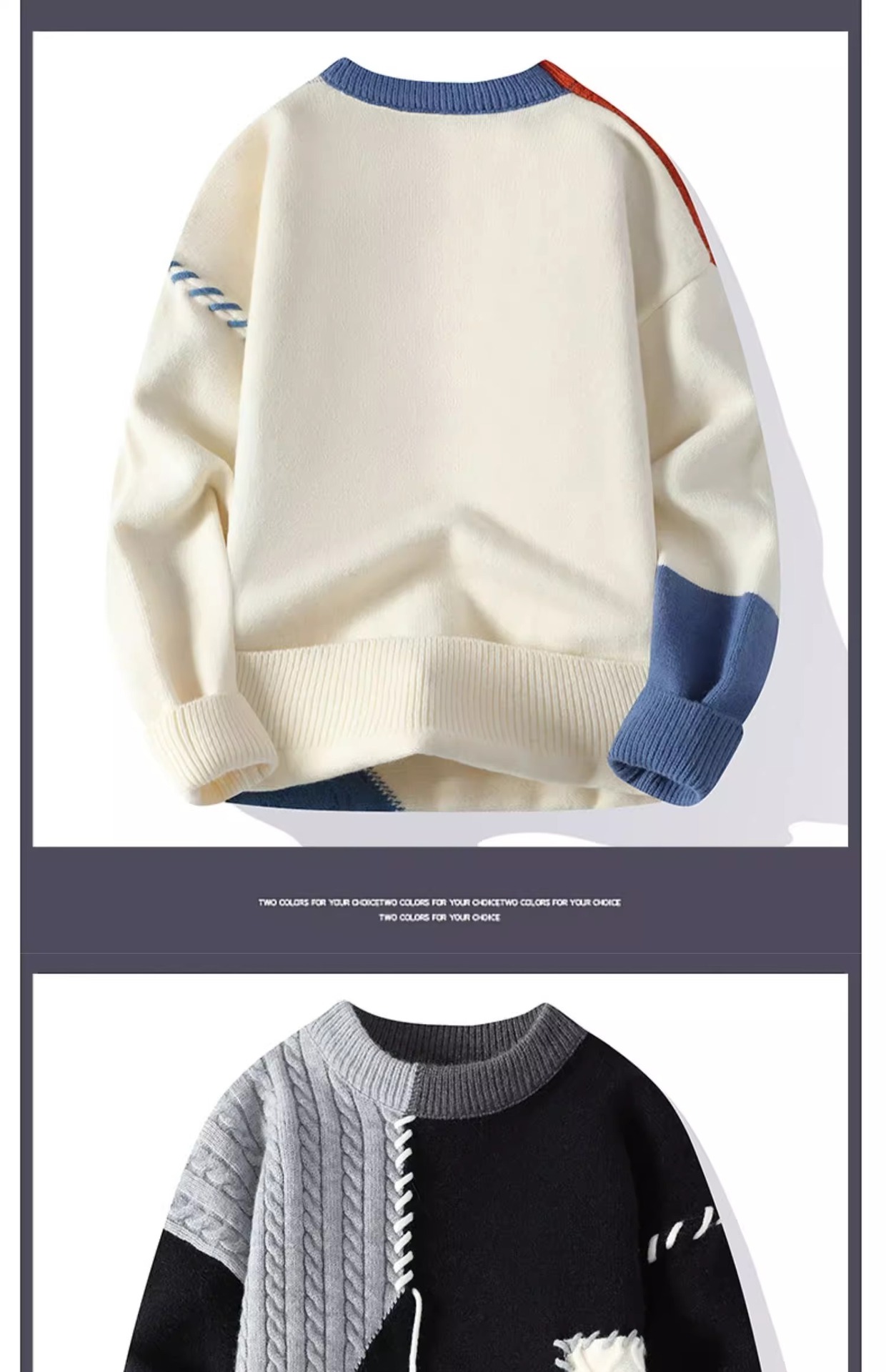 NASA 스티칭 콘트라스트 컬러 스웨터 남자 겨울 미국 캐주얼 성격 디자인 니트 스웨터 남자 와이드 스웨터스토어 가기