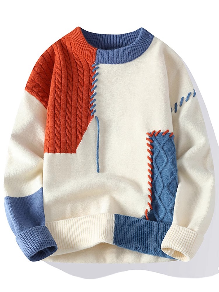 NASA 스티칭 콘트라스트 컬러 스웨터 남자 겨울 미국 캐주얼 성격 디자인 니트 스웨터 남자 와이드 스웨터