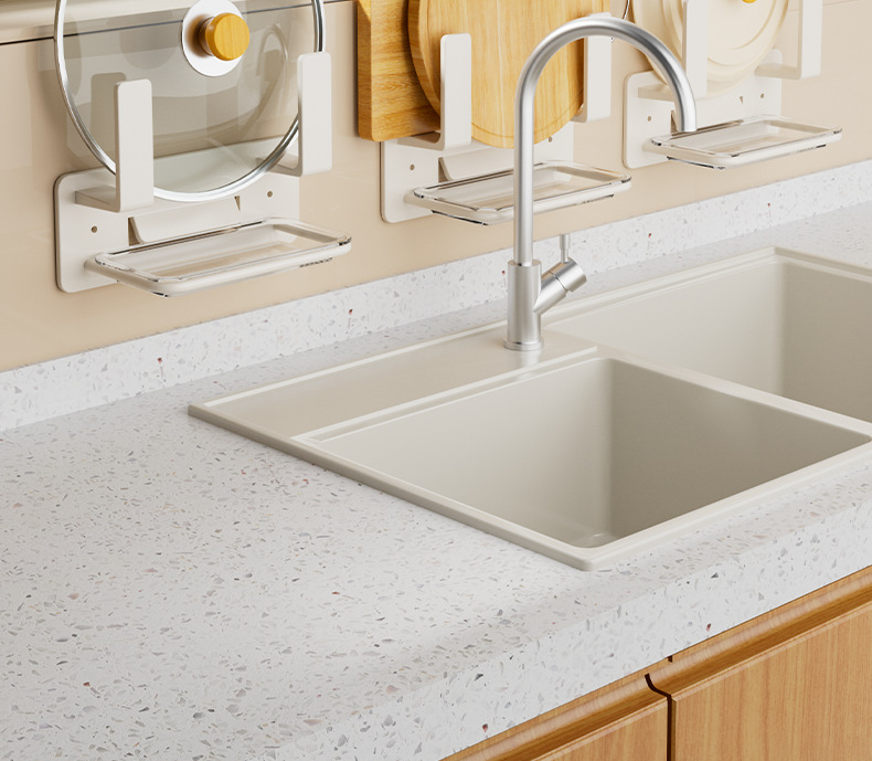 • 배수 트레이가 있는 흰색 U 냄비 뚜껑 홀더(구멍을 뚫을 필요 없음)