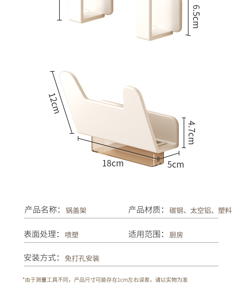 • 흰색 L 냄비 뚜껑 홀더(구멍을 뚫을 필요 없음)