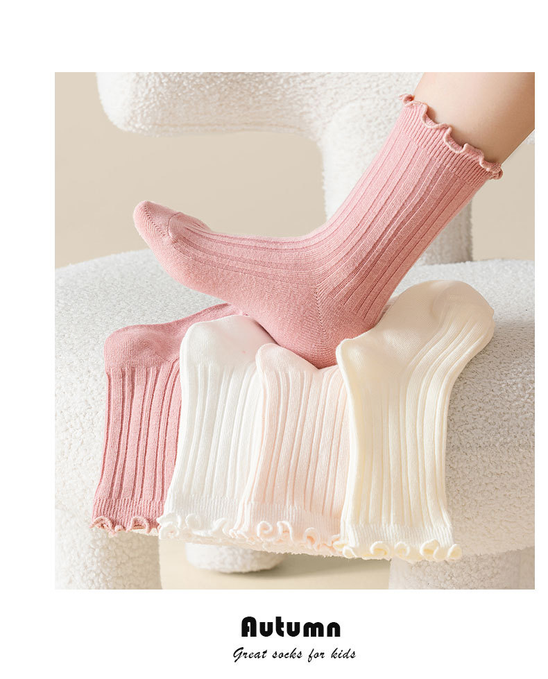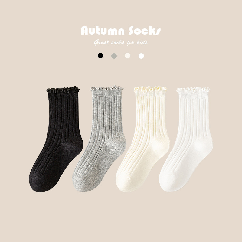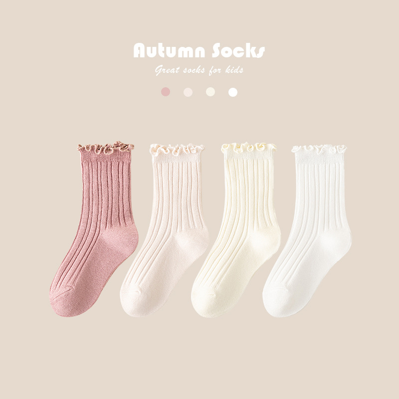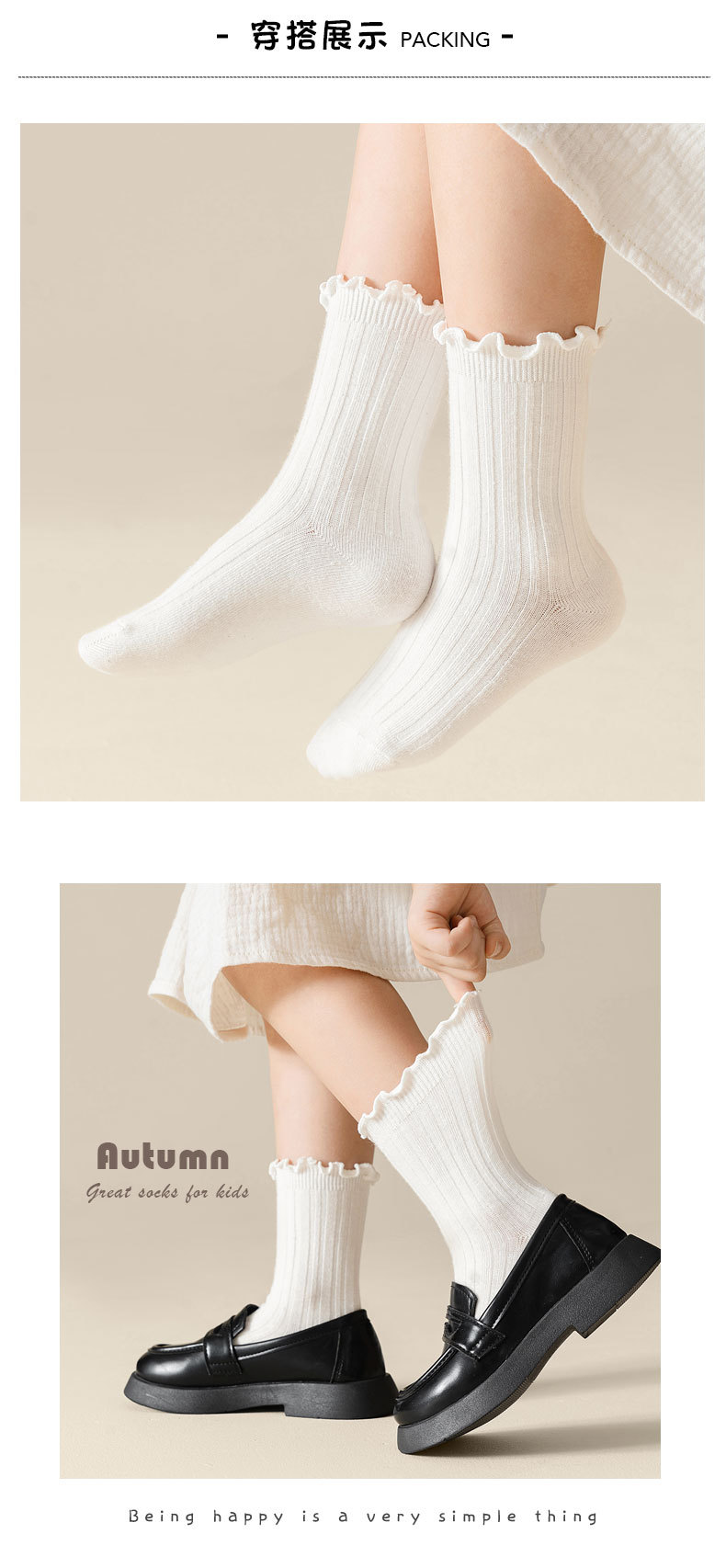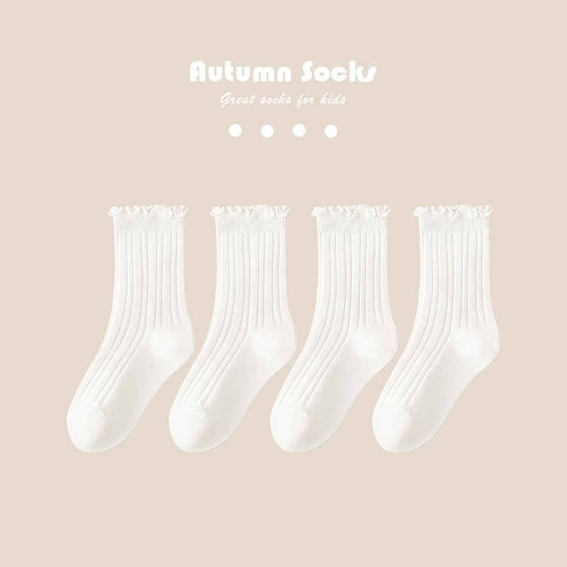여자 뼈없는 더블 바늘 양말 가을 면화 양말 중간 튜브 양말 어린이 한국 스타일 레이스 공주 양말 가을 소녀 스택 양말스토어 가기