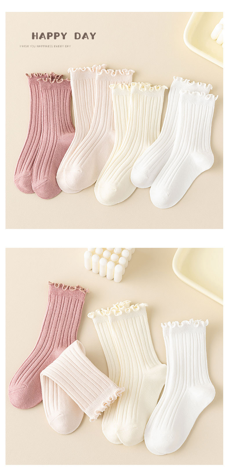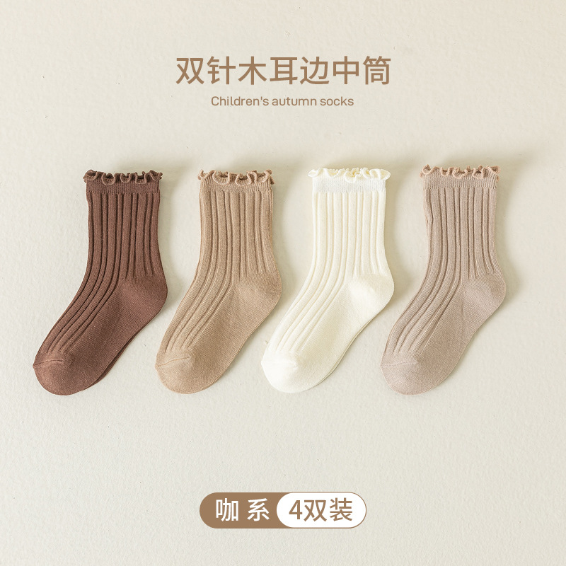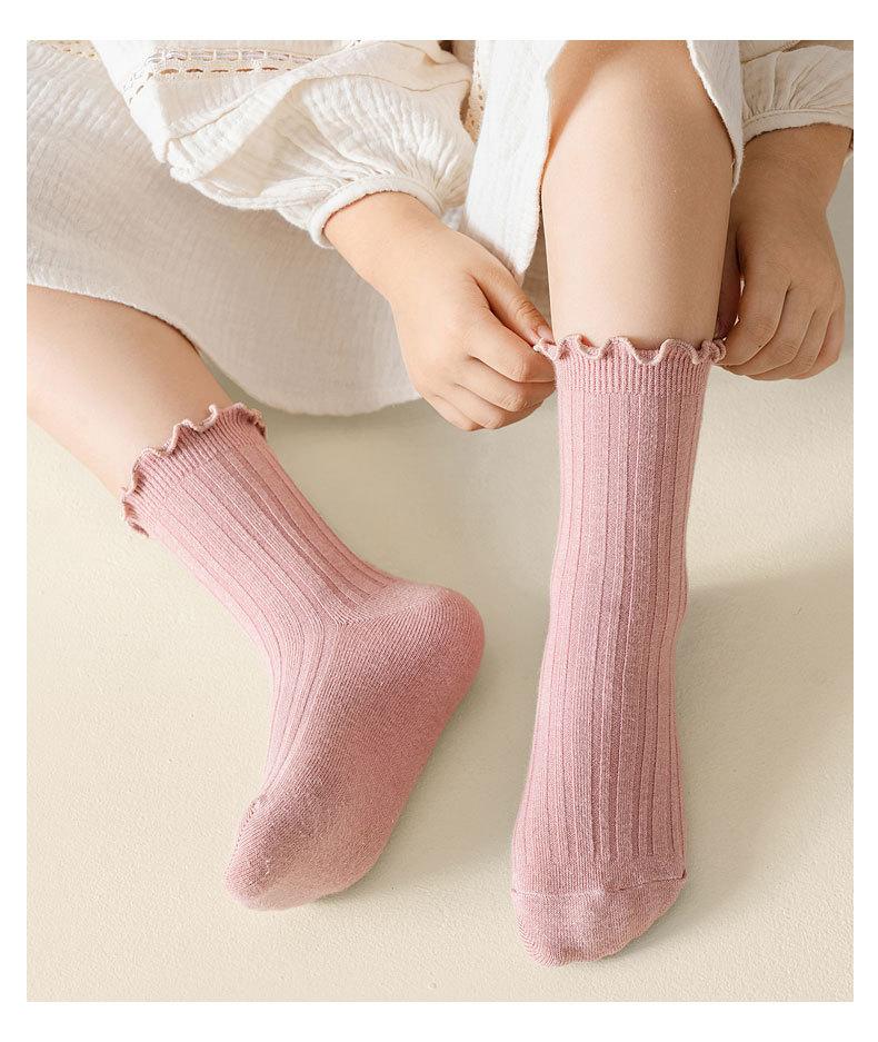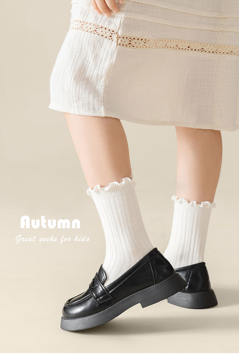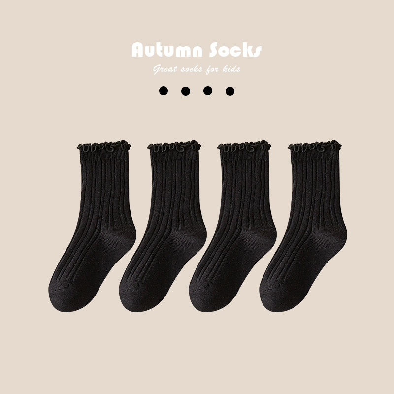 여자 뼈없는 더블 바늘 양말 가을 면화 양말 중간 튜브 양말 어린이 한국 스타일 레이스 공주 양말 가을 소녀 스택 양말스토어 가기