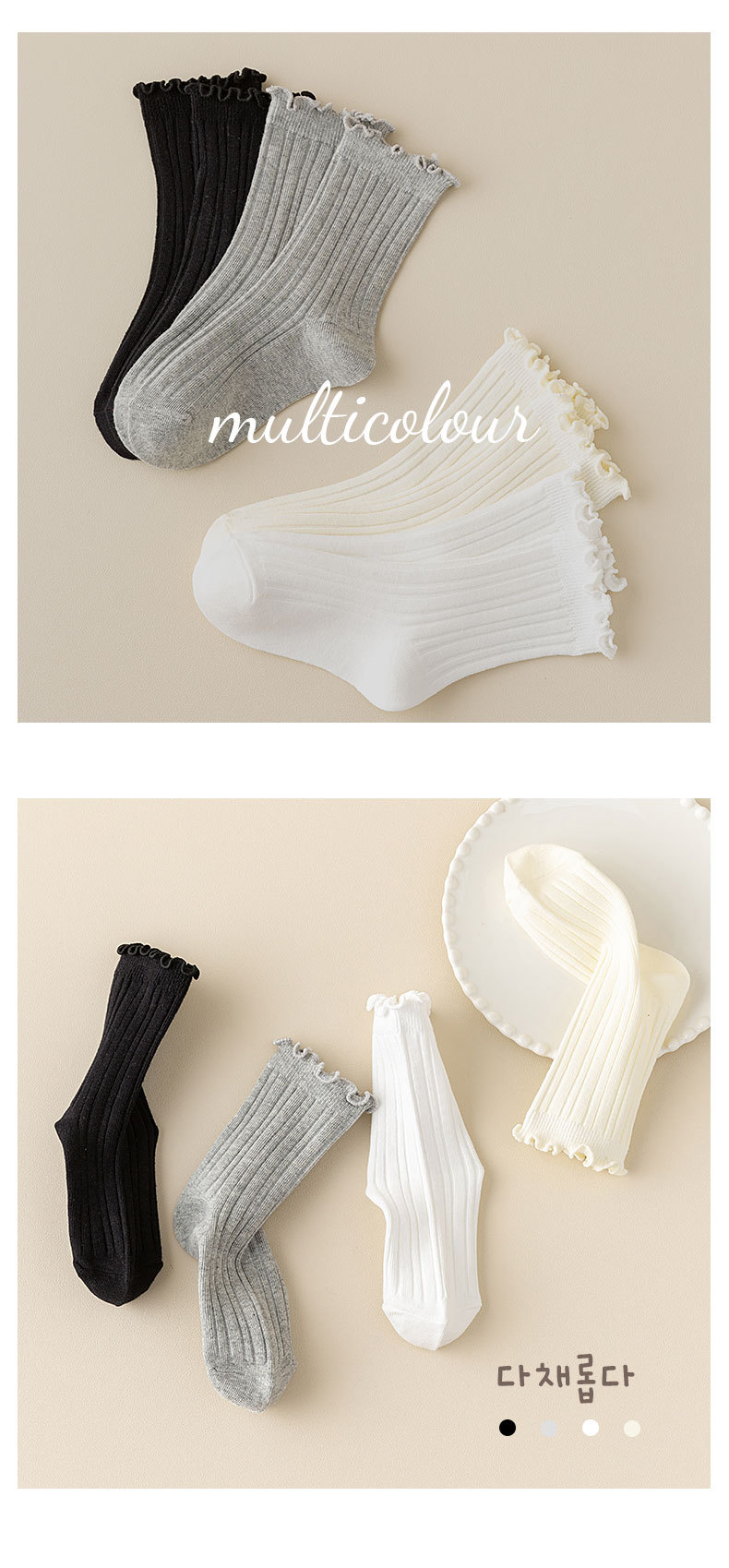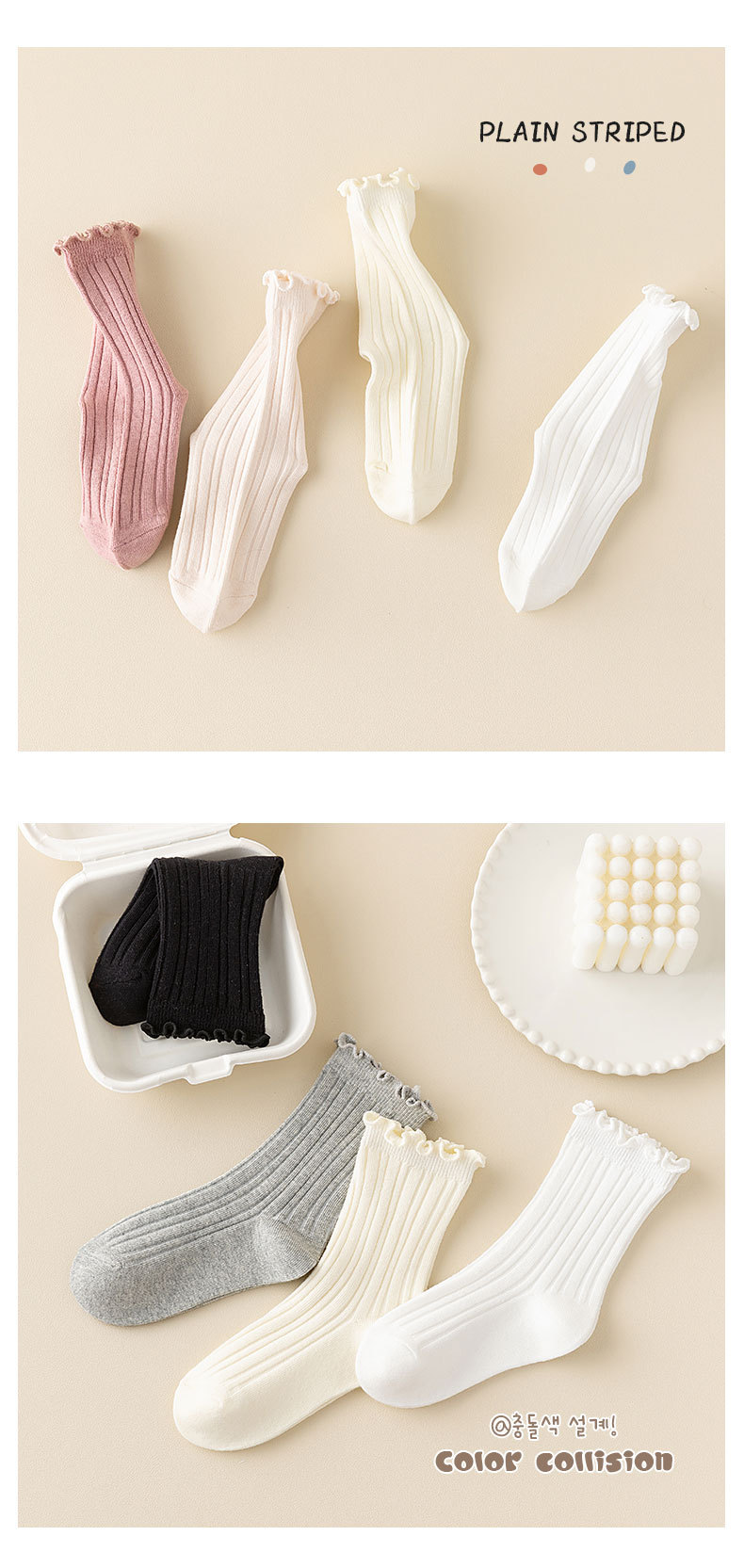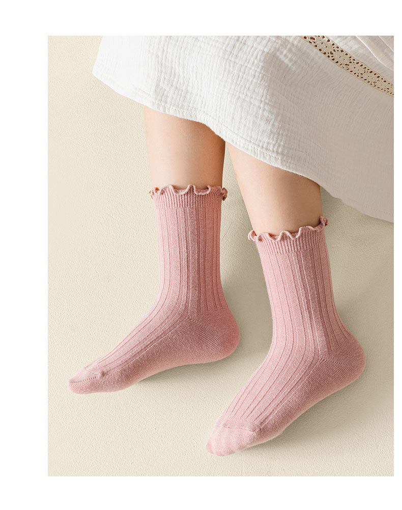 여자 뼈없는 더블 바늘 양말 가을 면화 양말 중간 튜브 양말 어린이 한국 스타일 레이스 공주 양말 가을 소녀 스택 양말