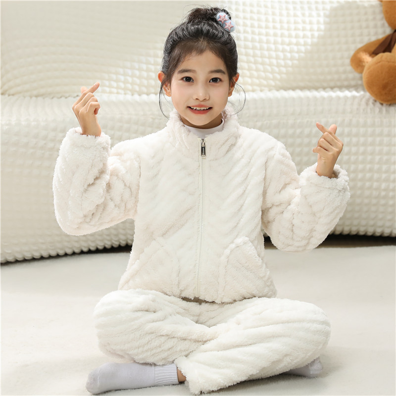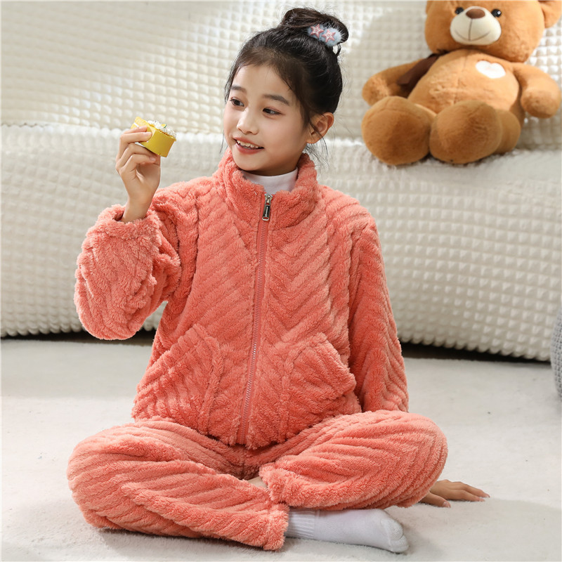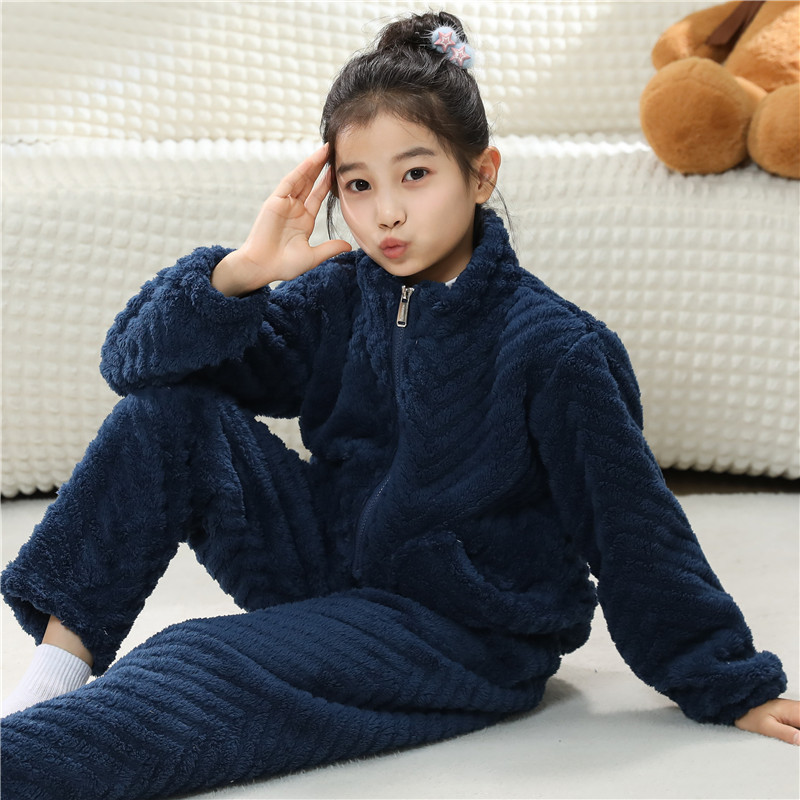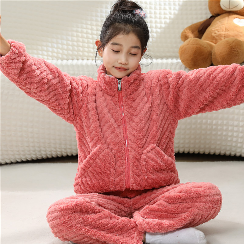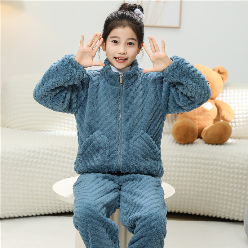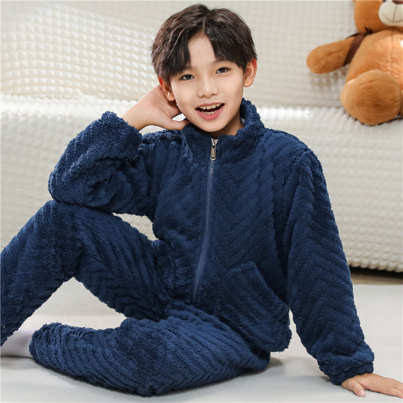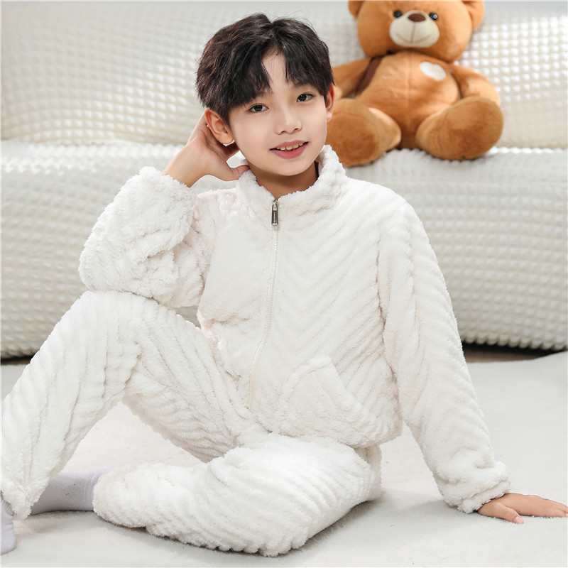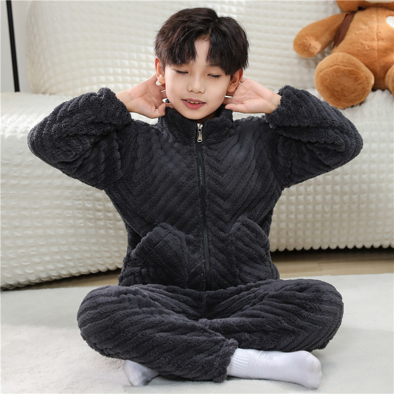 소년의 가을과 겨울 잠옷 아이들의 따뜻한 산호 양털 생활 옷 플란넬 중형 및 대형 어린이 아기 소년 두꺼운 세트