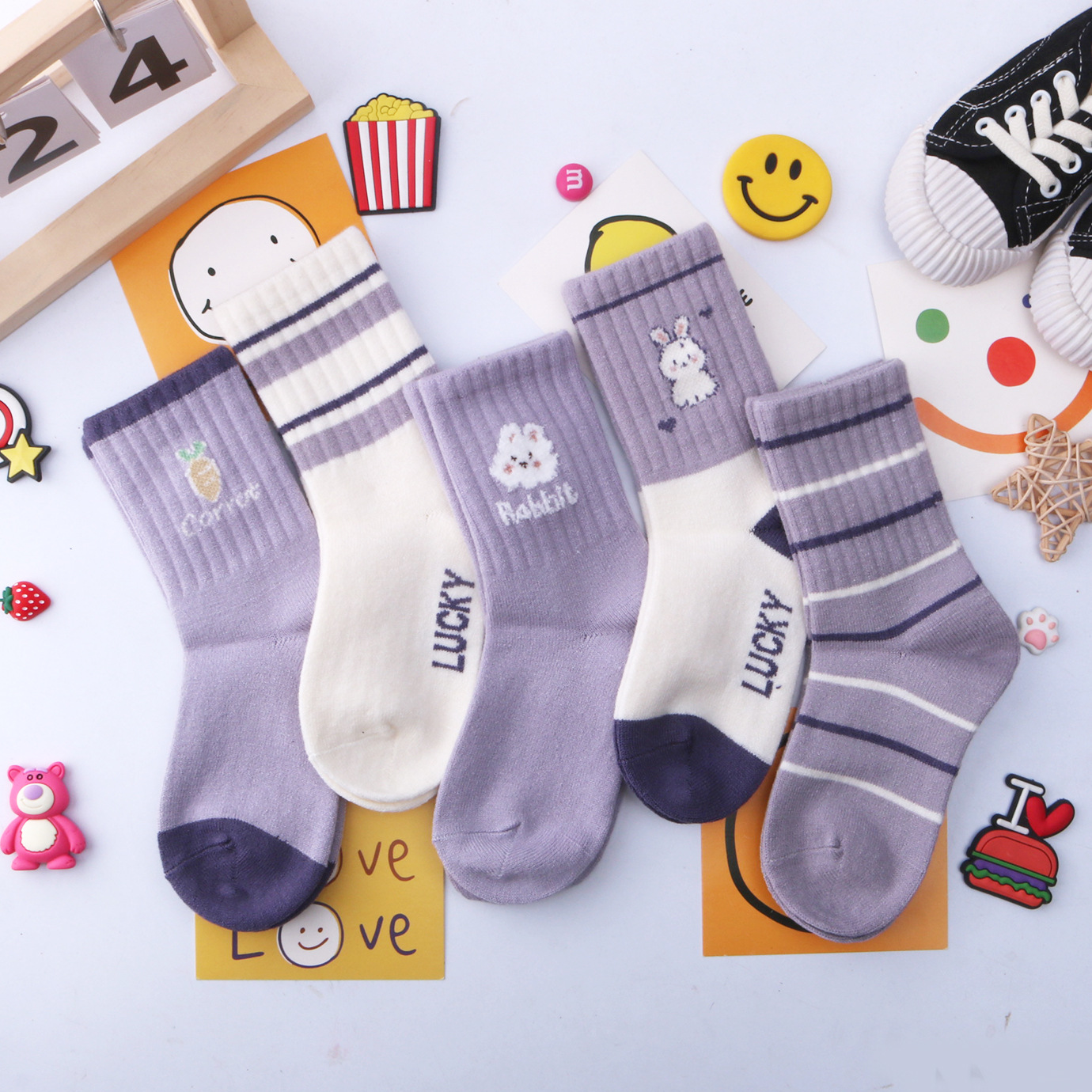어린이 양말 겨울 기모 두꺼운 양면 양털 스타킹 한국식 중 · 대형 어린이 보라색 만화 소녀 따뜻한 양말