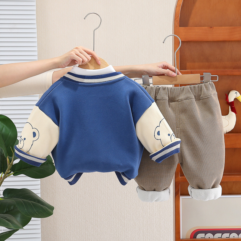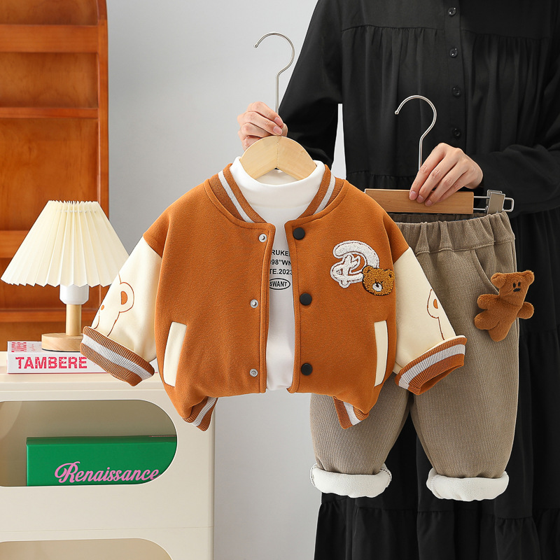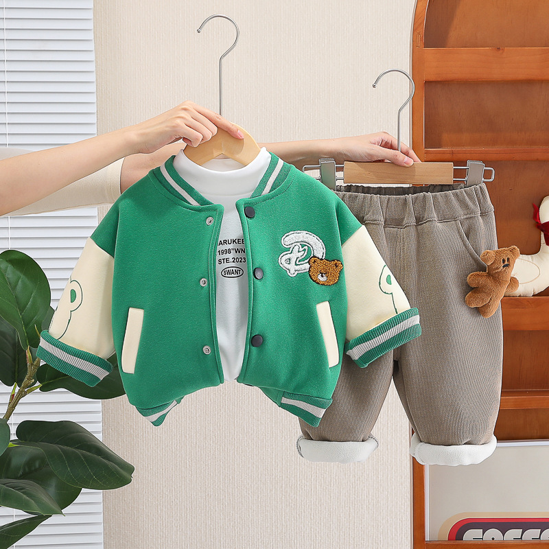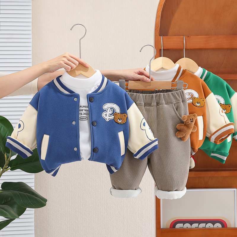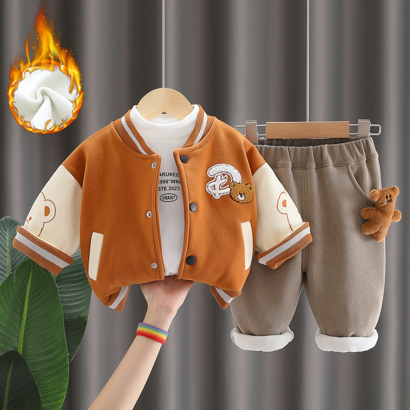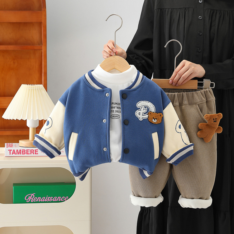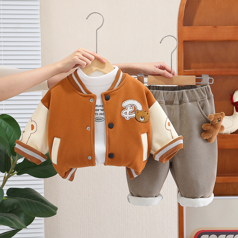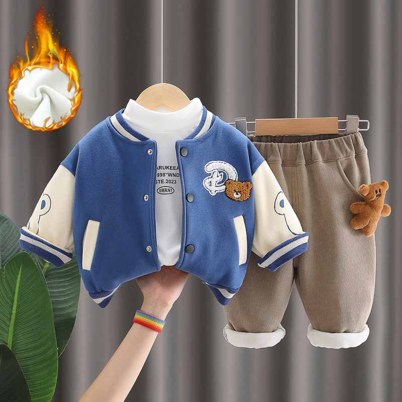 남아 가을 겨울 캐주얼 정장, 겨울 스타일 벨벳 3종 세트, 아동 및 유아용 겨울 야구 유니폼, 스포츠웨어스토어 가기