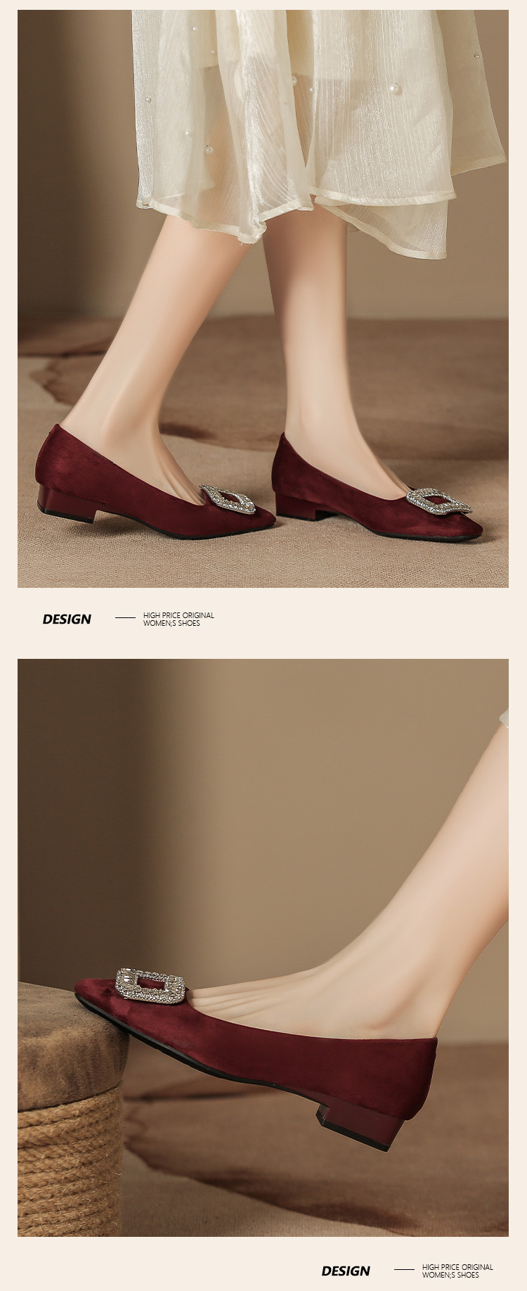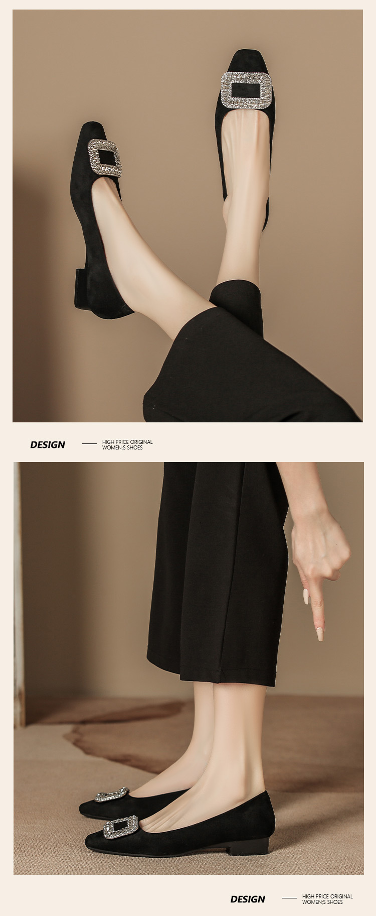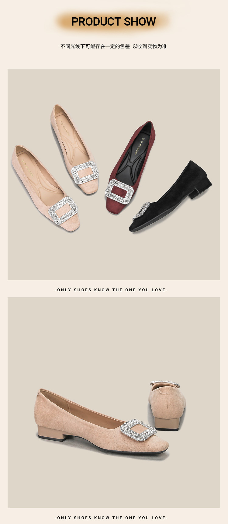 가을 겨울 여성 신발 신상 웨딩 슈즈, 큐빅 장식 여성 스웨이드 두꺼운 굽 얕은 입구 부드러운 낮은 굽 일상 착용 가능 슈즈, 스퀘어 토 낮은 굽스토어 가기