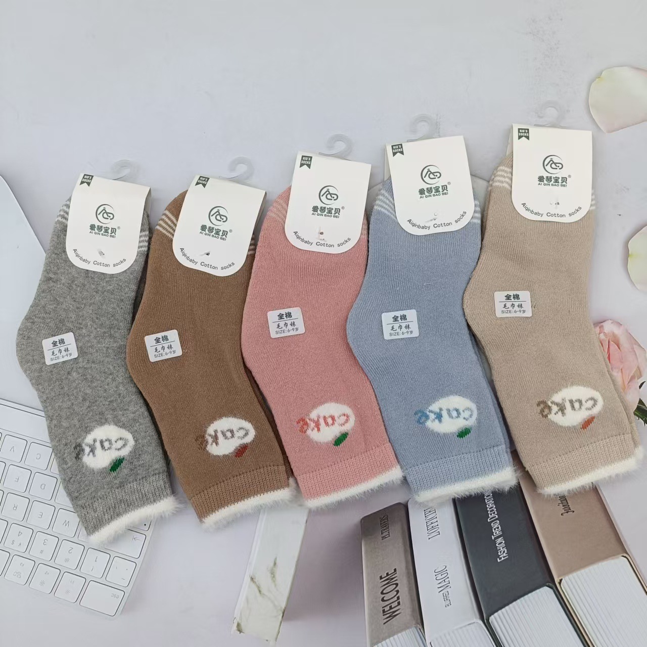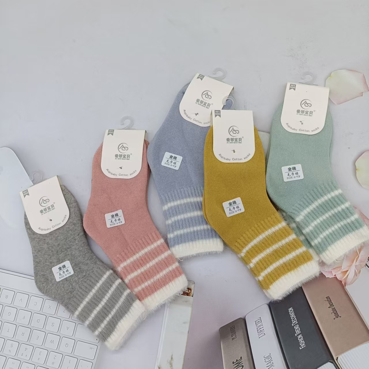 가을과 겨울 새로운 어린이 테리 양말 두꺼운 따뜻한 양말 아기 긴 양말 수건 양말 도매