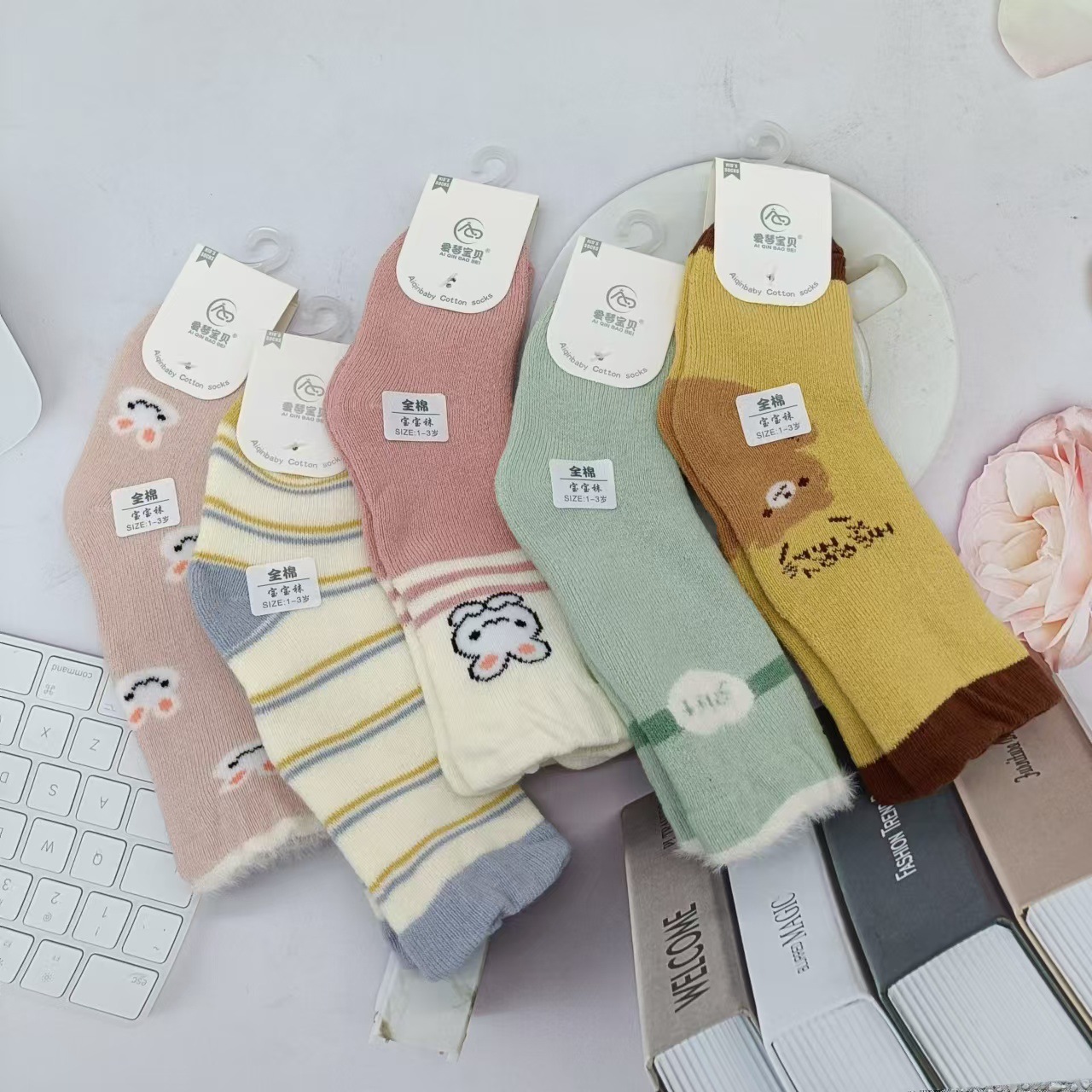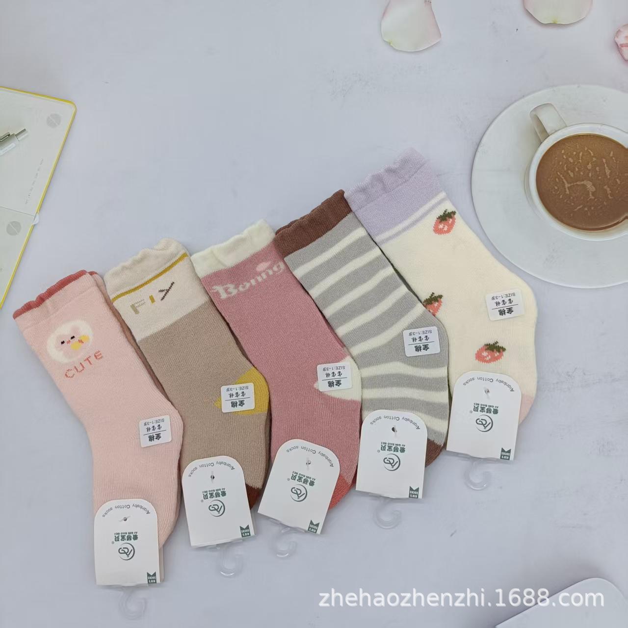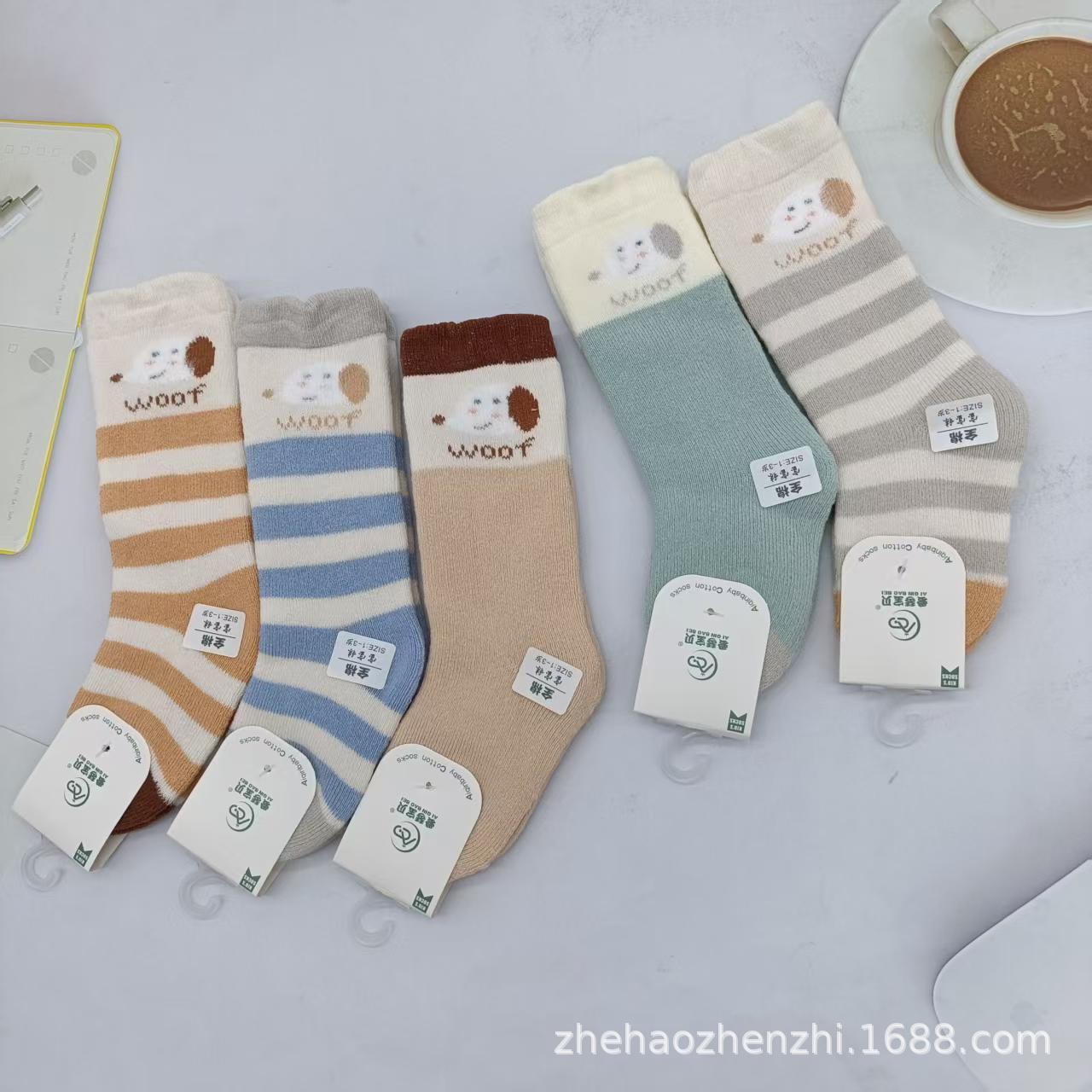가을과 겨울 새로운 어린이 테리 양말 두꺼운 따뜻한 양말 아기 긴 양말 수건 양말 도매스토어 가기