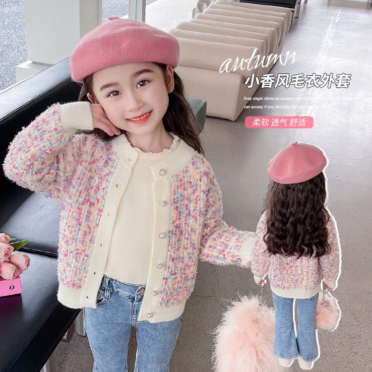 소녀 카디건 스웨터 코트 봄과 가을 2024 새로운 가을 최고 소녀의 가을 큰 소년의 인터넷 인기 코트