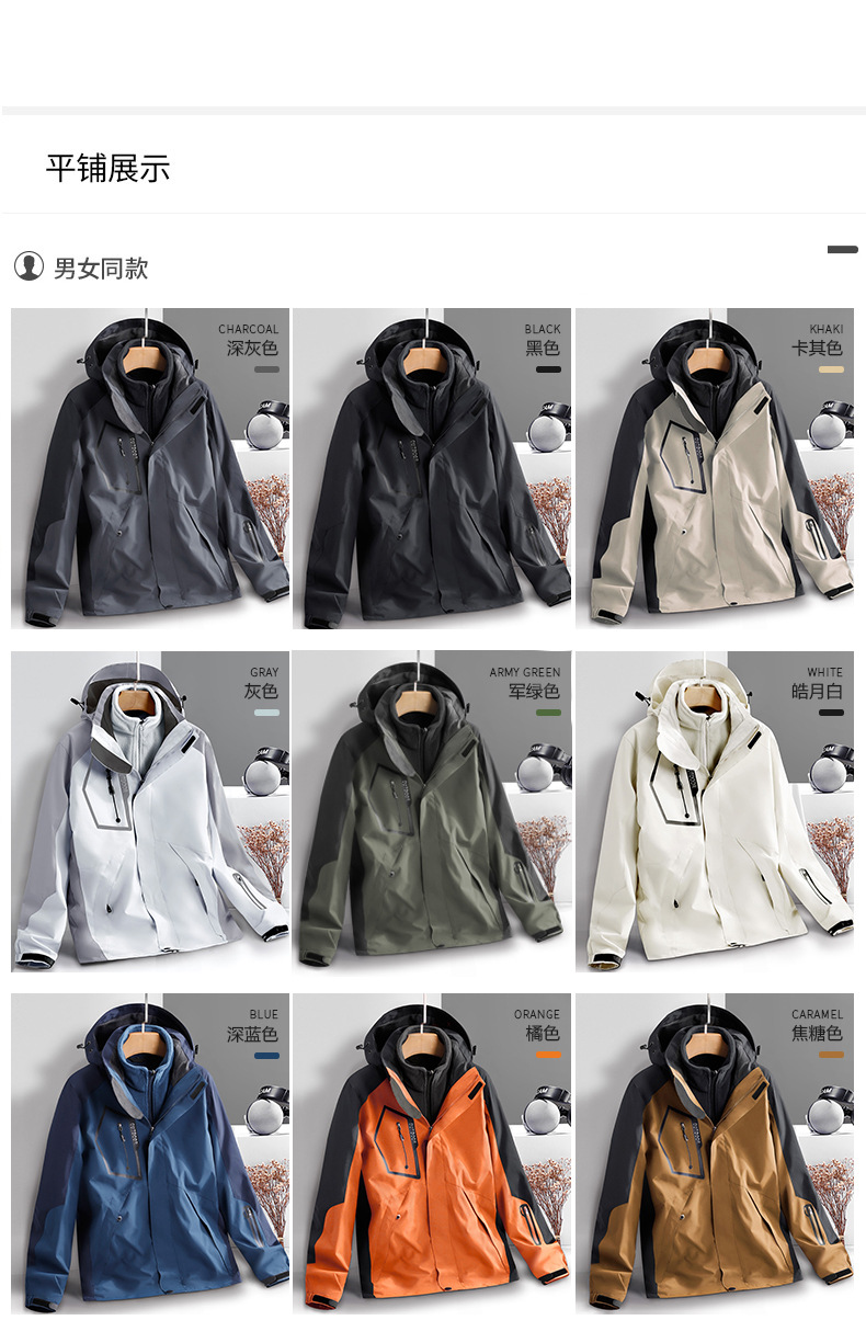 야외 충전 의류 남성 3 대 1 방풍 방수 재킷 야외 등산 세트 여성 맞춤형 도매 커플 재킷스토어 가기