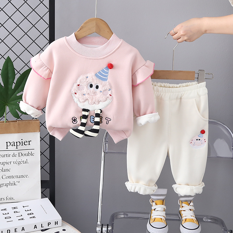 소녀의 가을과 겨울 기모 땀 투피스 서양식 아기 아기 어린이 겨울 원피스 캐시미어 세트 트렌디 아동복스토어 가기
