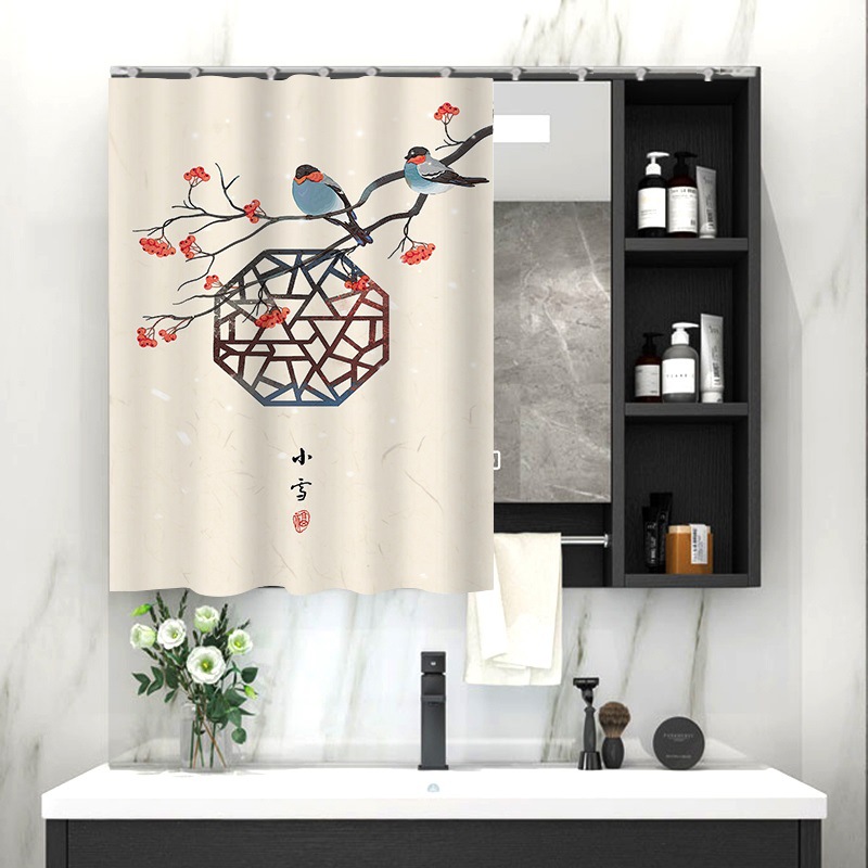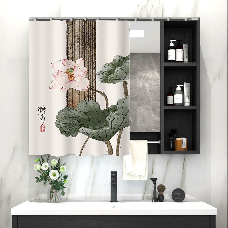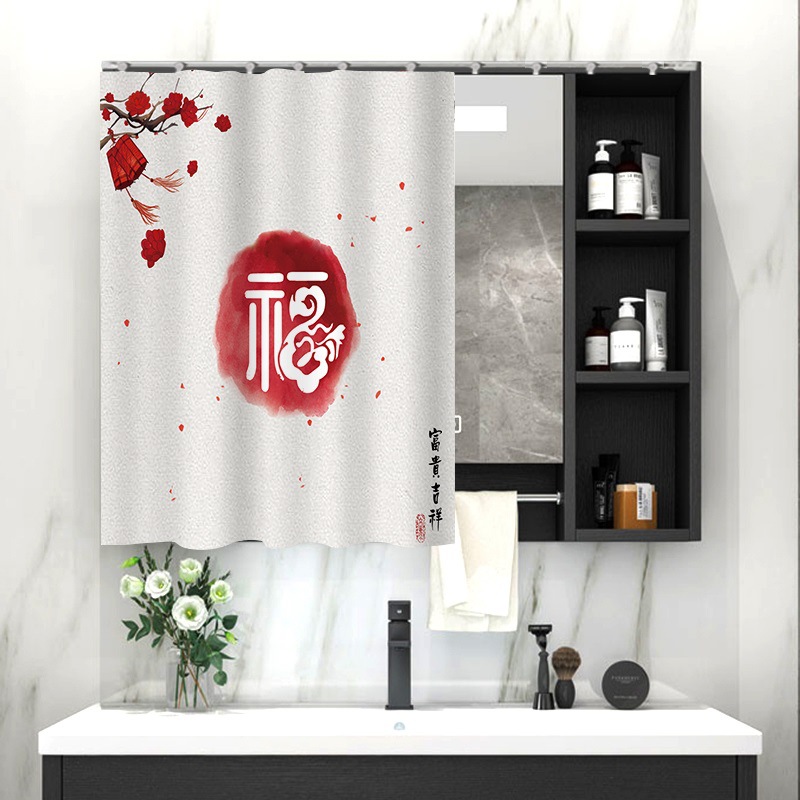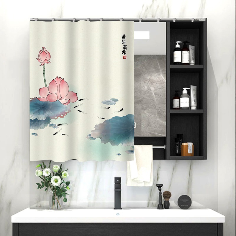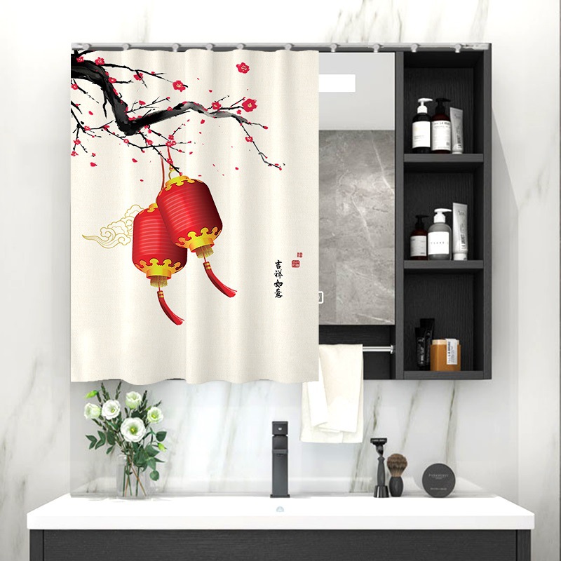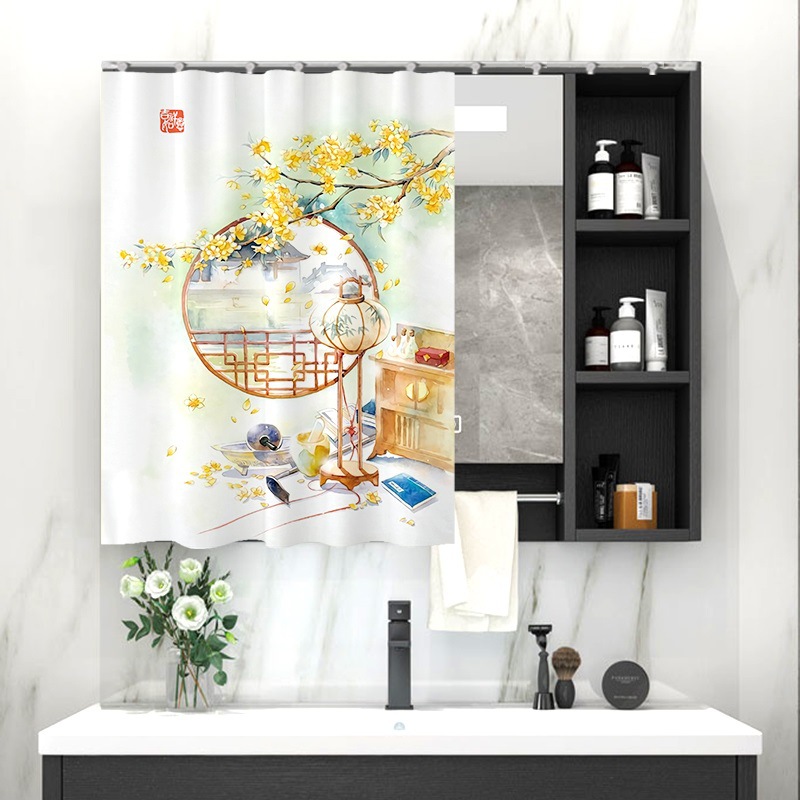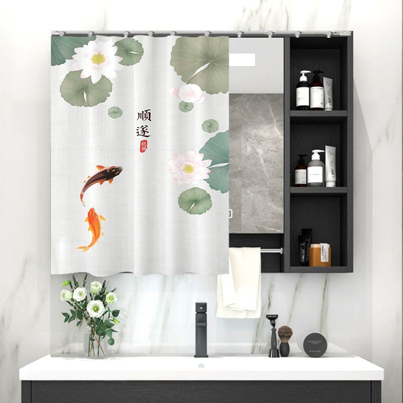 중국 스타일 욕실 캐비닛 드레싱 테이블 거울 커튼 이동식 벨크로 거울 먼지 커버 화장실 거울 커튼스토어 가기